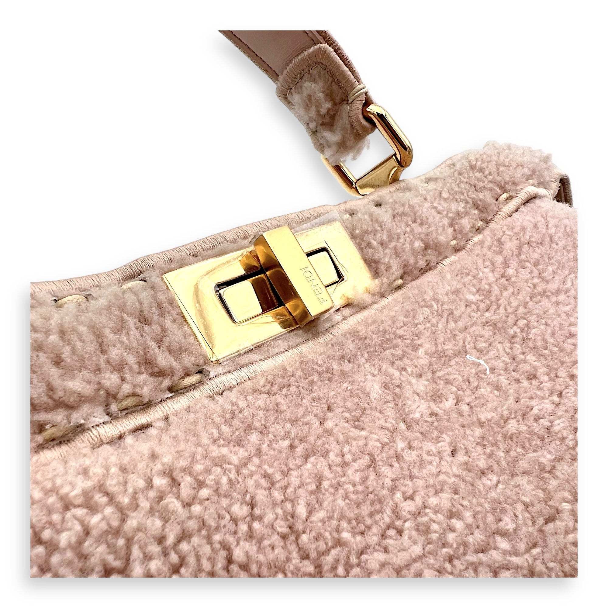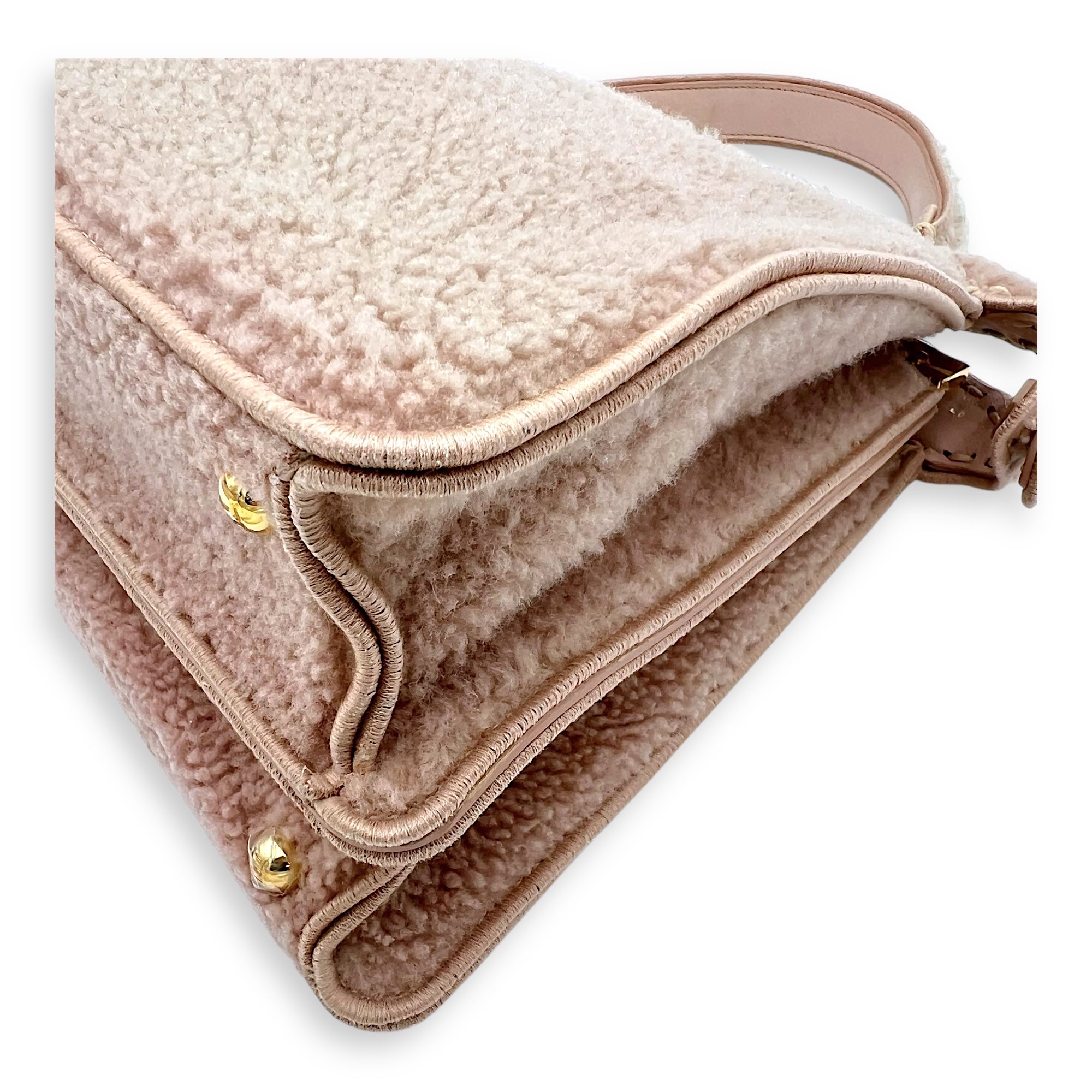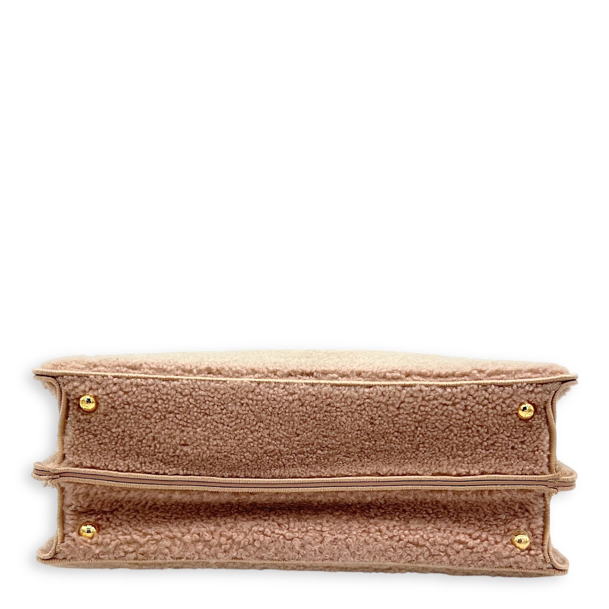 Bags Fendi Peekaboo Beige Top Handle Bag in Shearling, Gold hardware Very Good Condition Beige Top Handle Bag Women Lady Girl