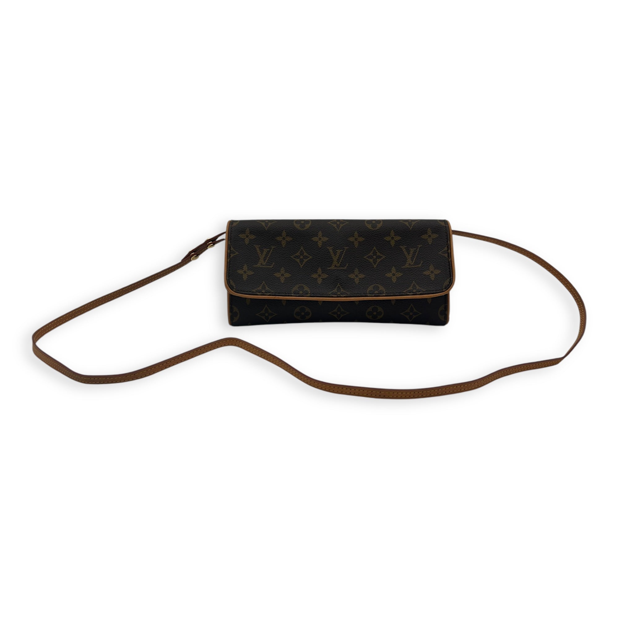 Bags Louis Vuitton Twin Pochette Brown Crossbody Bag in Monogram Coated Canvas, Gold hardware Good Condition Brown Crossbody Bag Women Lady Girl