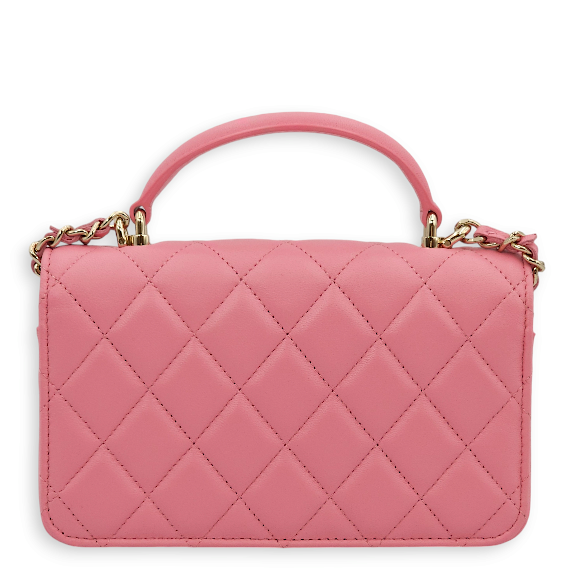 Chanel Quilted Clutch-On-Chain Pink Top Handle Bag in Lambskin, Gold hardware Bags Top Handle Bag Pink Brand New MEN UNISEX