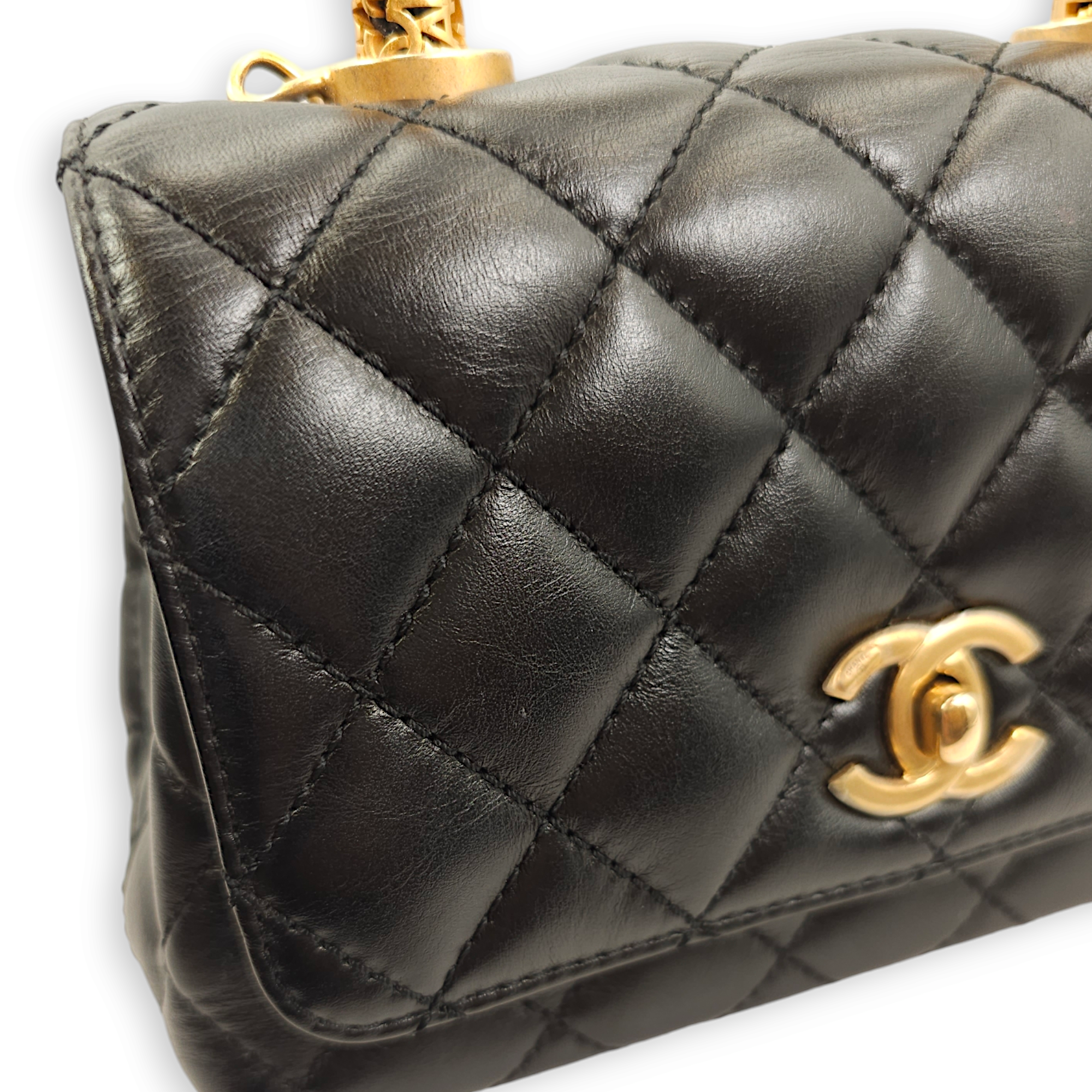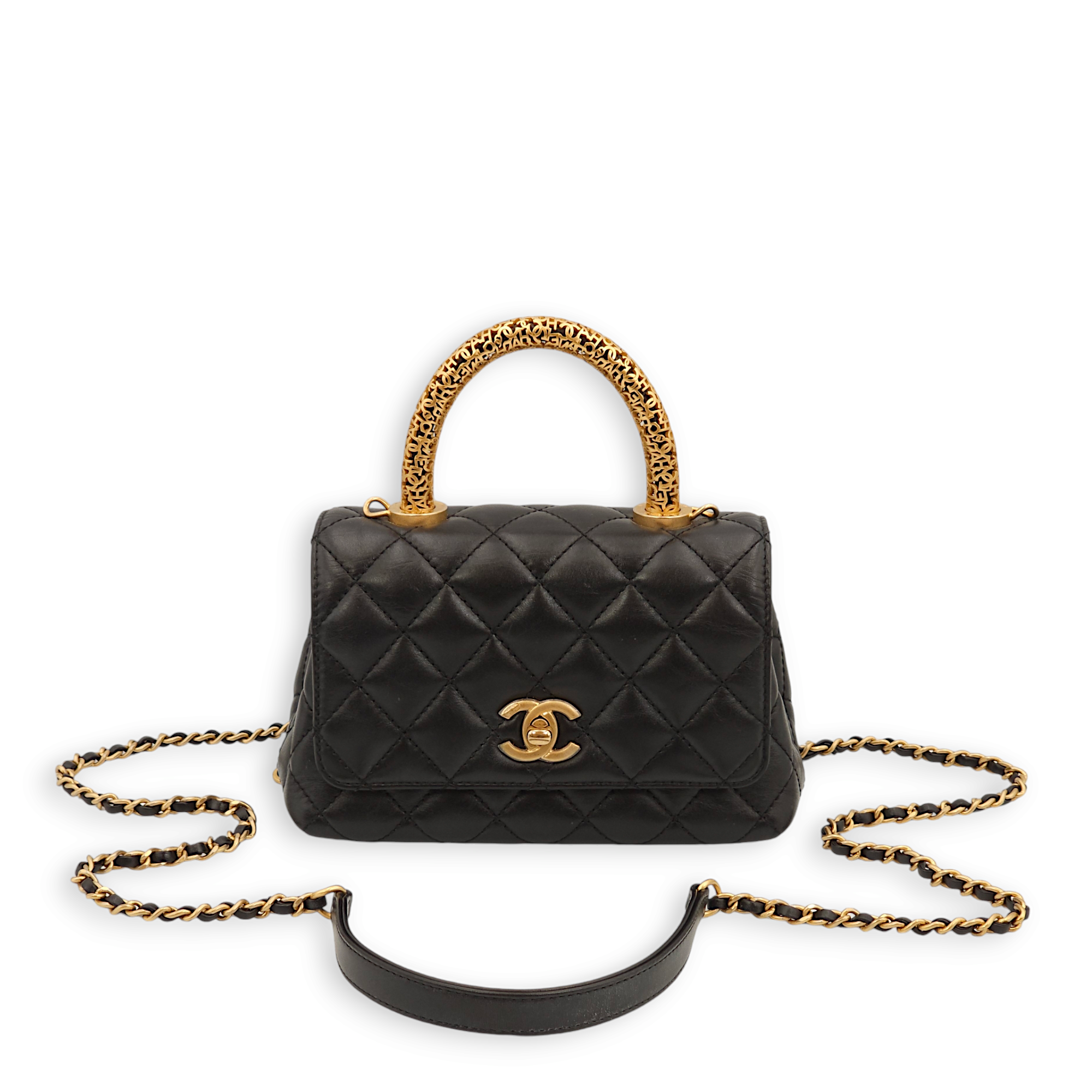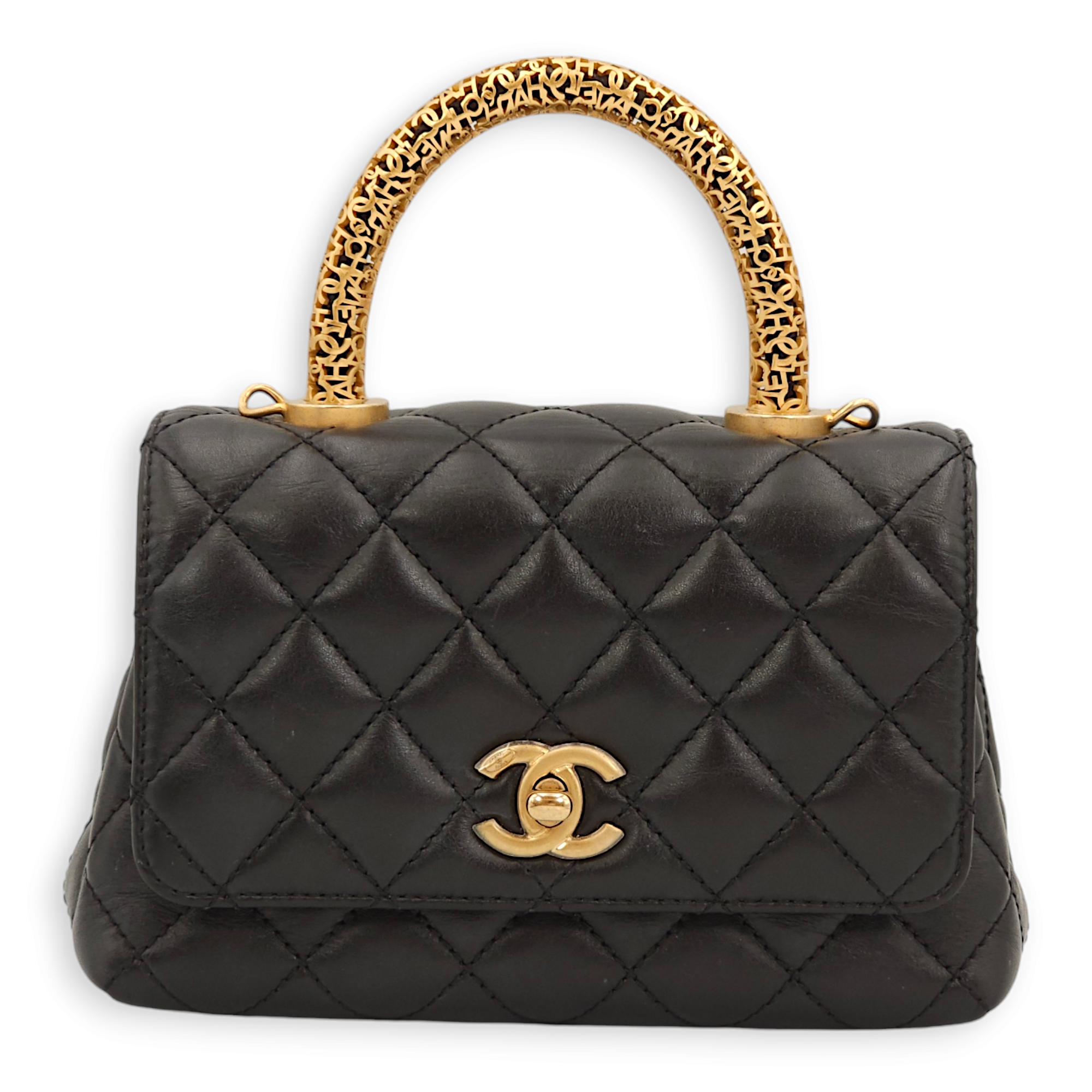 Chanel Quilted Coco Mini Black Top Handle Bag in Calfskin, Gold hardware Bags Top Handle Bag Black Good Condition MEN UNISEX