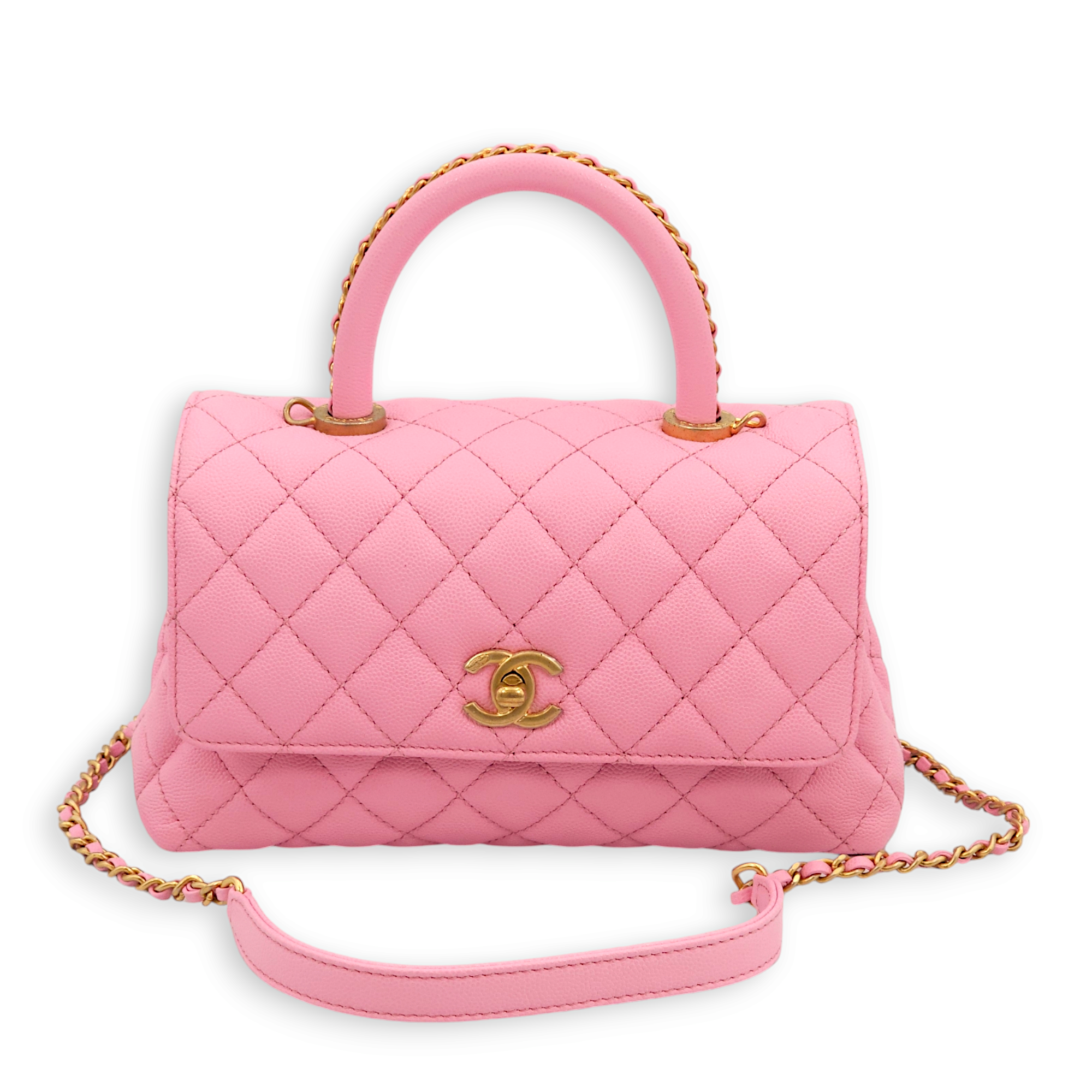 Chanel Quilted CoCo Mini Pink Top Handle Bag in Caviar Leather, Gold hardware Bags Top Handle Bag Pink Good Condition MEN UNISEX