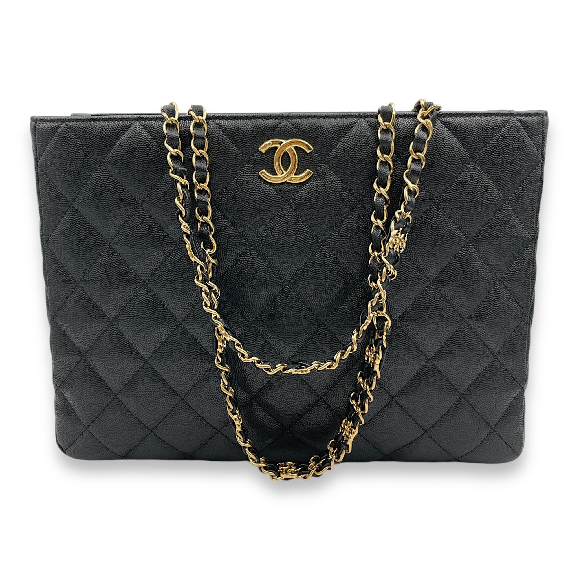 Quilted Seasonal Shopping Tote 33x24x14cm Black Shoulder Bag in Caviar Leather, Gold hardware
