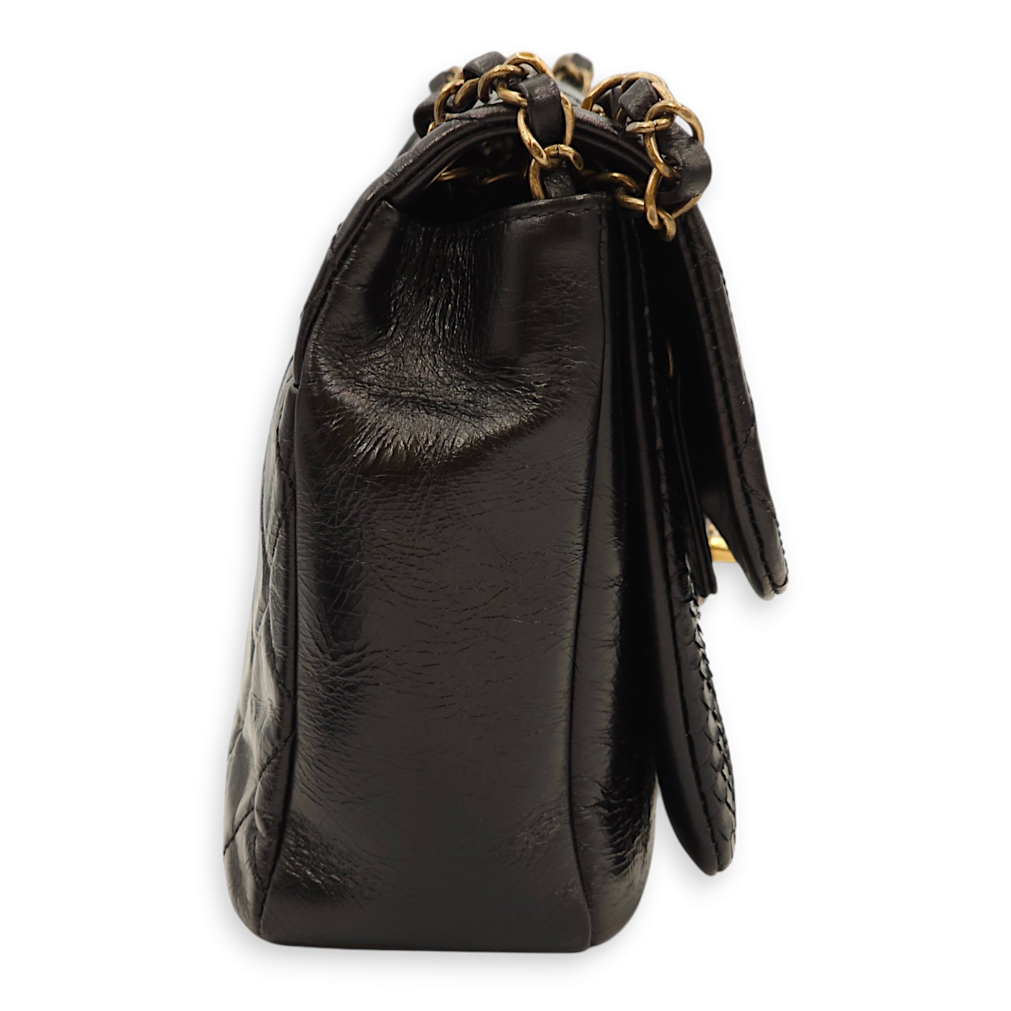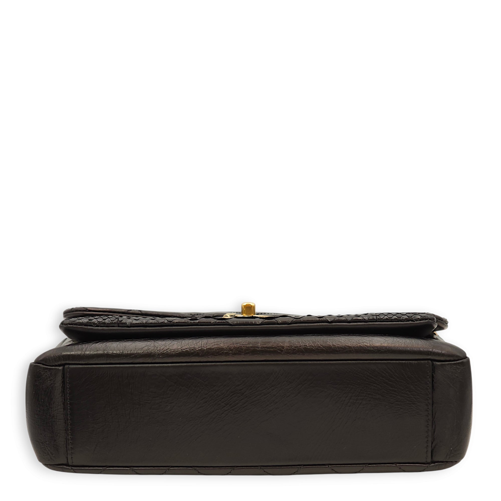 Quilted Urban Flap Black Shoulder Bag in Calfskin, Python Leather, Gold hardware