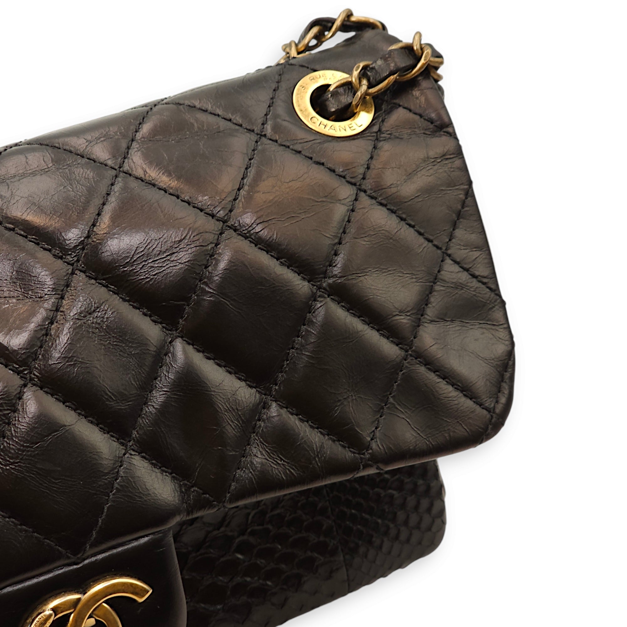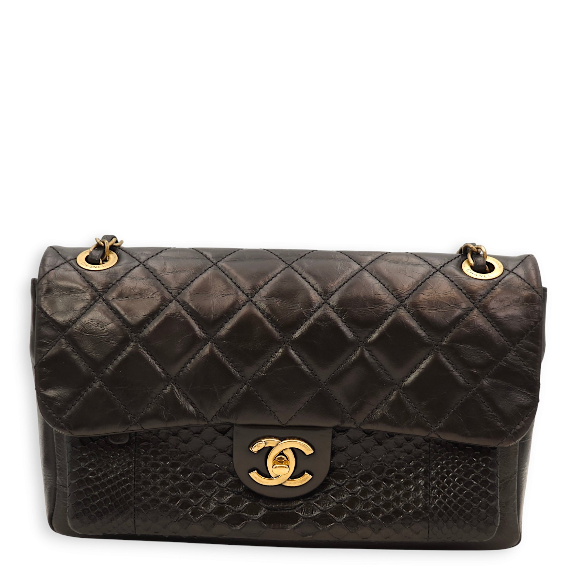 Chanel Quilted Urban Flap Black Shoulder Bag in Calfskin, Python Leather, Gold hardware Bags Shoulder Bag Black Very Good Condition