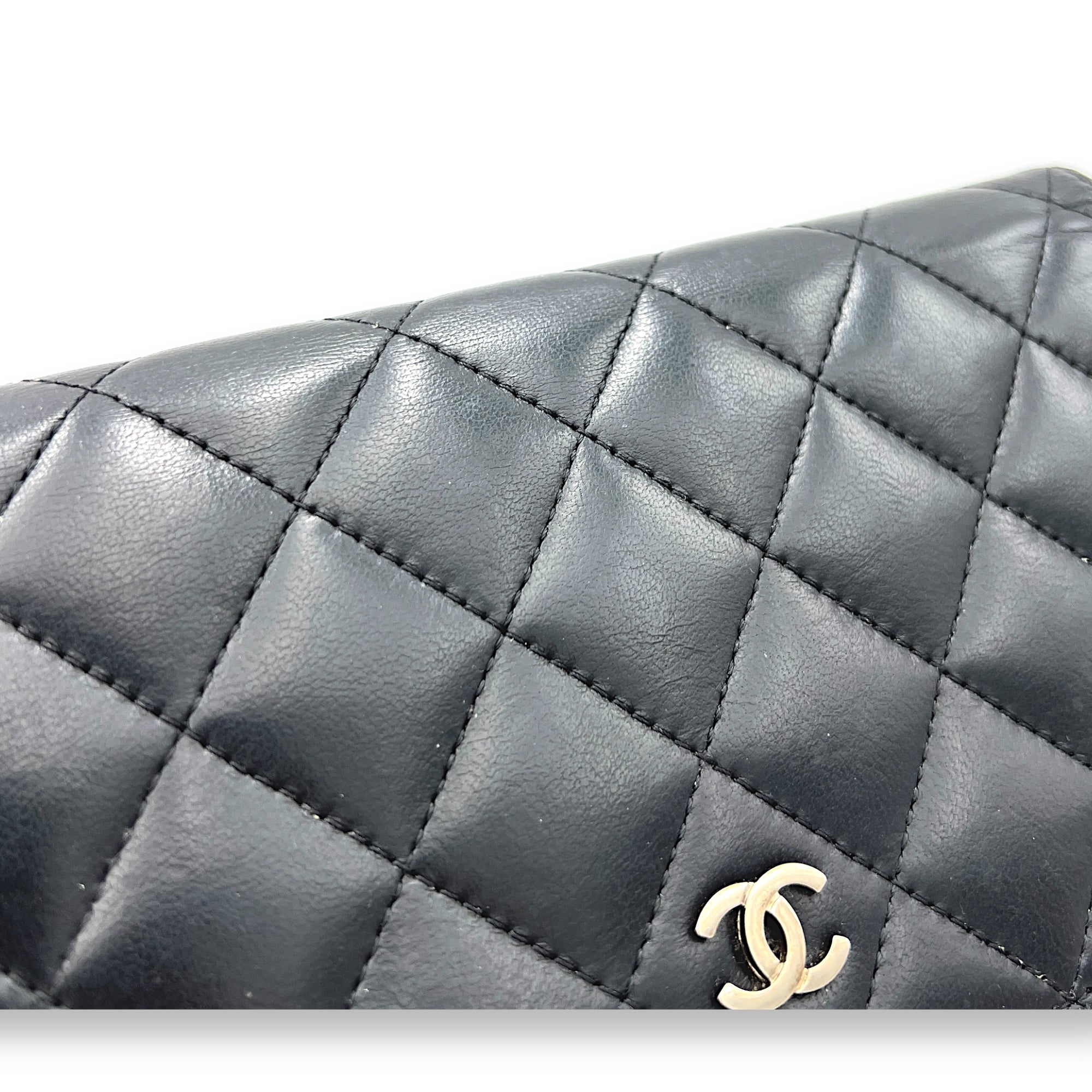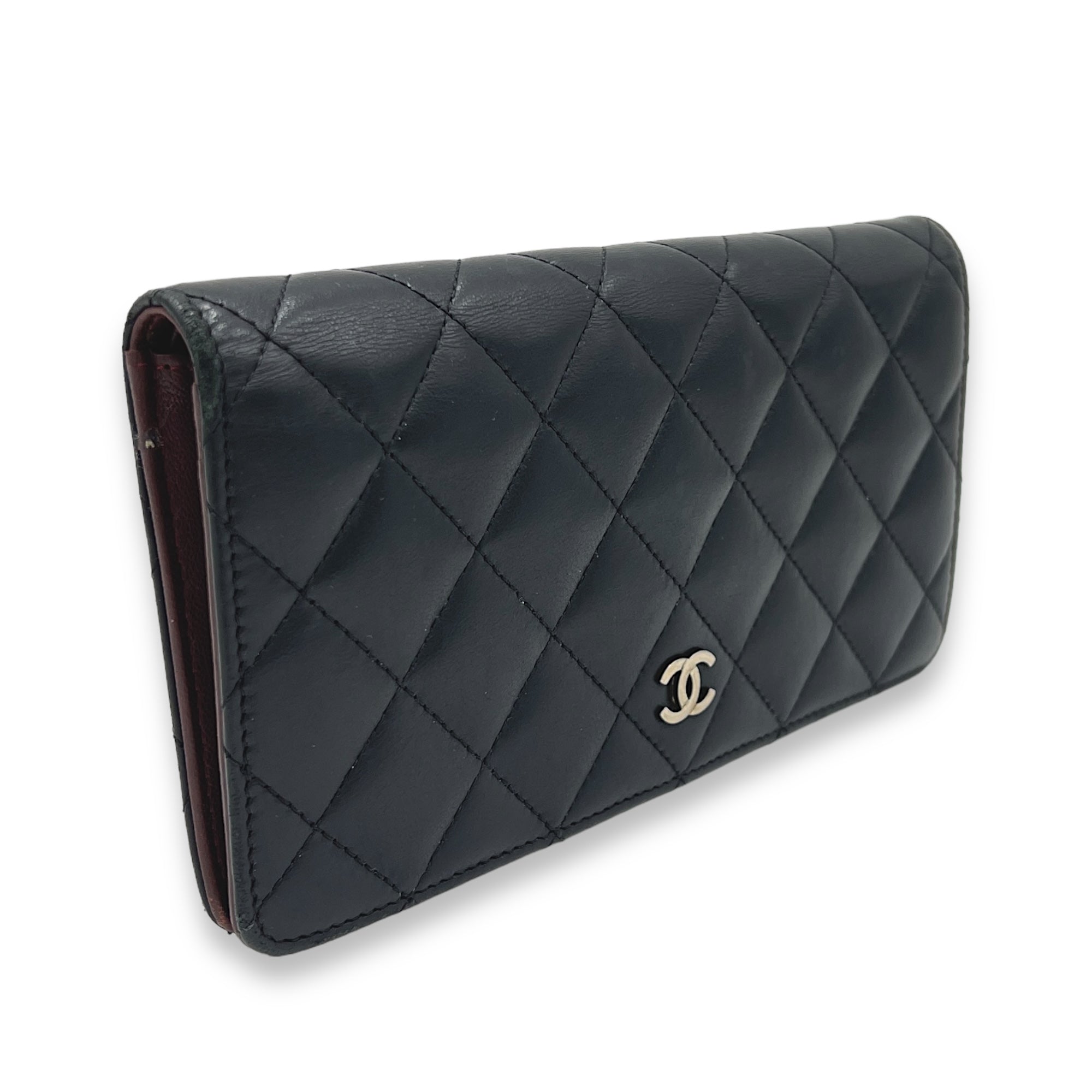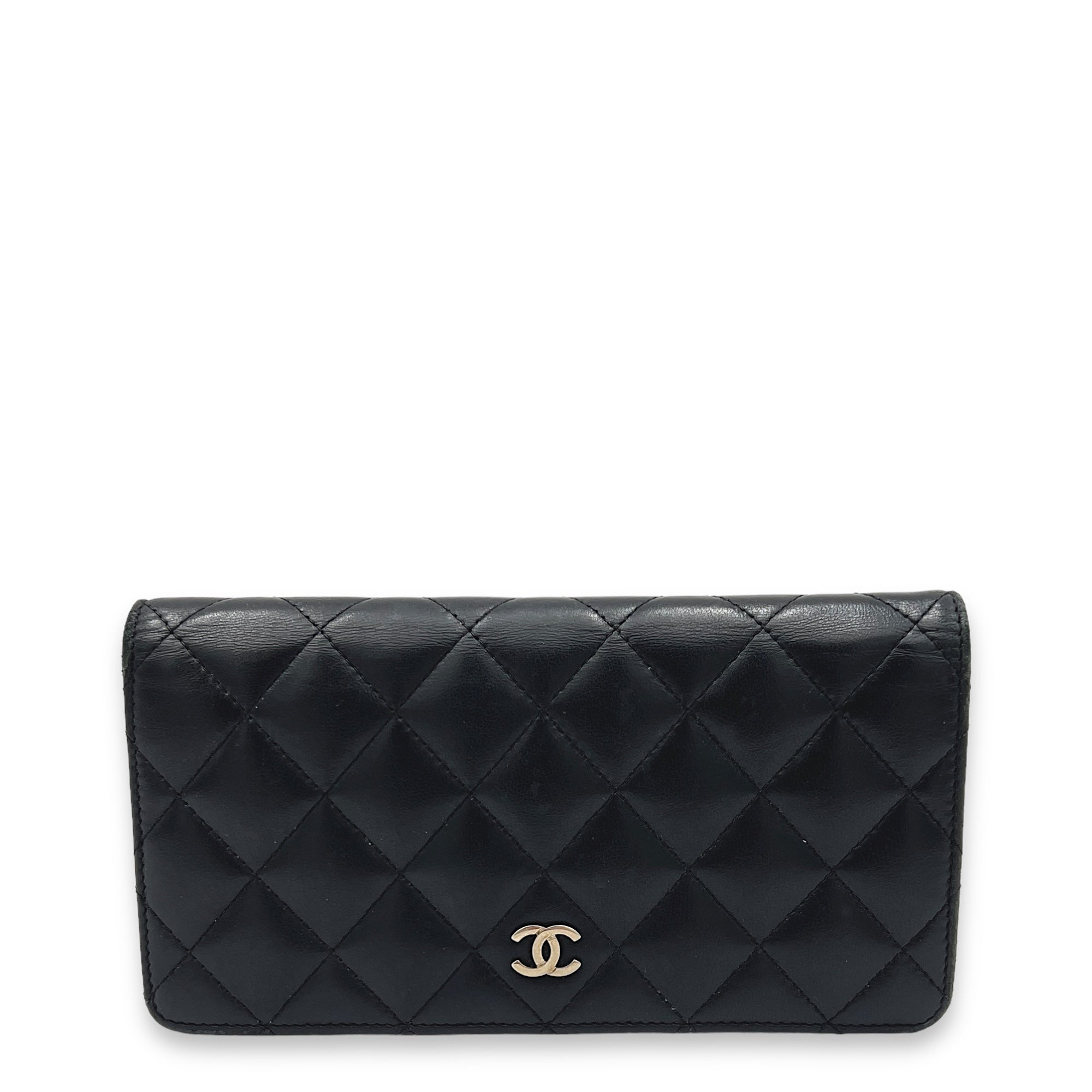 Chanel Quilted Black Wallet in Lambskin, Silver hardware Small Leather Goods Wallet Black Good Condition MEN UNISEX