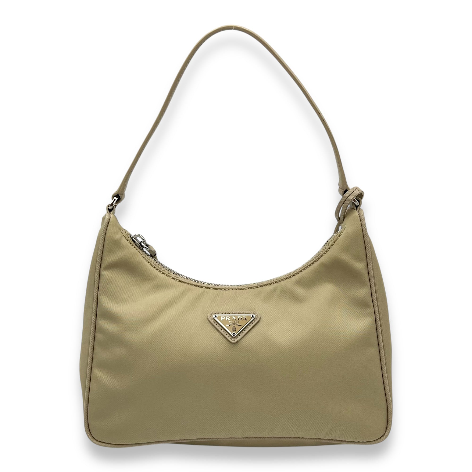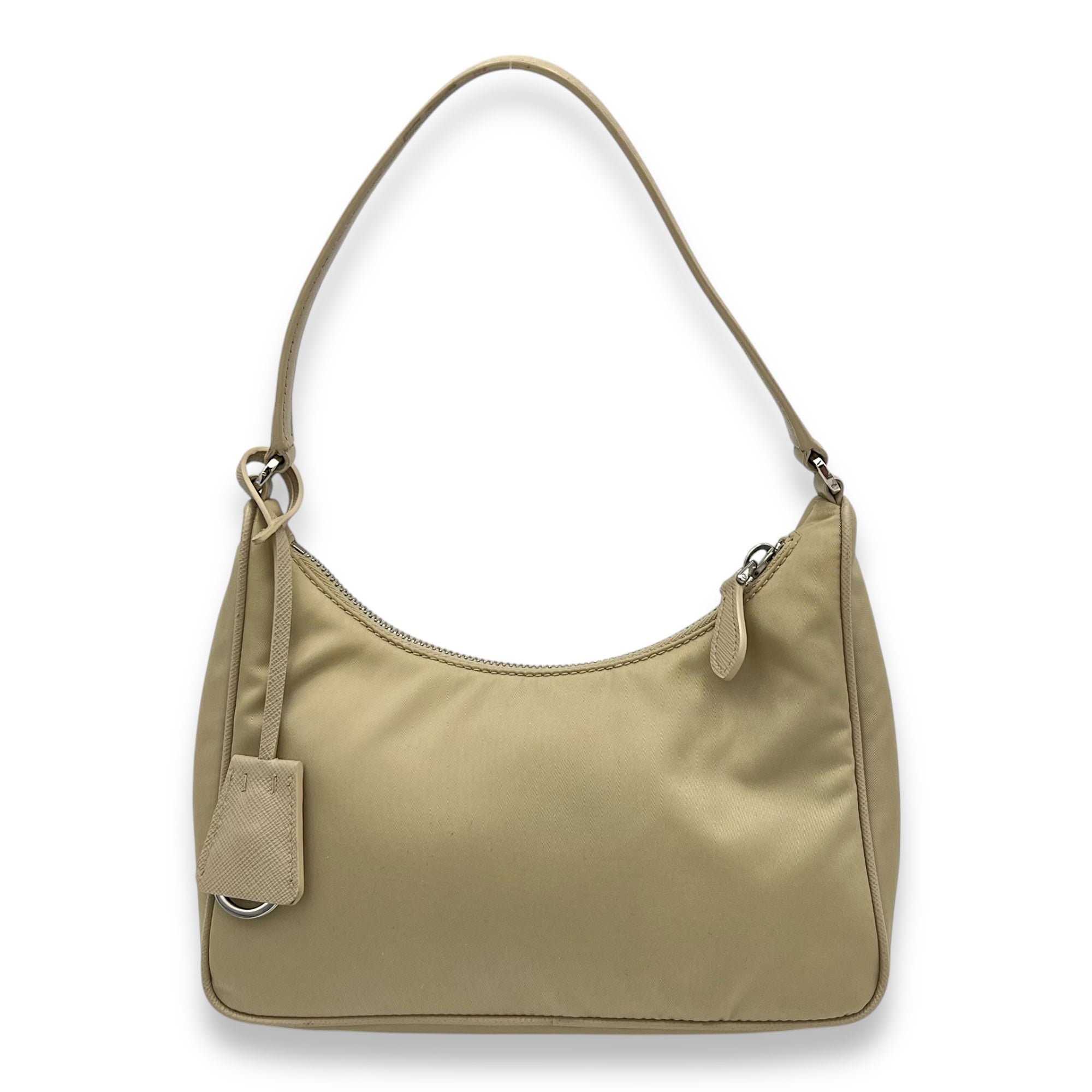 Bags Prada Re-Edition 2005 Shoulder Bag Beige in Nylon, Silver hardware Very Good Condition Beige Shoulder Bag Women Lady Girl