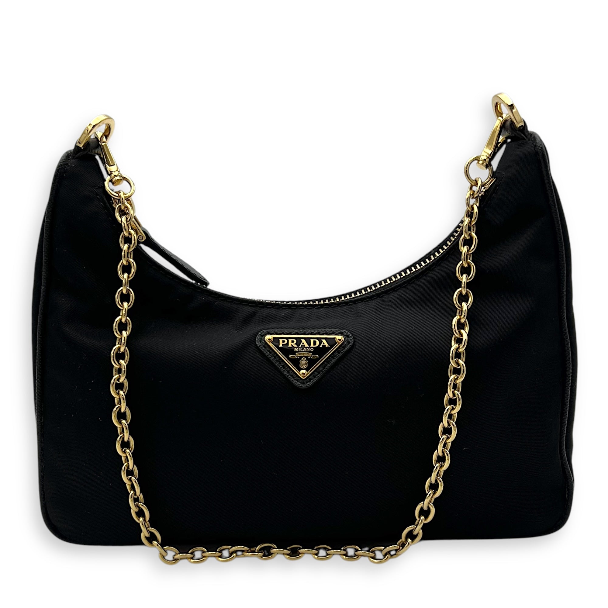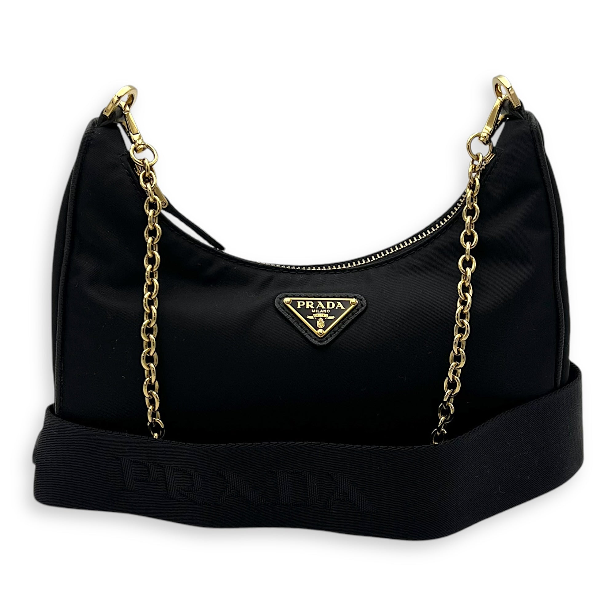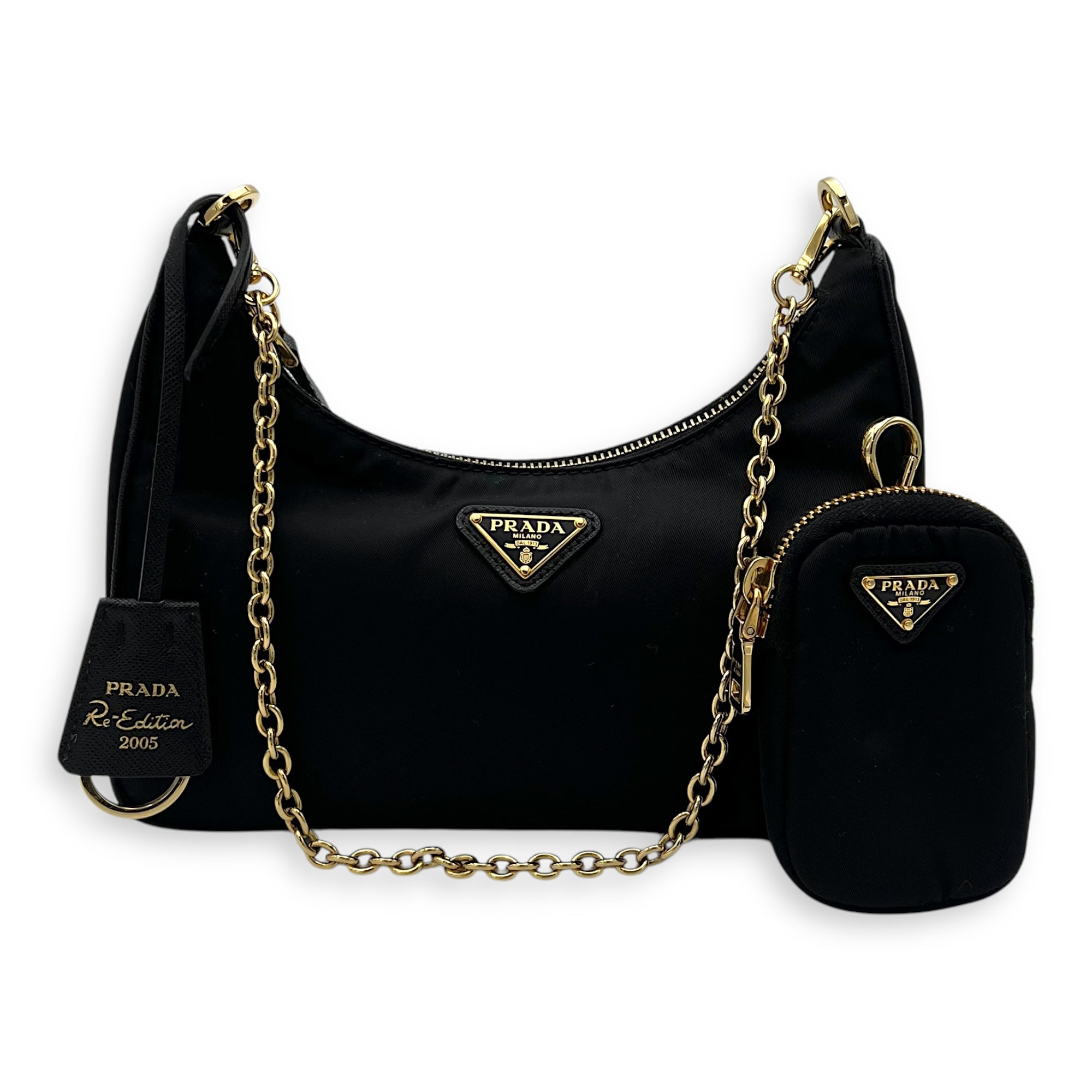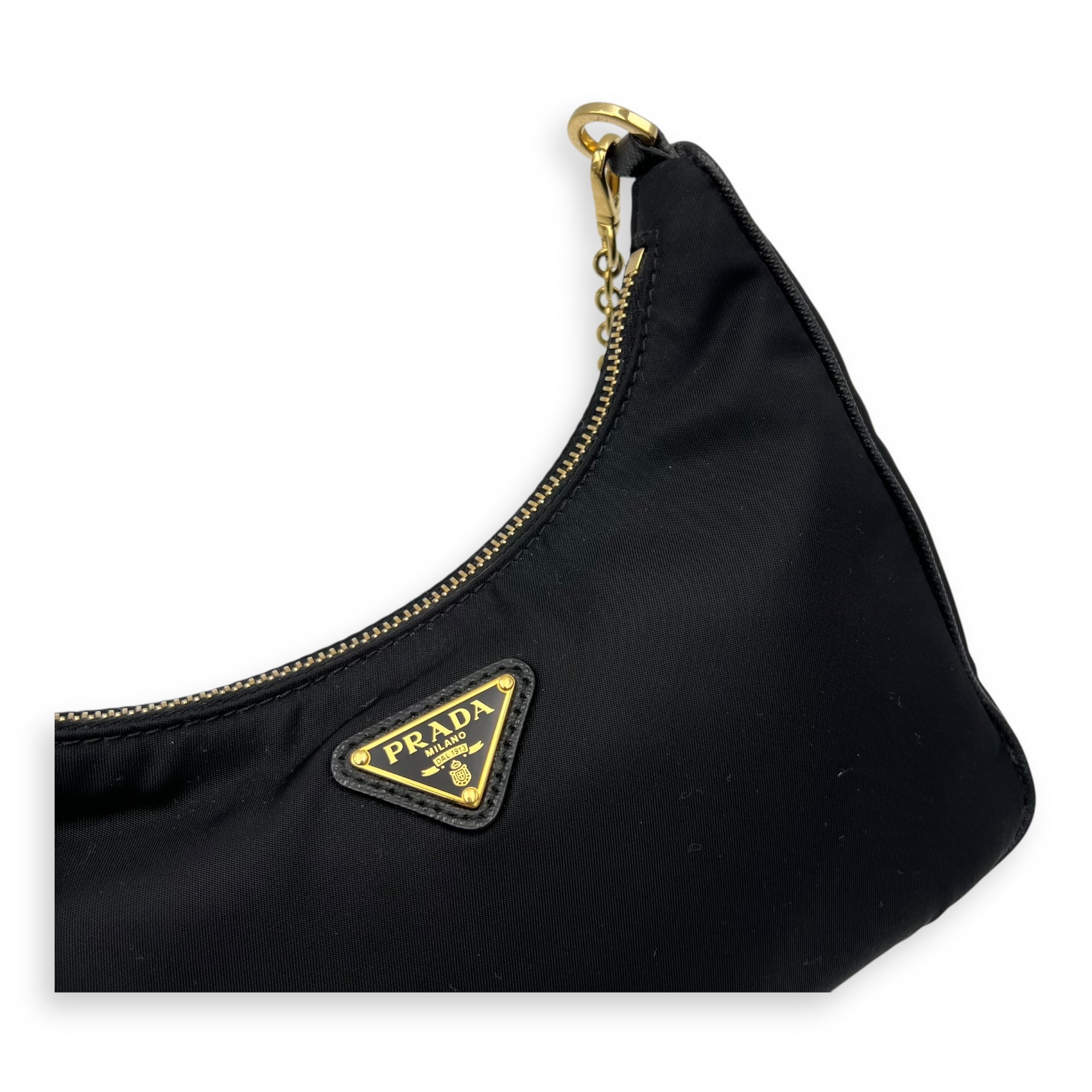 Bags Prada Re-Edition Black Crossbody Bag in Re-Nylon, Gold hardware Good Condition Black Crossbody Bag Women Lady Girl