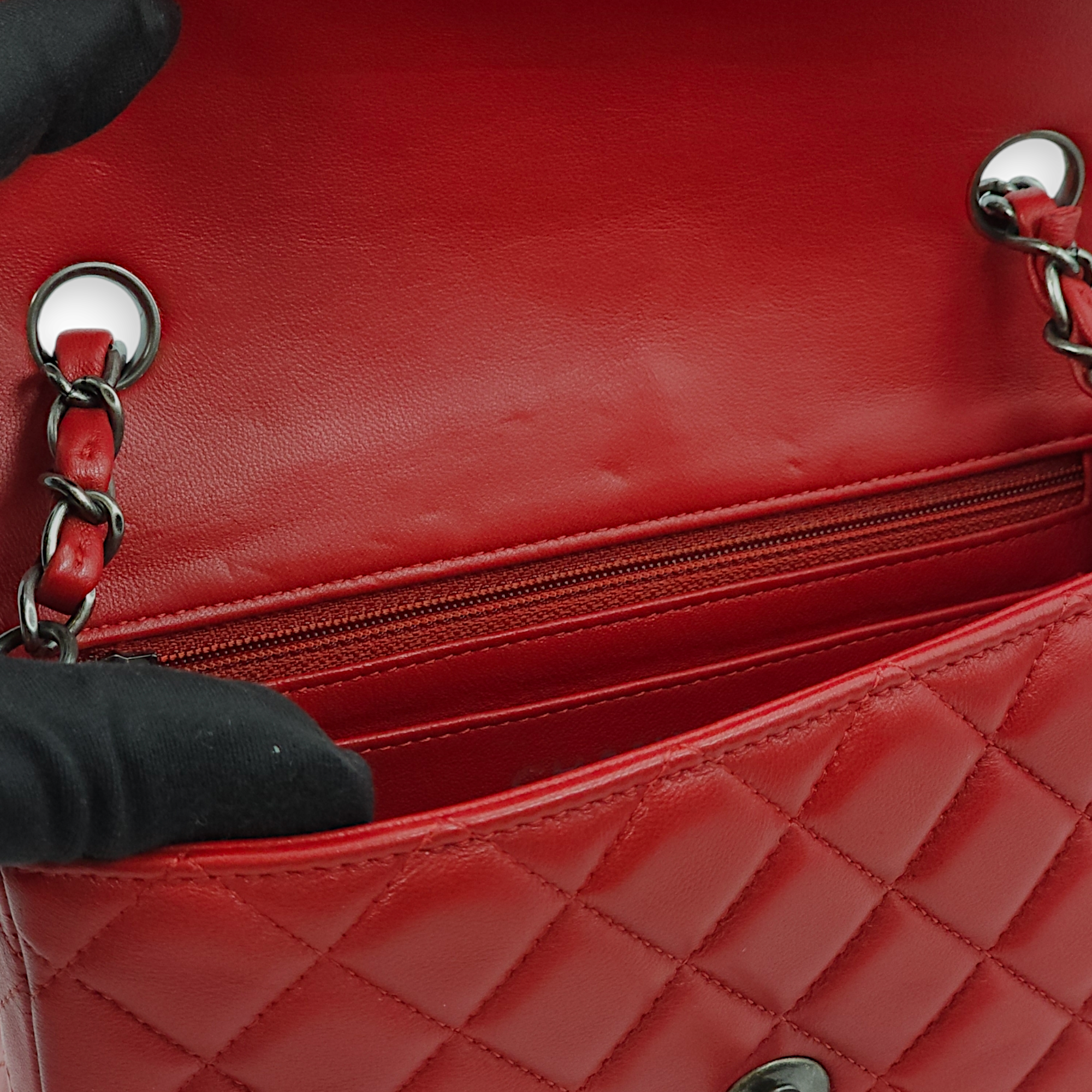 Chanel Rectangle Mini Red Crossbody Bag in Lambskin, Ruthenium hardware Bags Crossbody Bag Red Good Condition MEN UNISEX