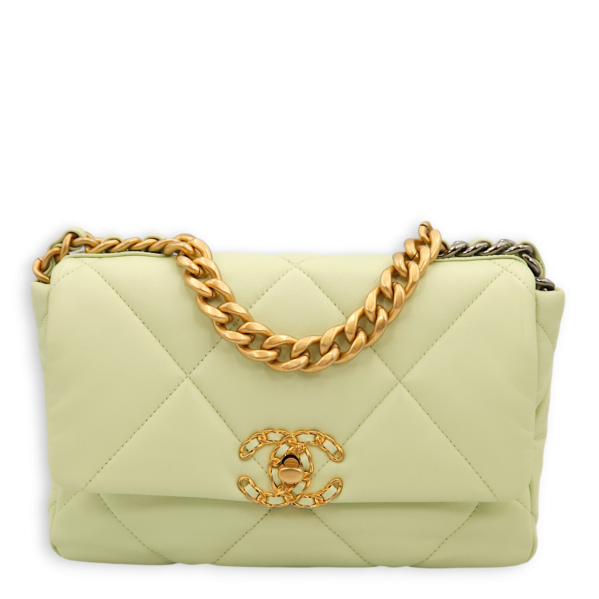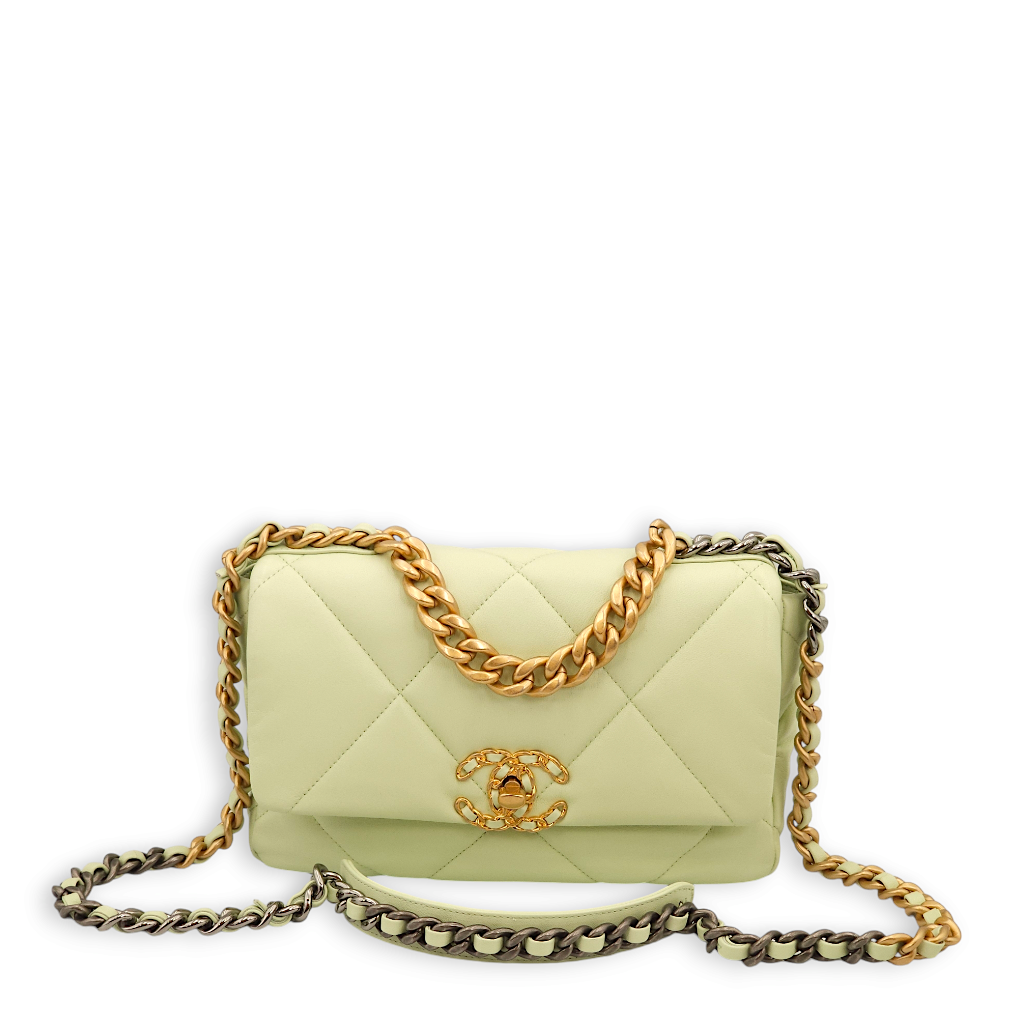 Chanel S19 Flap Small Pastel Green Shoulder Bag in Lambskin, 3-Tone hardware Bags Shoulder Bag Pastel Green Green Brand New