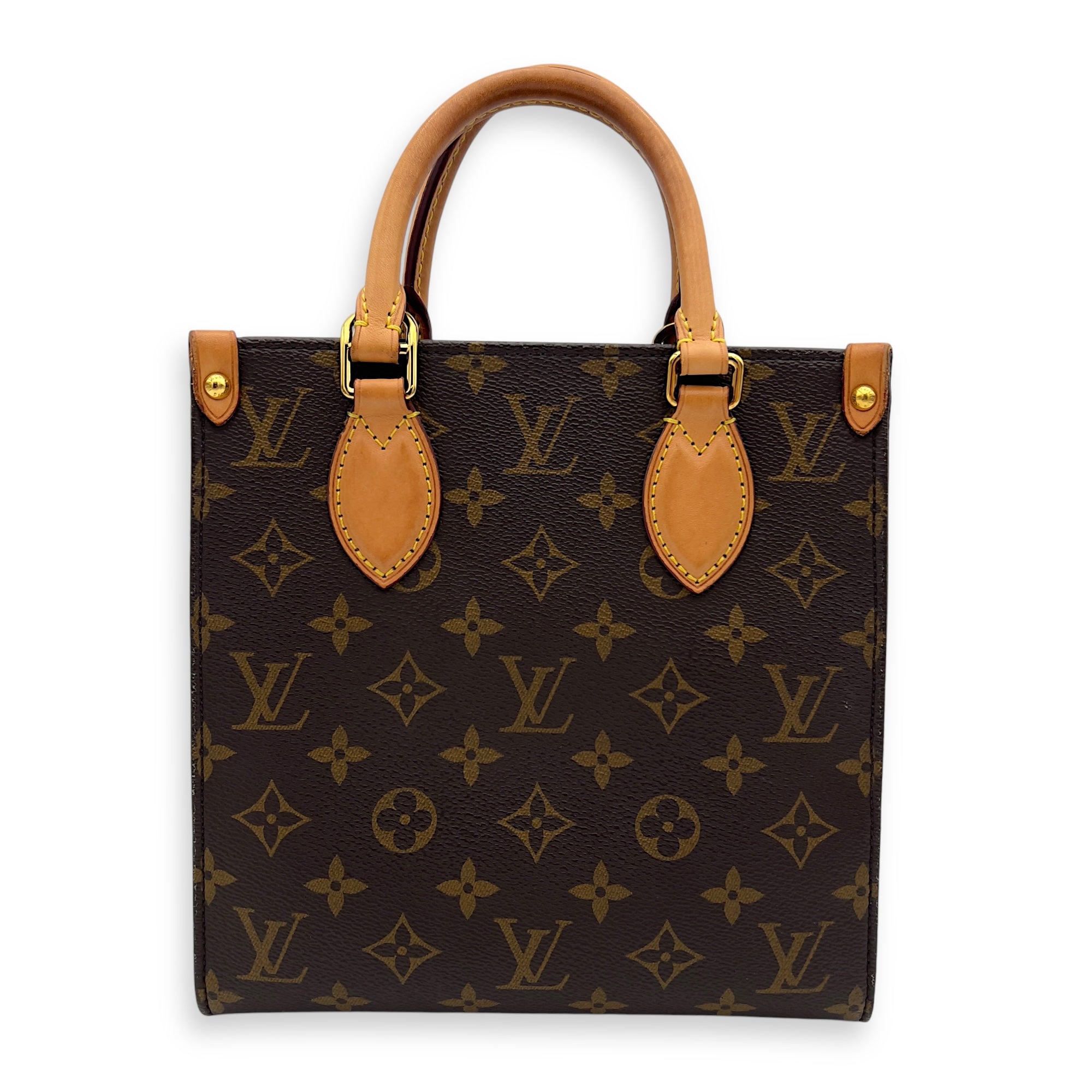 Bags Louis Vuitton Sac Plat Top Handle Bag BB Brown in Monogram Coated Canvas, Gold hardware Good Condition Brown Top Handle Bag Women Lady Girl