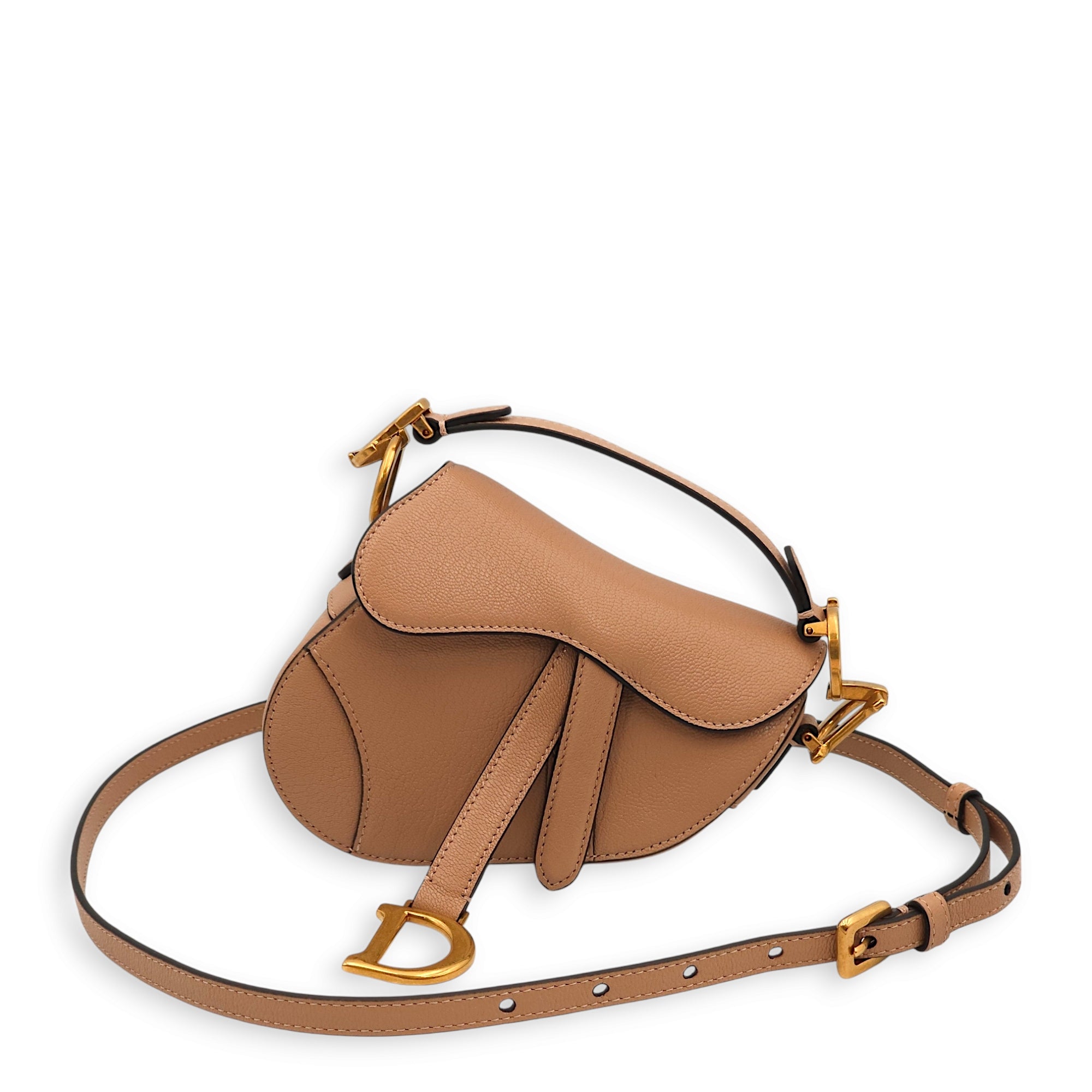 Christian Dior Saddle Micro Beige Top Handle Bag in Goat Leather, Gold hardware Bags Top Handle Bag Beige Very Good Condition