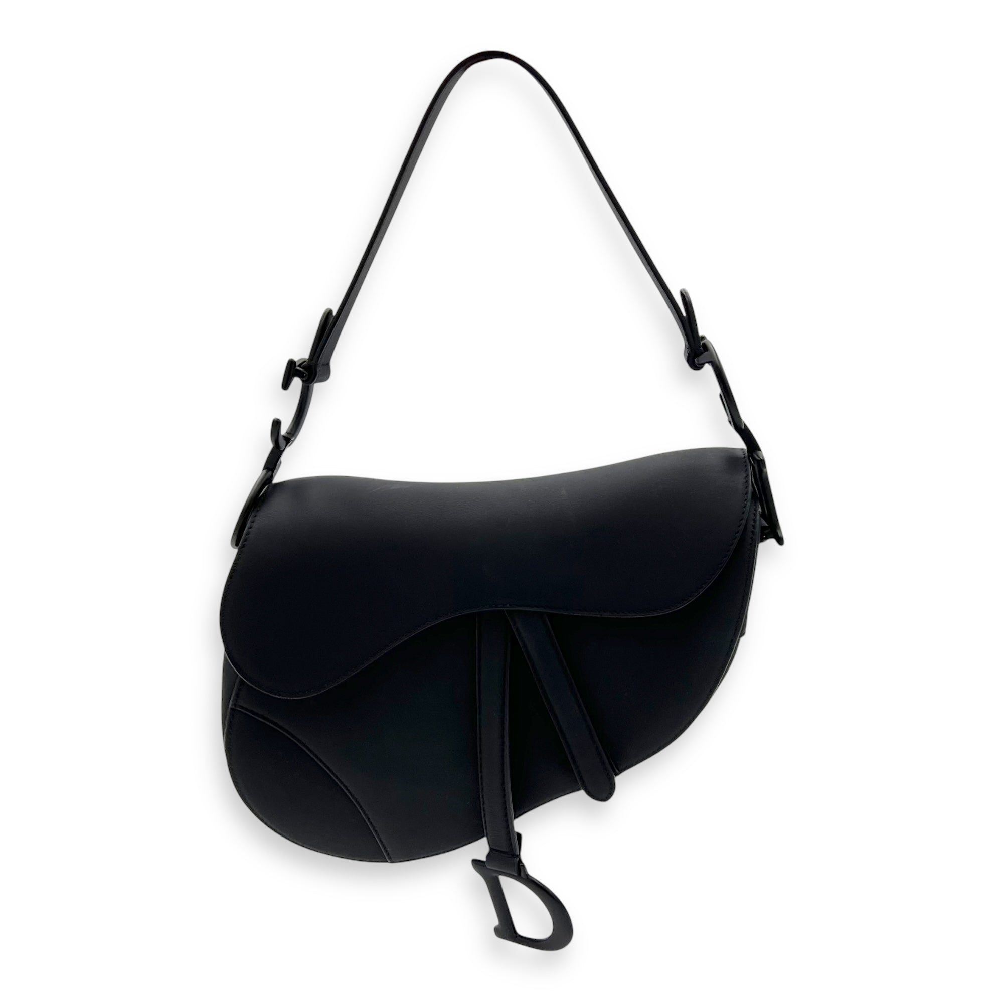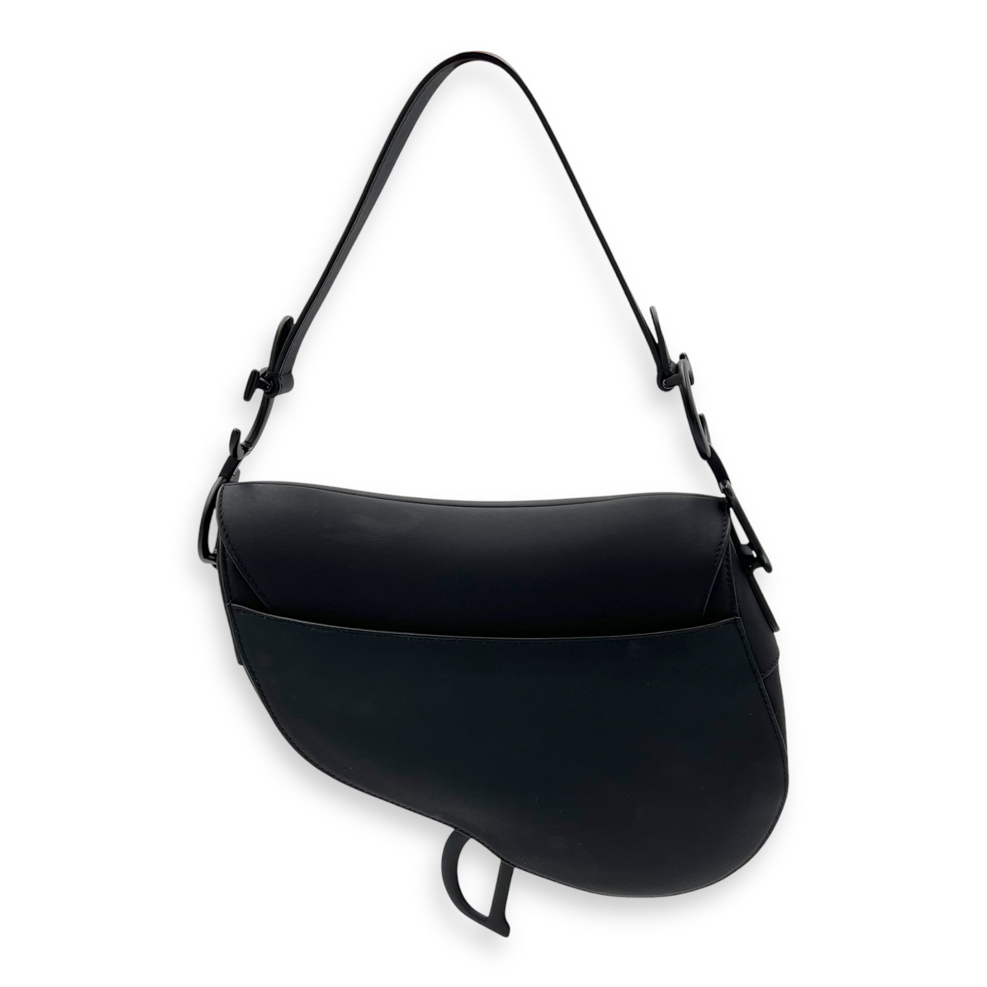 Bags Christian Dior Saddle Shoulder Bag Medium Black in Calfskin, Enamel hardware Good Condition Black Shoulder Bag Women Lady Girl
