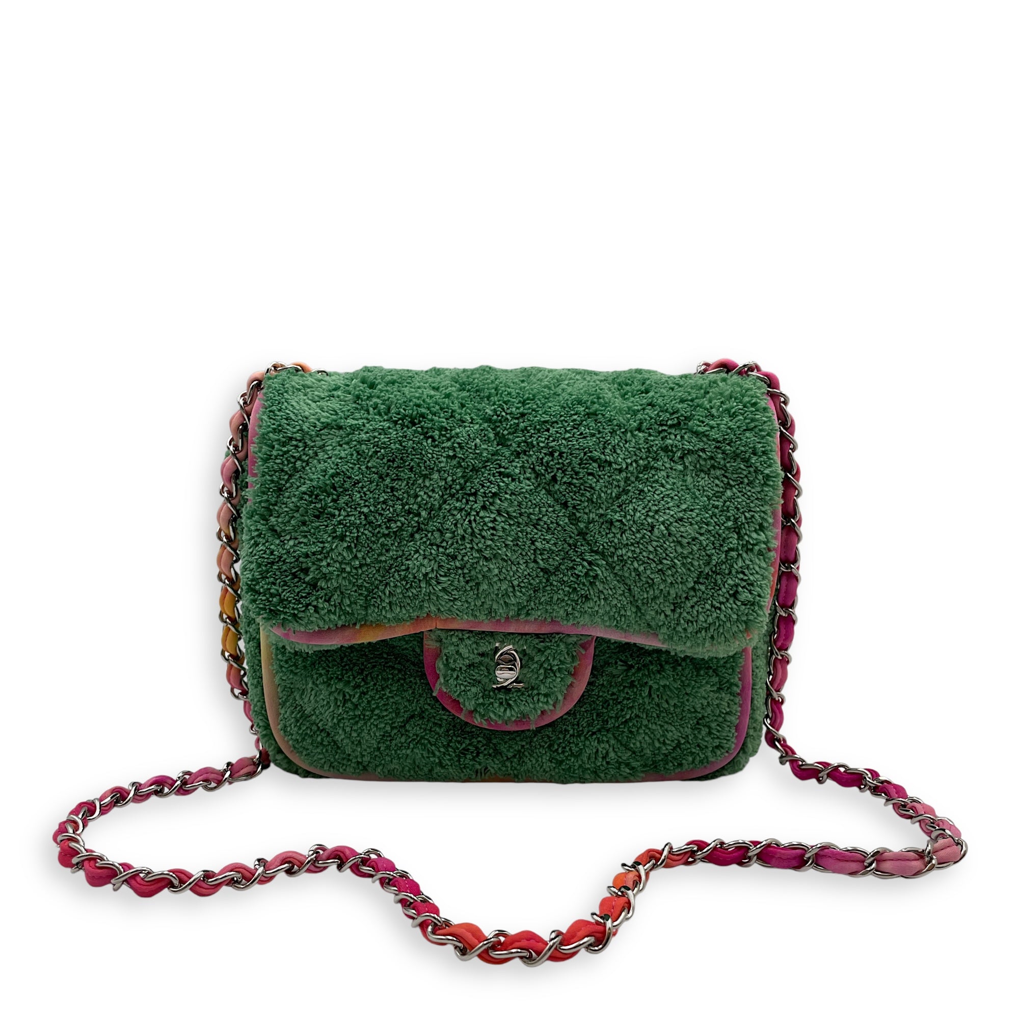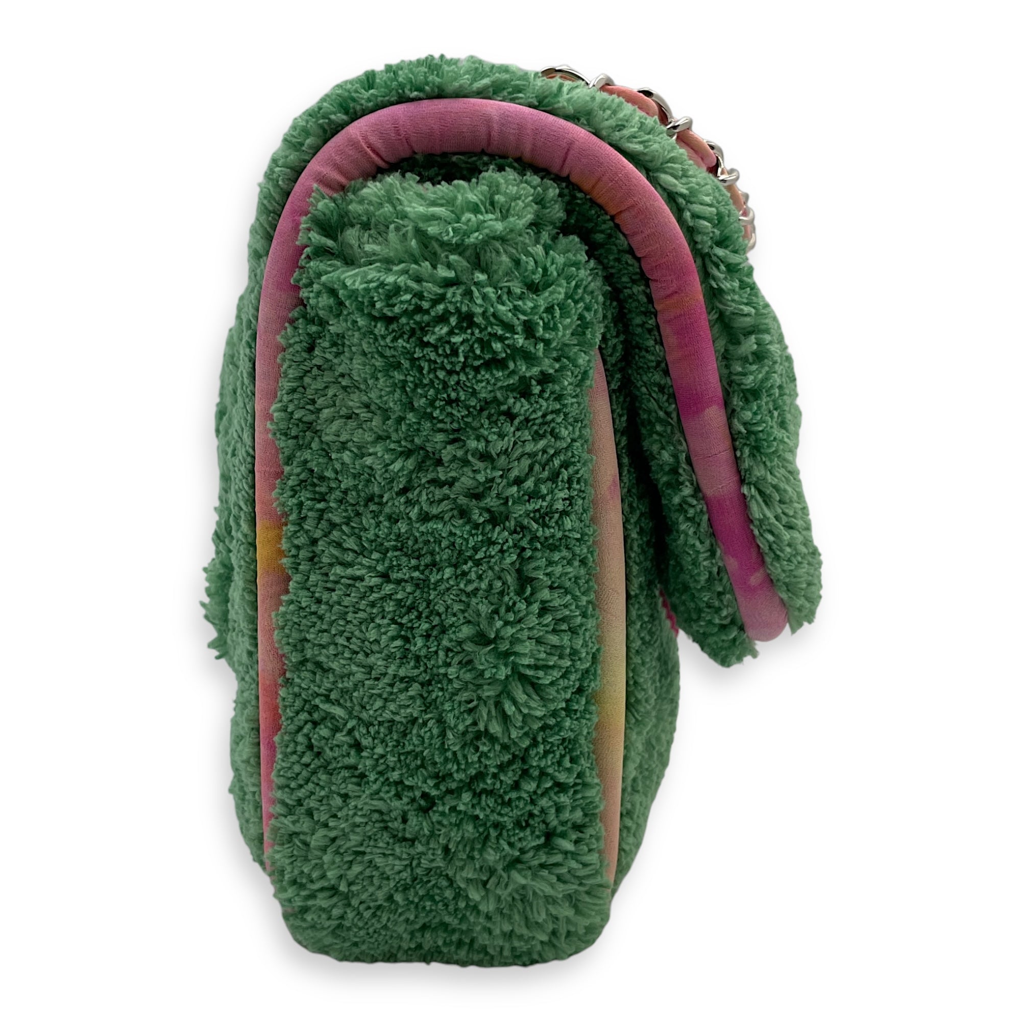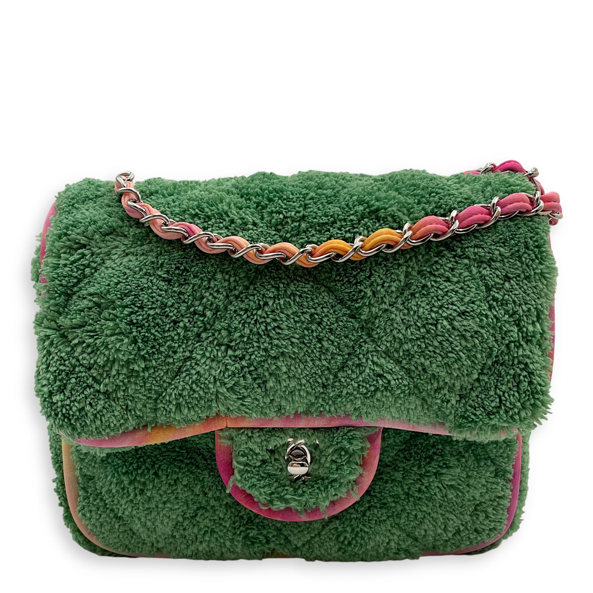 Chanel Seasonal Quilted Flap 21x18x7cm Green Crossbody Bag in Terry cloth, fabric, Silver hardware Bags Crossbody Bag Green Good Condition