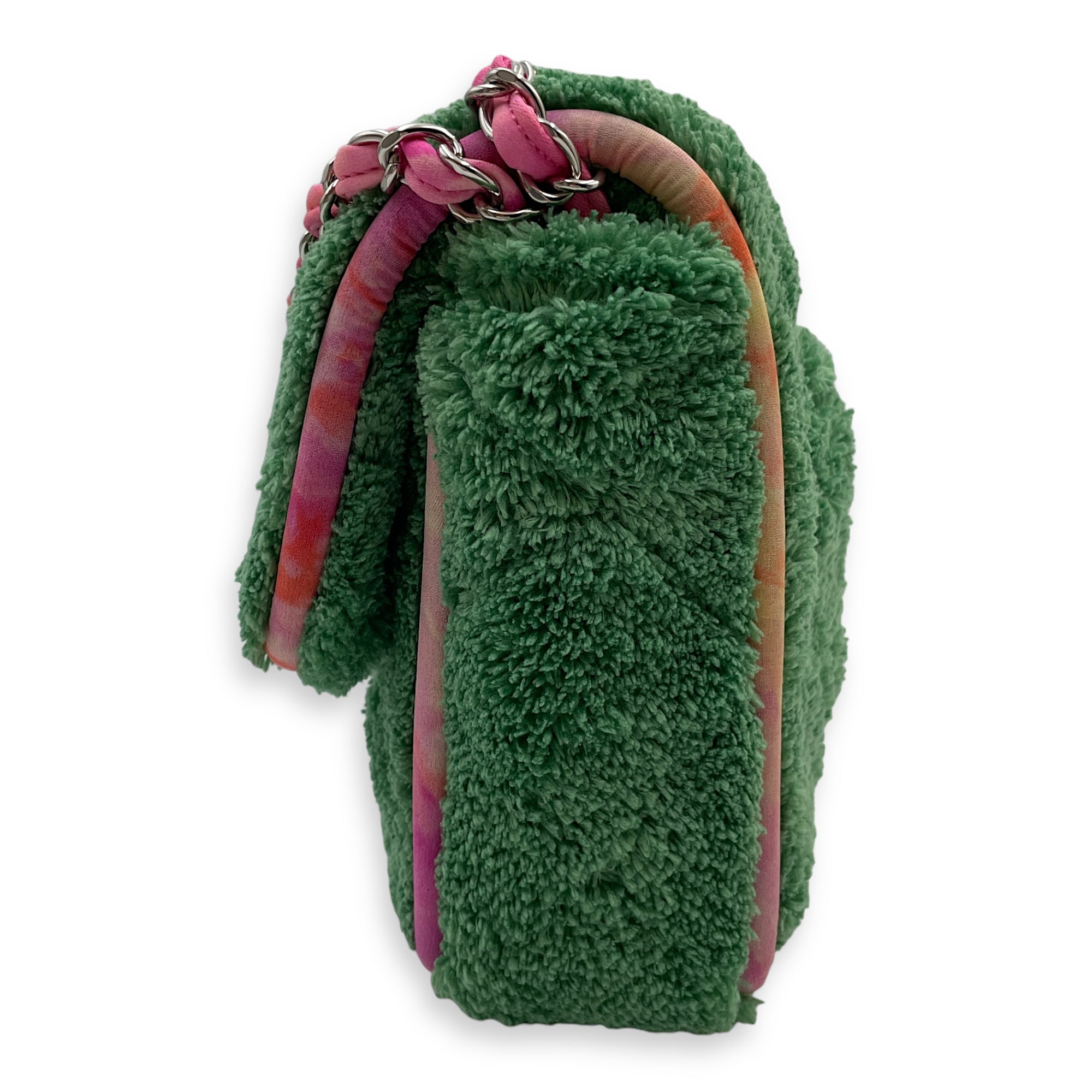 Seasonal Quilted Flap 21x18x7cm Green Crossbody Bag in Terry cloth, fabric, Silver hardware