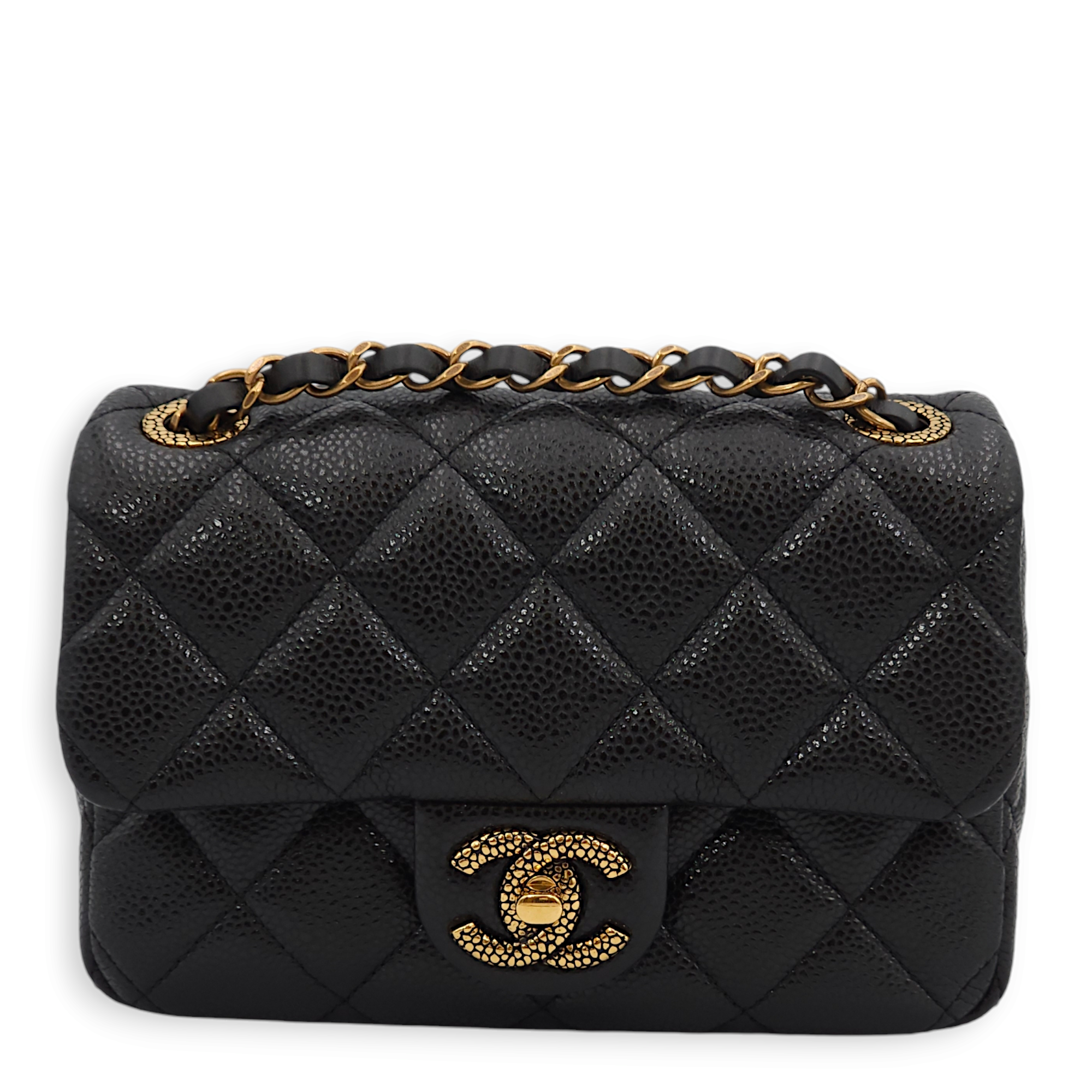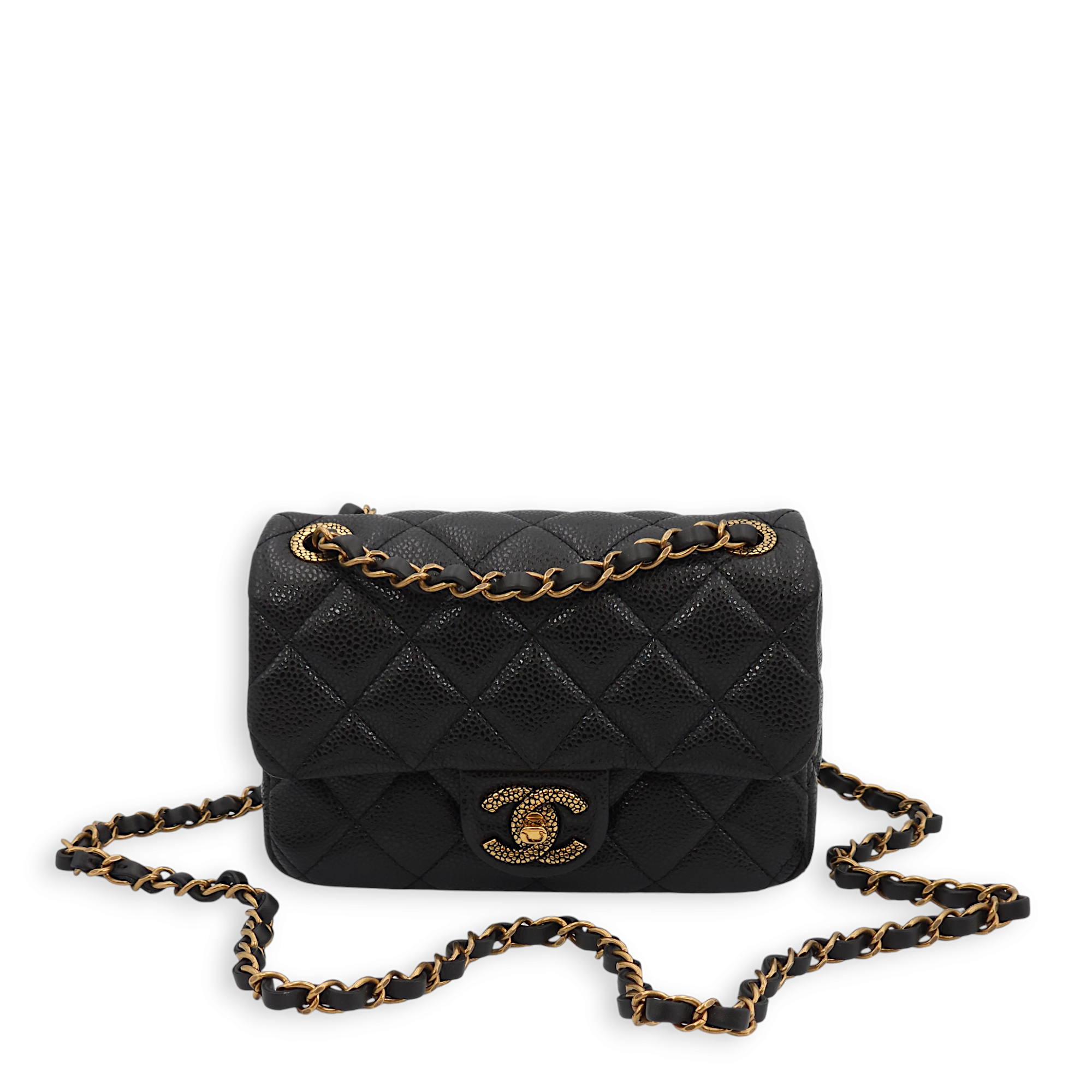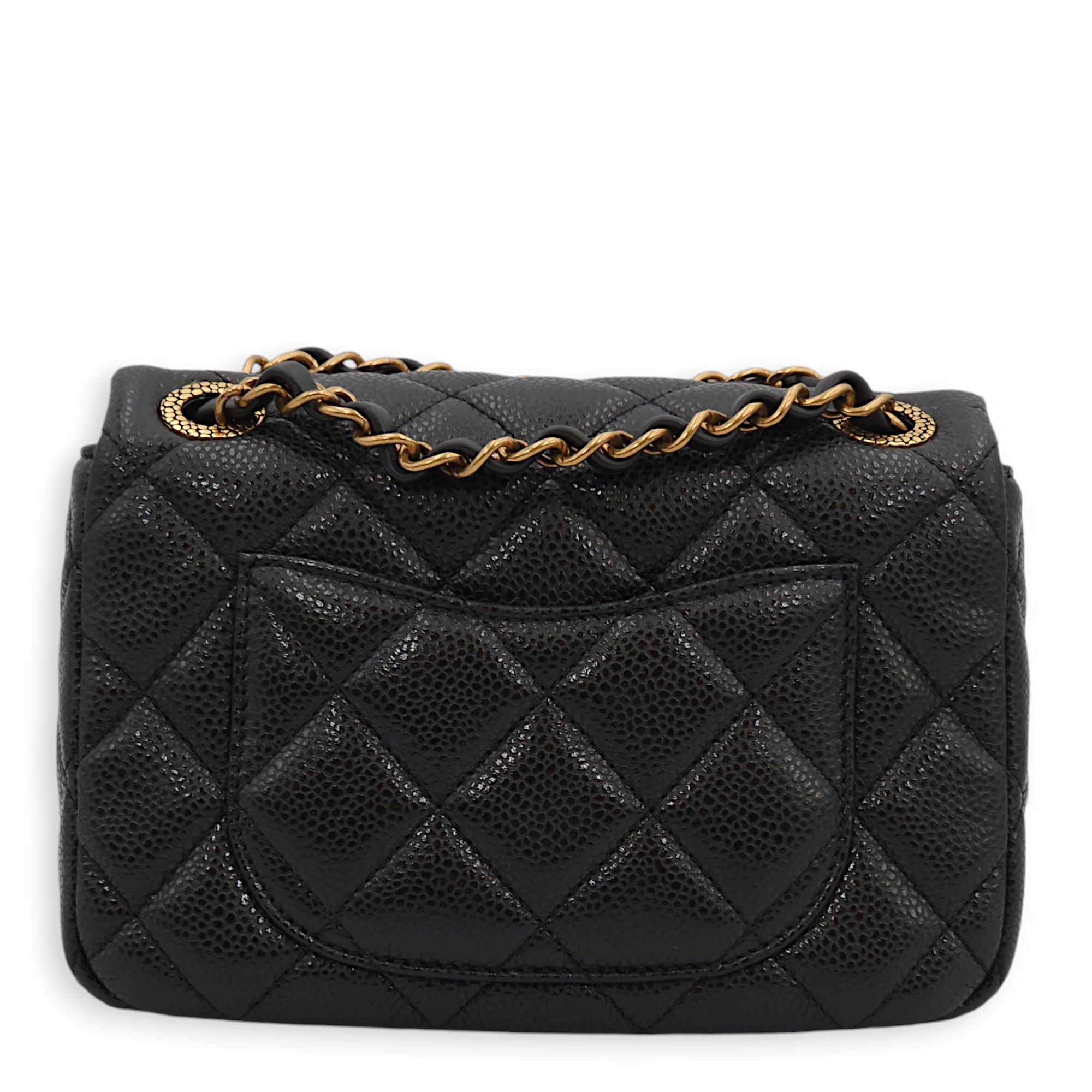 Seasonal Quilted Flap Mini Black Crossbody Bag in Caviar Leather, Gold hardware