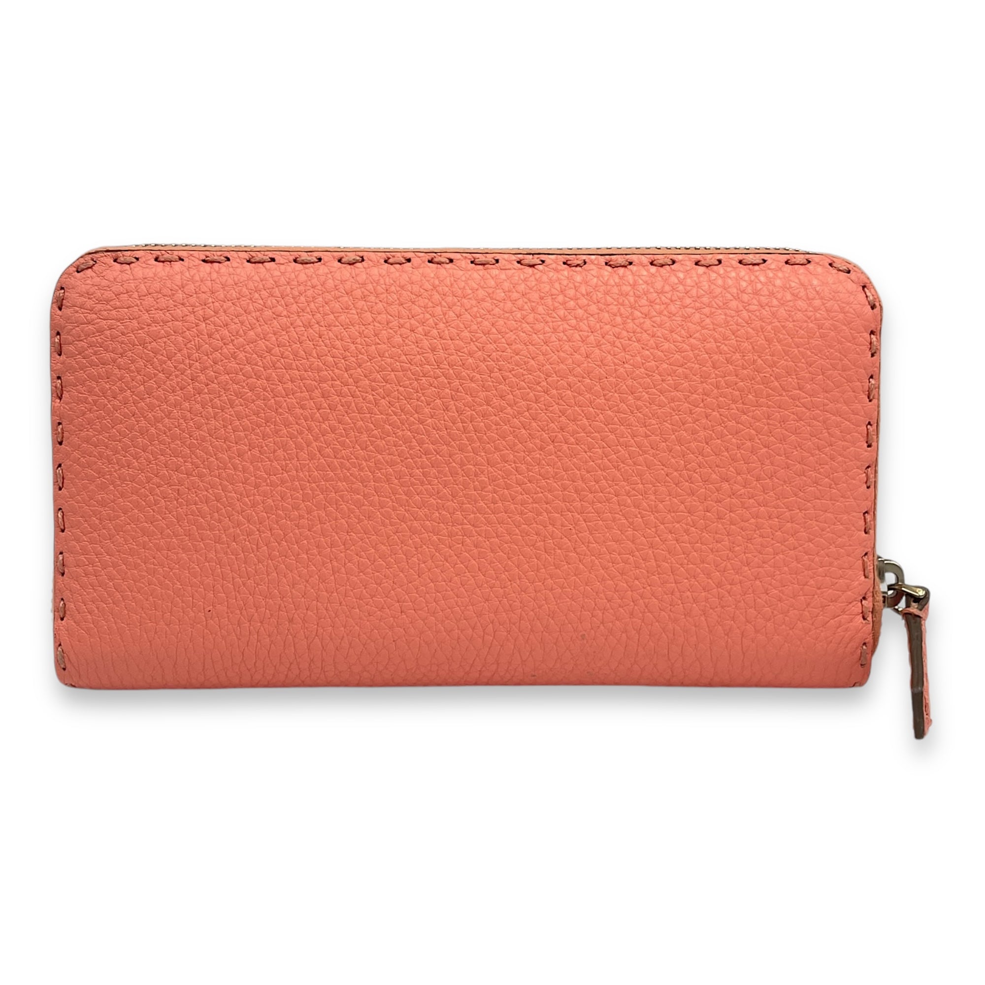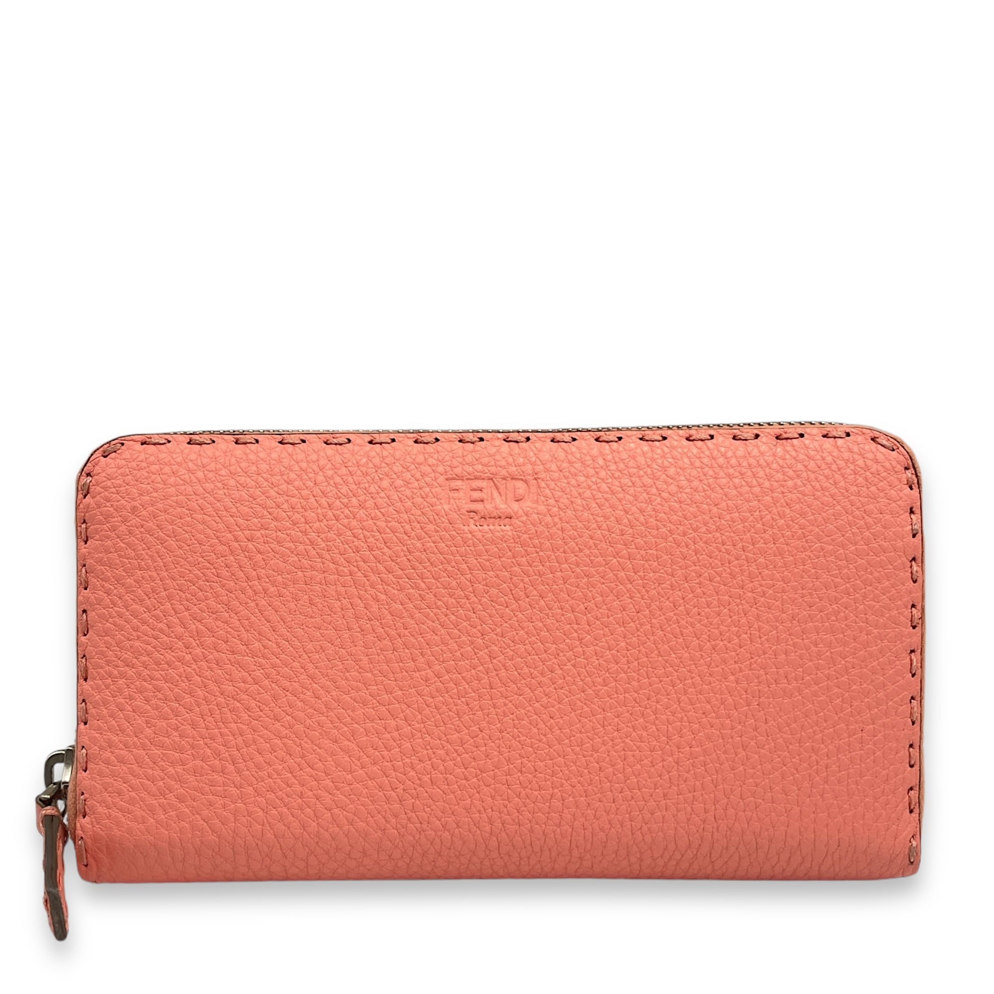 Fendi Selleria Zip Around Long Pink Wallet in Calfskin, Silver hardware Small Leather Goods Wallet Pink Good Condition