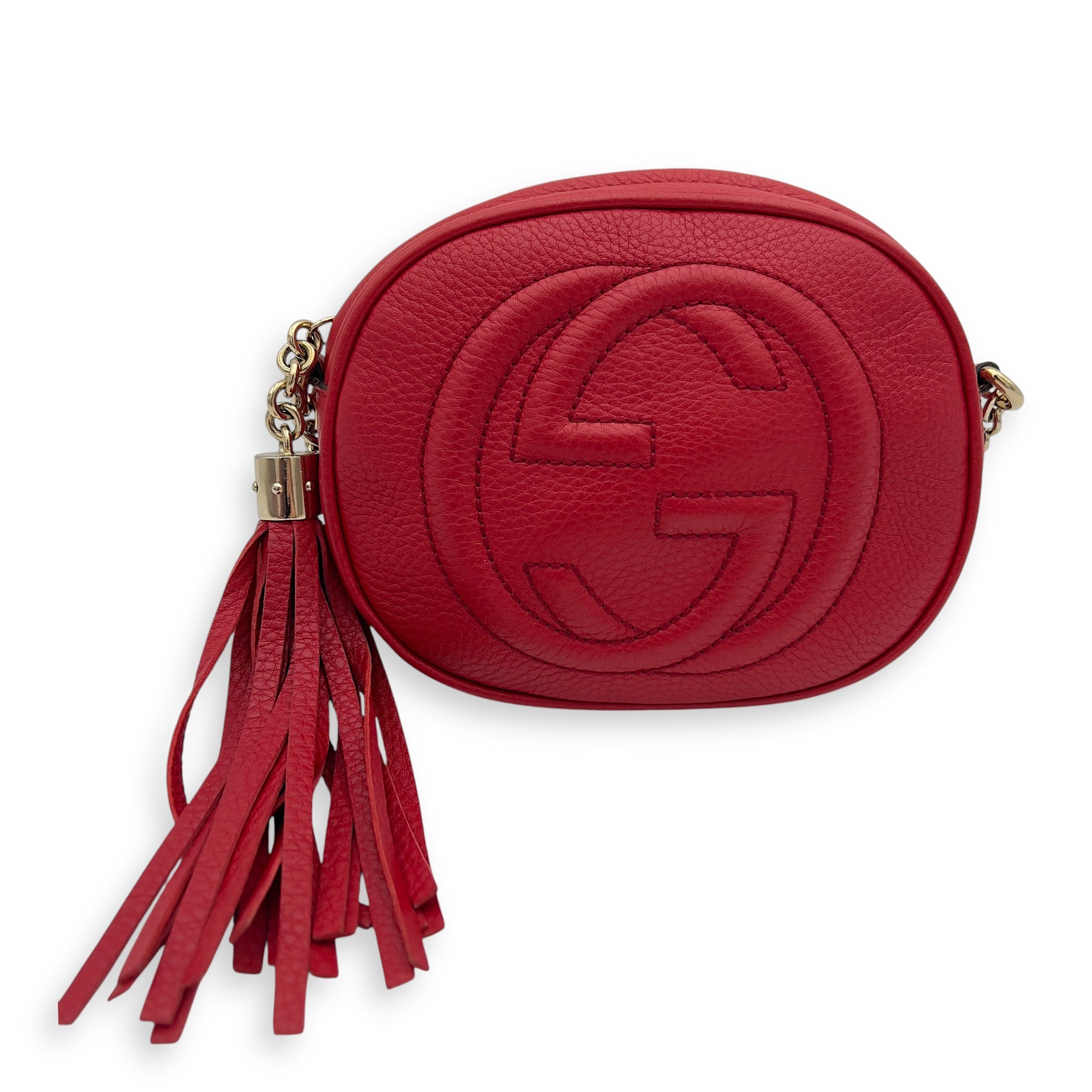 Bags Gucci Soho Crossbody Bag Red in Calfskin, Gold hardware Very Good Condition Red Crossbody Bag Women Lady Girl