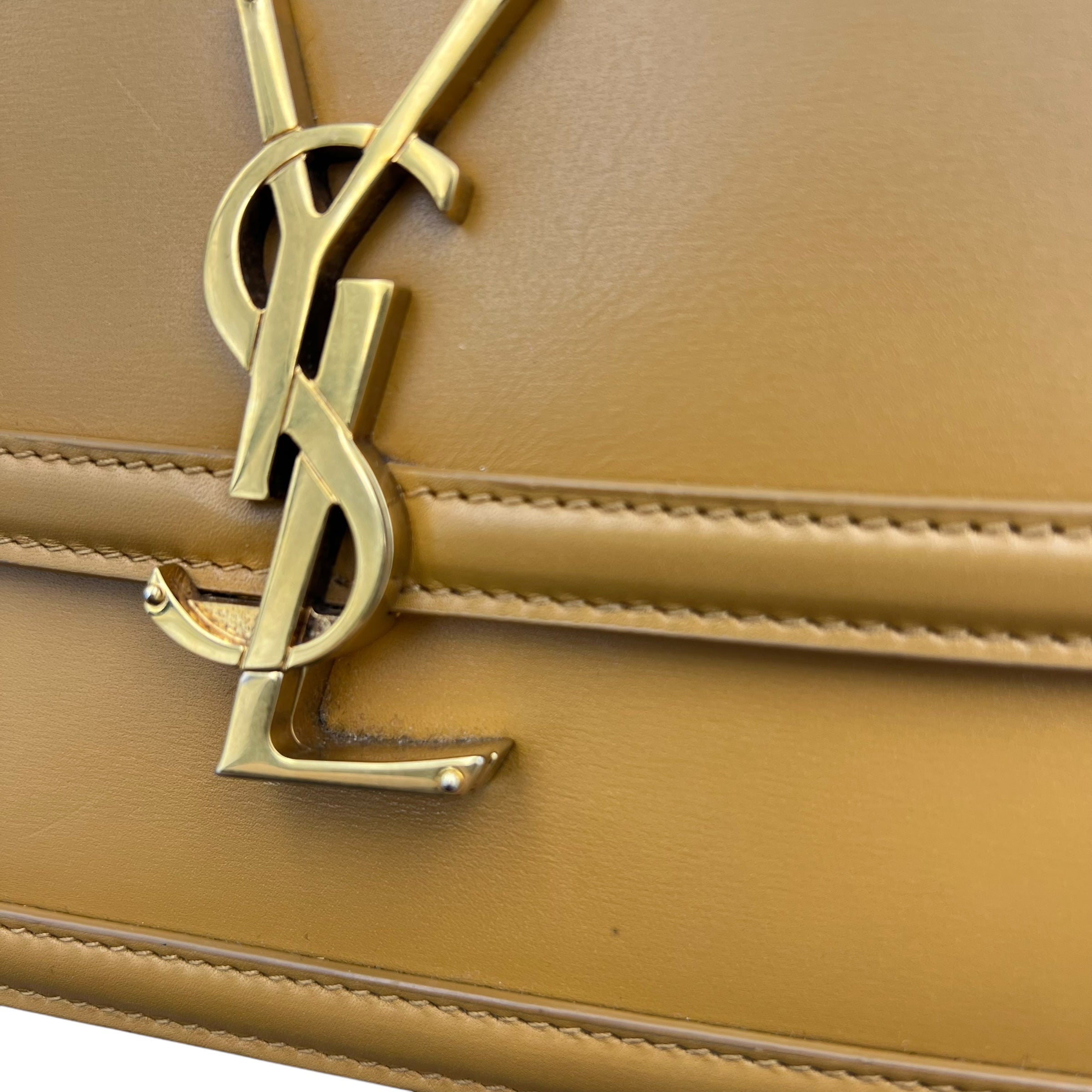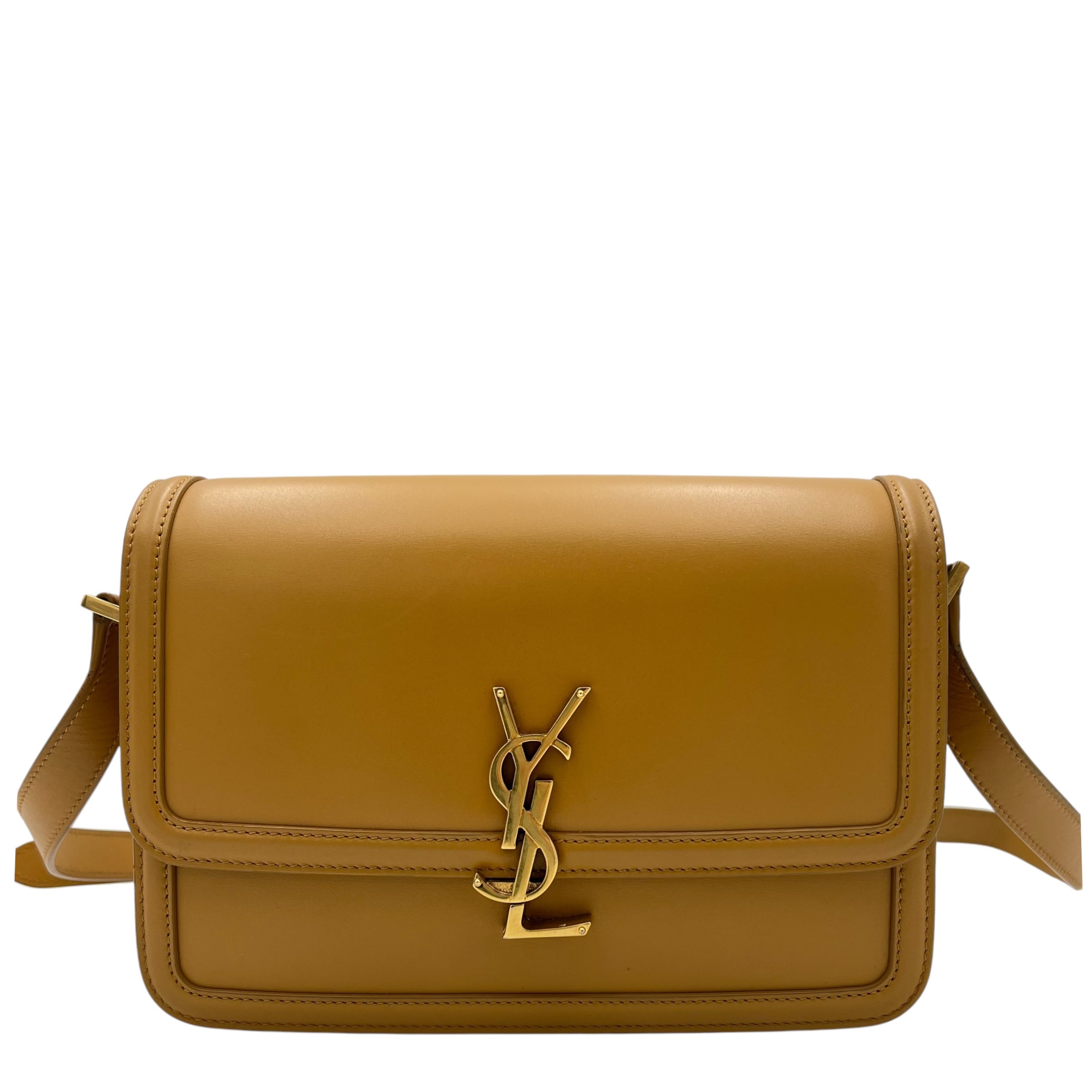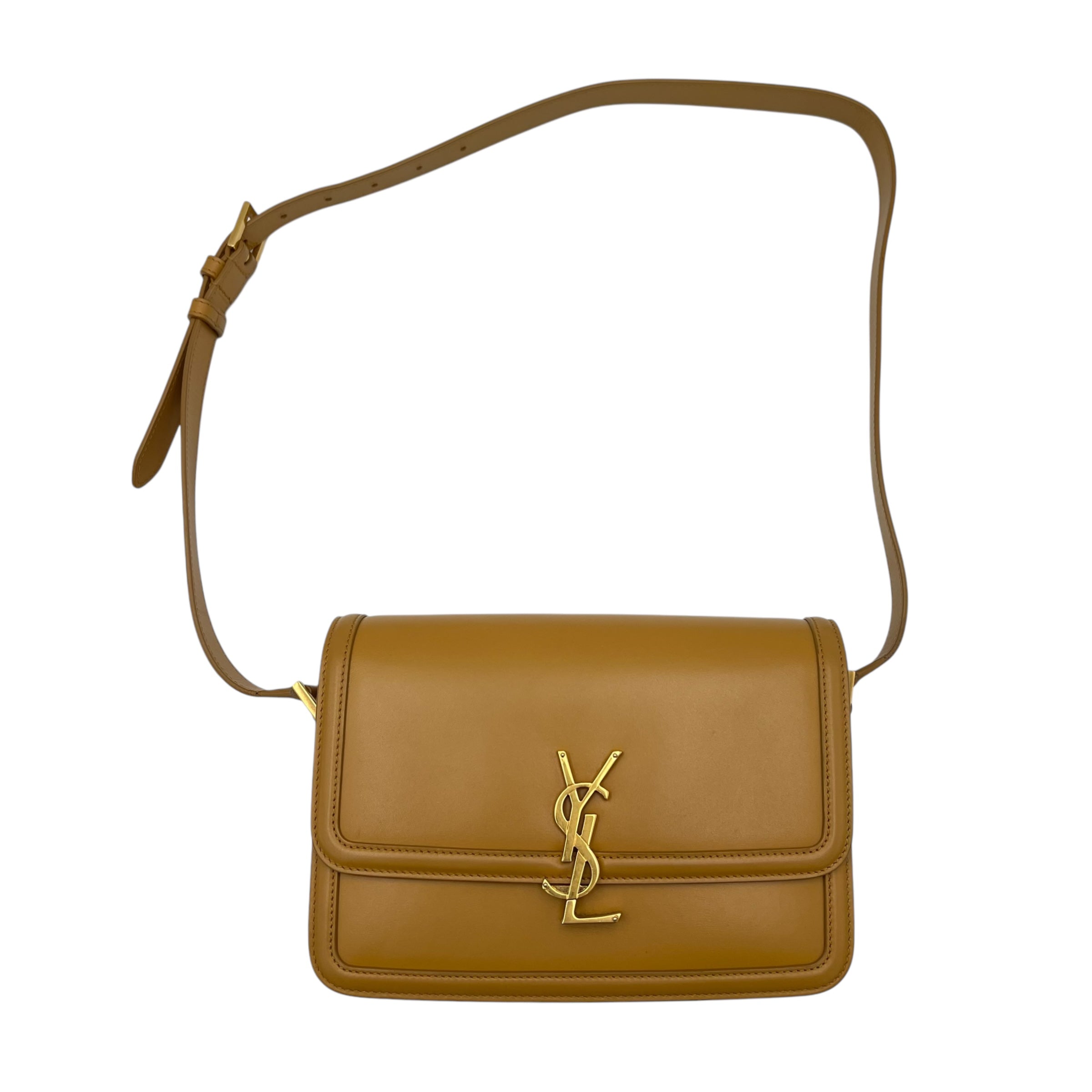 Bags Saint Laurent Solferino Shoulder Bag Brown in Calfskin, Gold hardware Good Condition Brown Shoulder Bag Women Lady Girl
