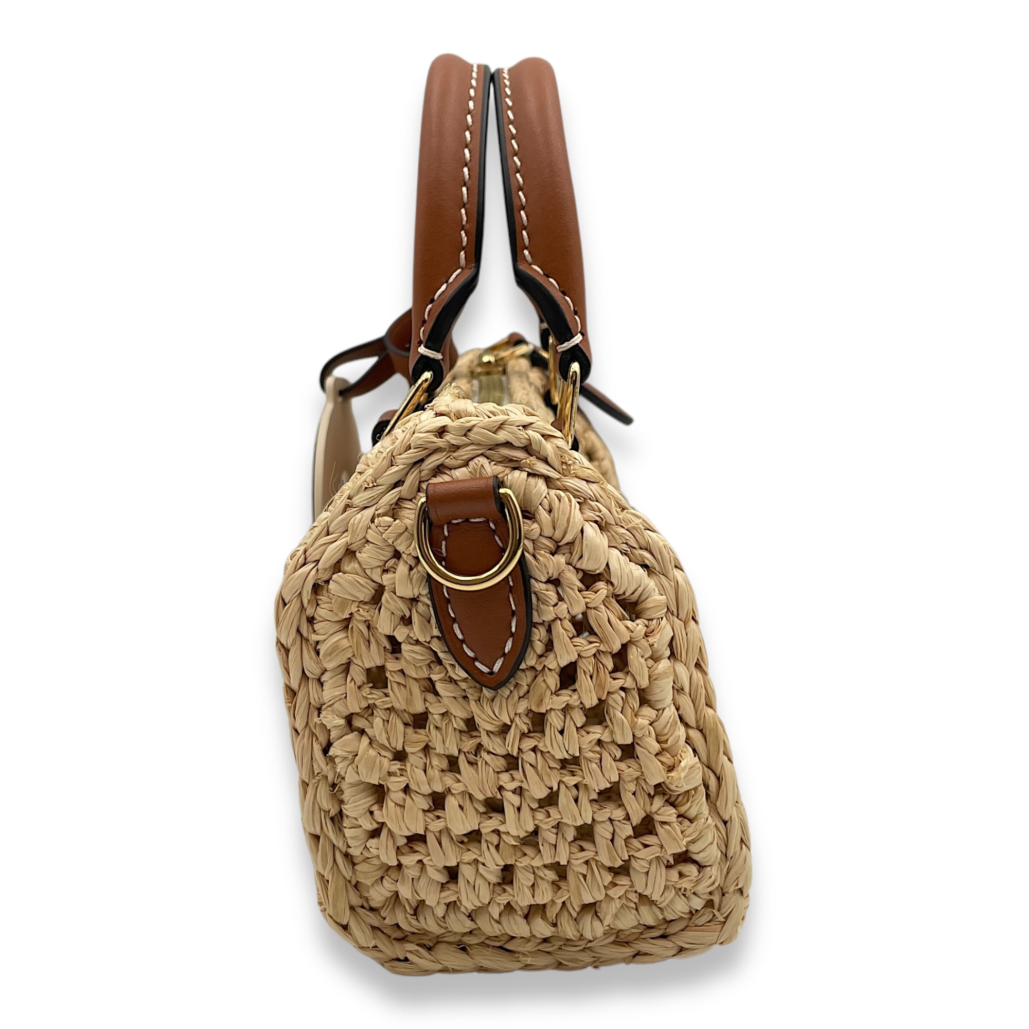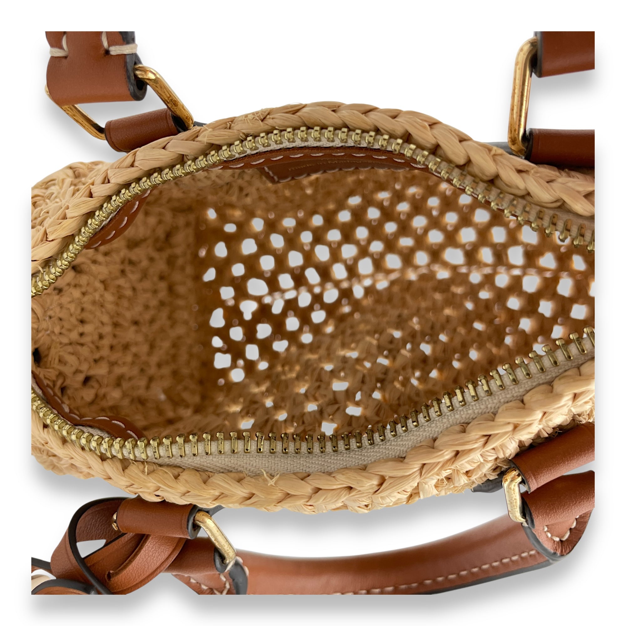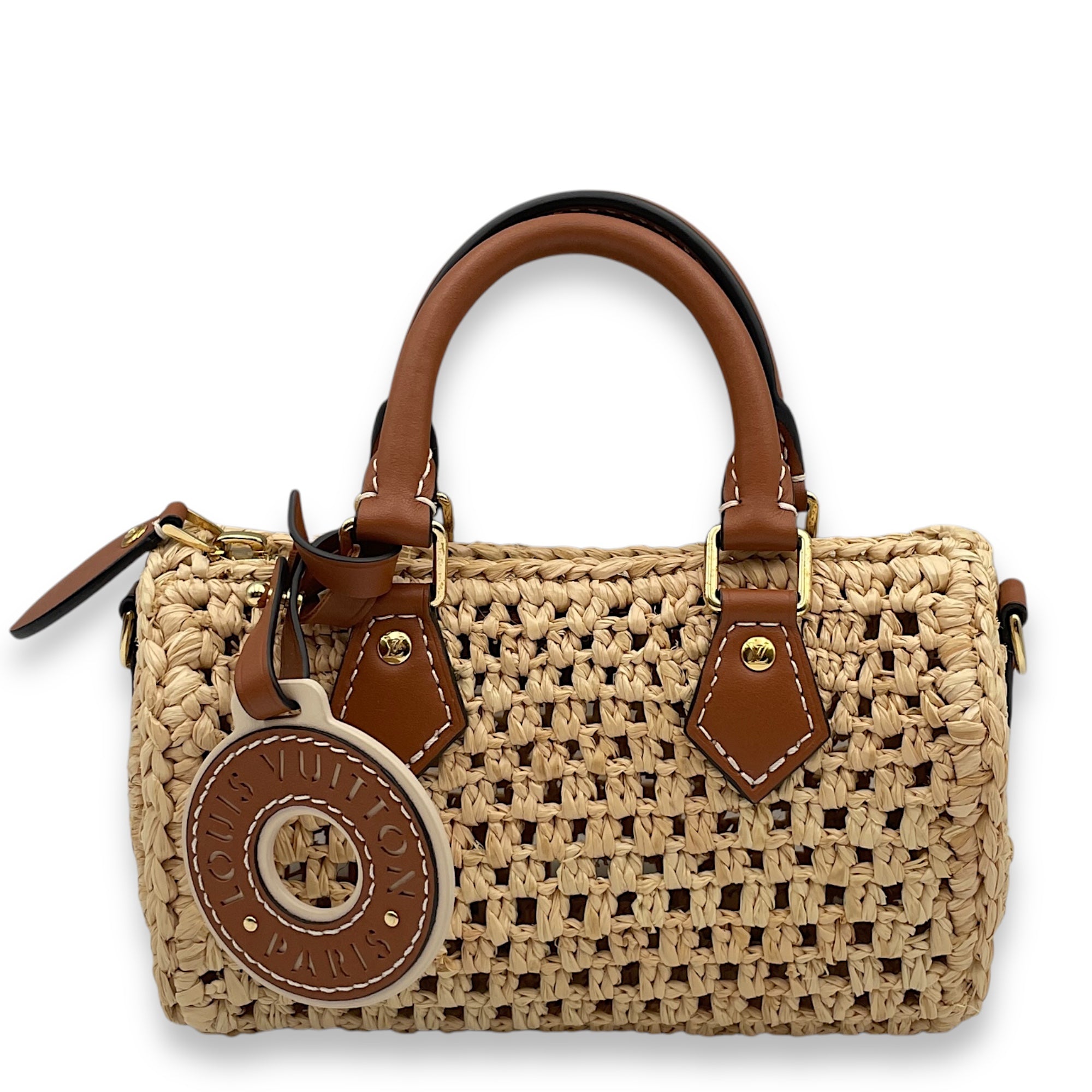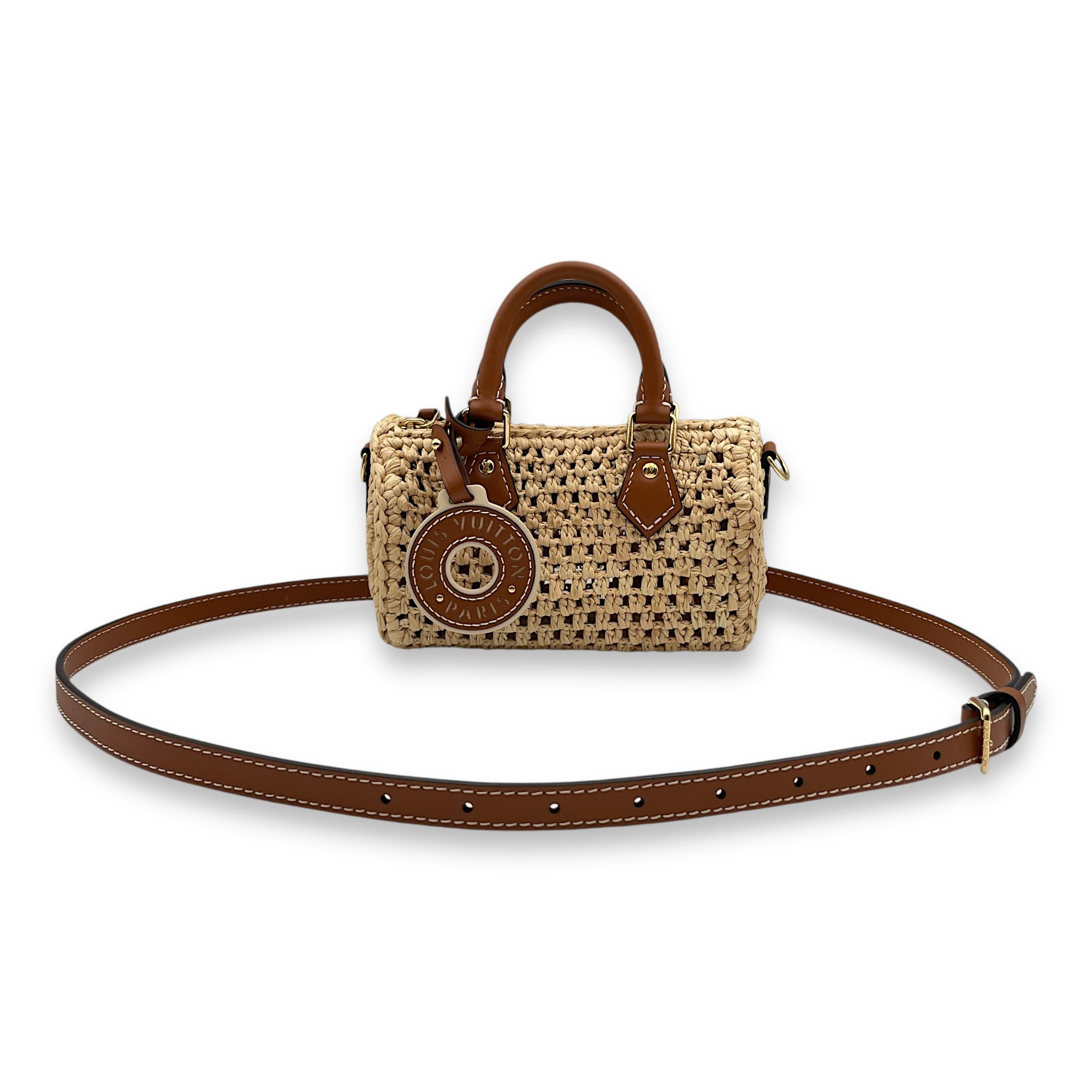 Louis Vuitton Speedy Nano Tan Crossbody Bag in Natural raffia, calf, Gold hardware Bags Crossbody Bag Tan Beige Like New Condition