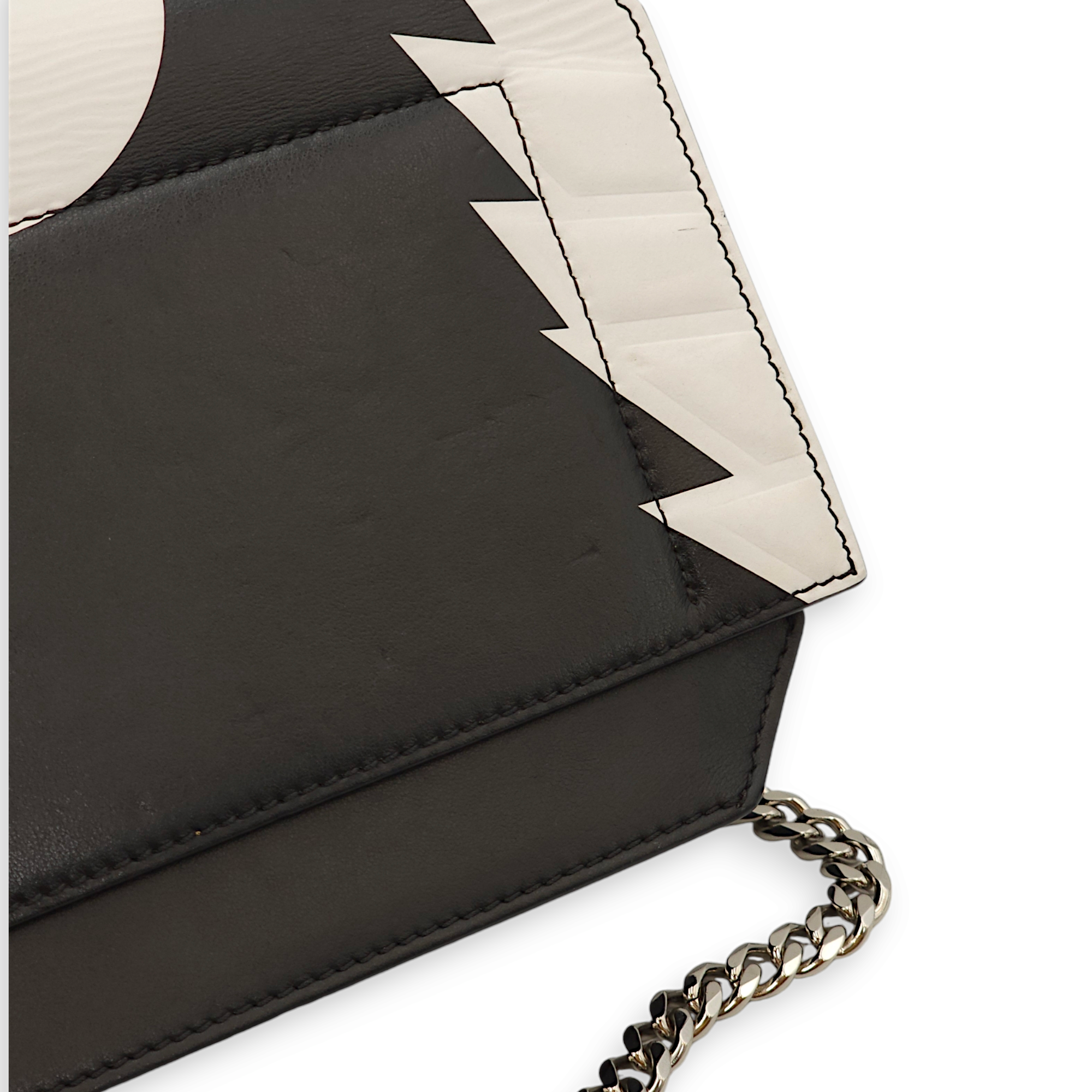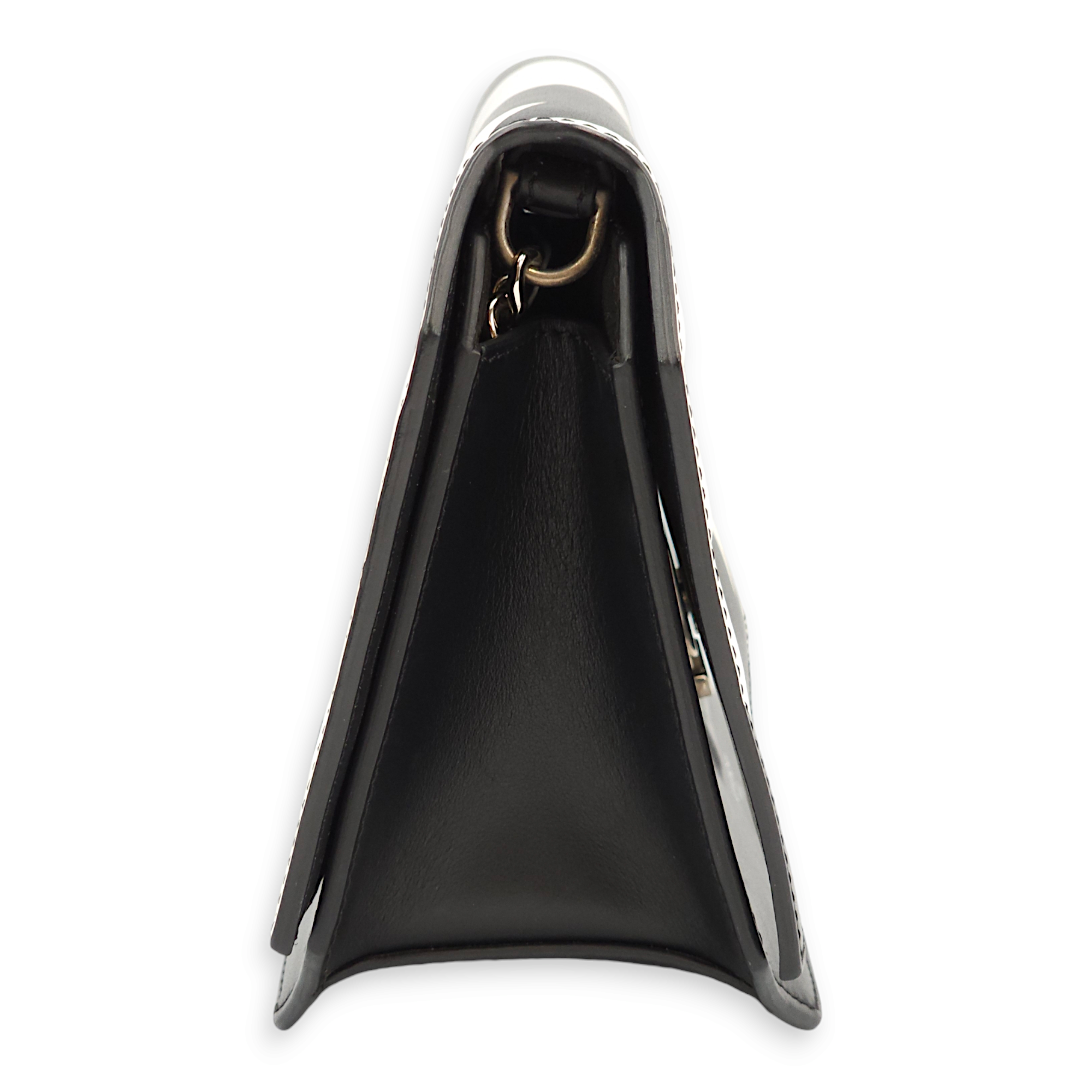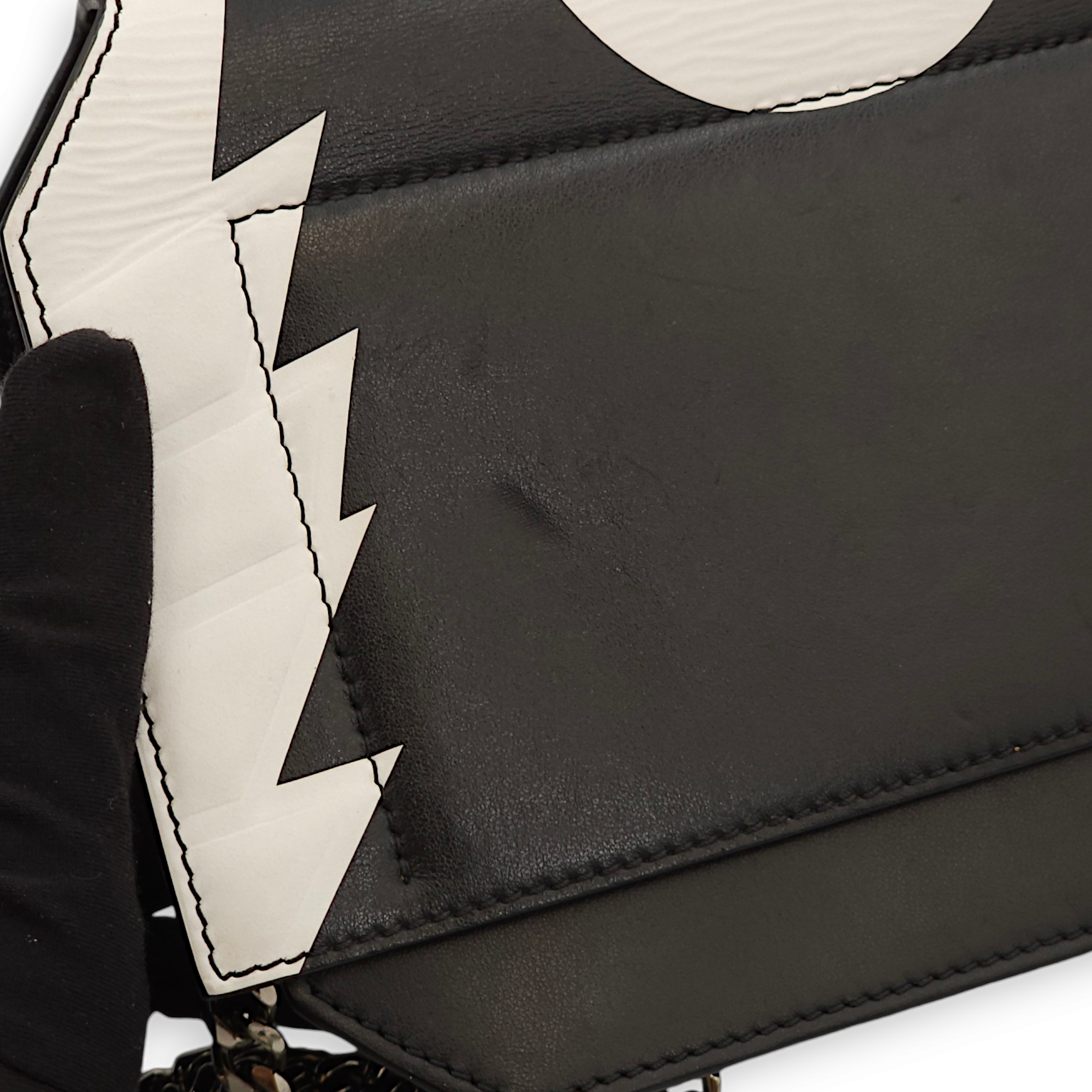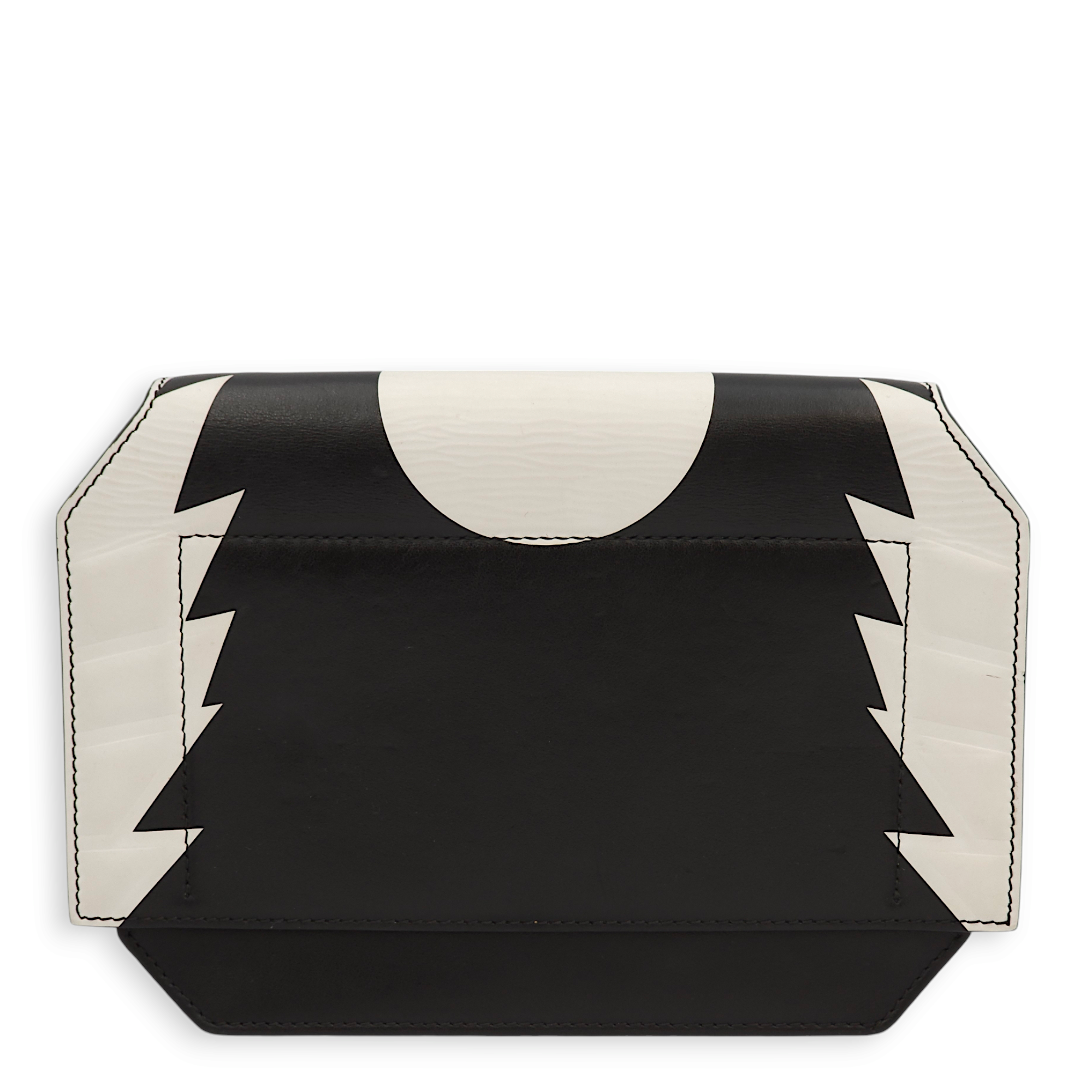 Stars Wings Print Bow Cut Black/White Crossbody Bag in Calfskin, Palladium hardware