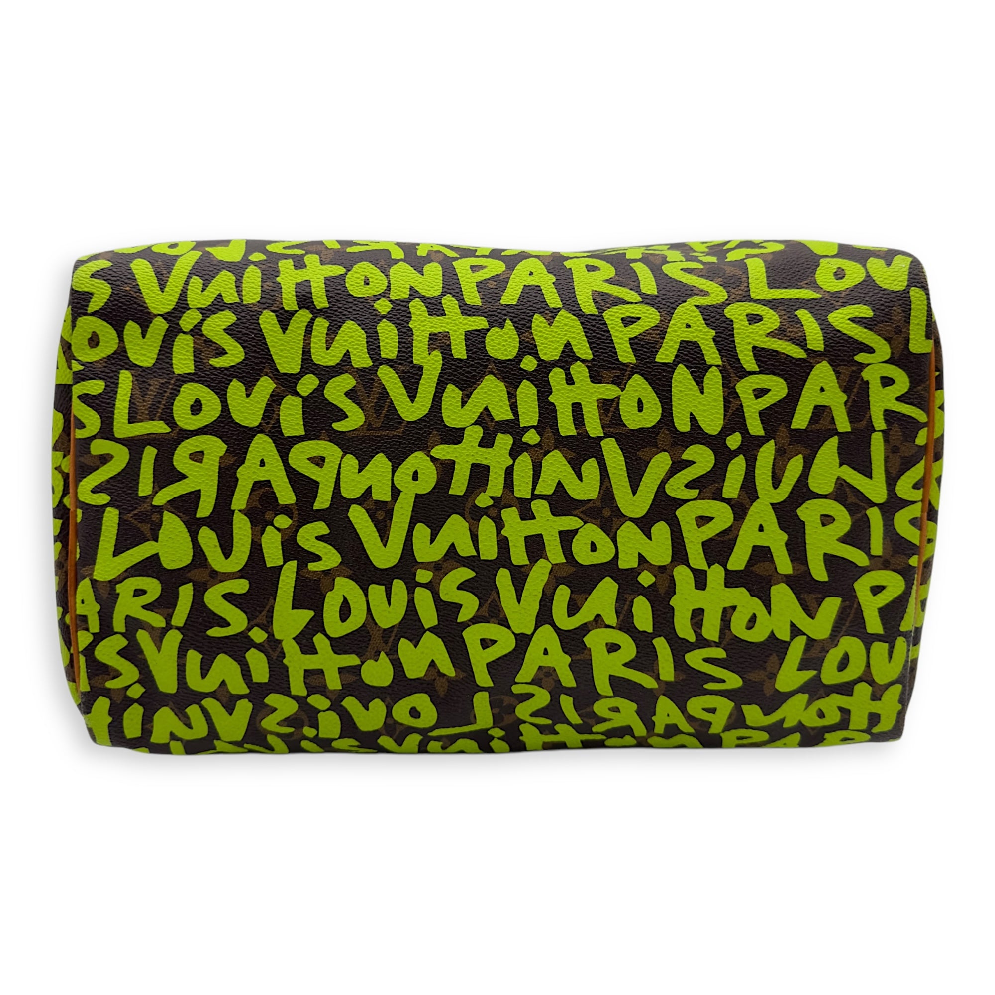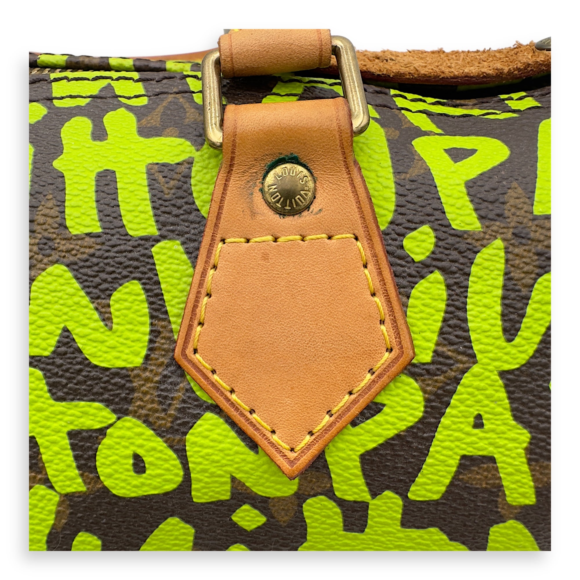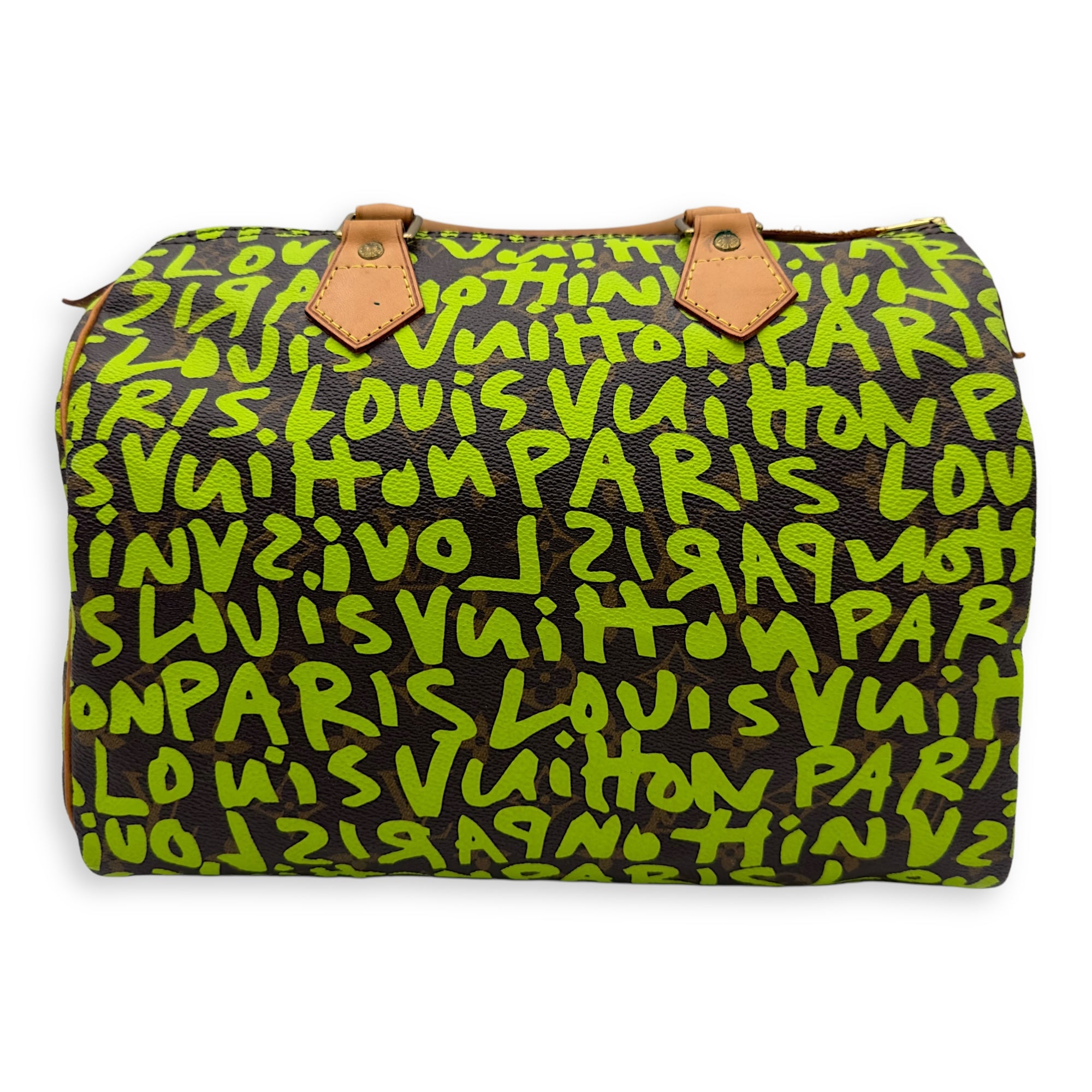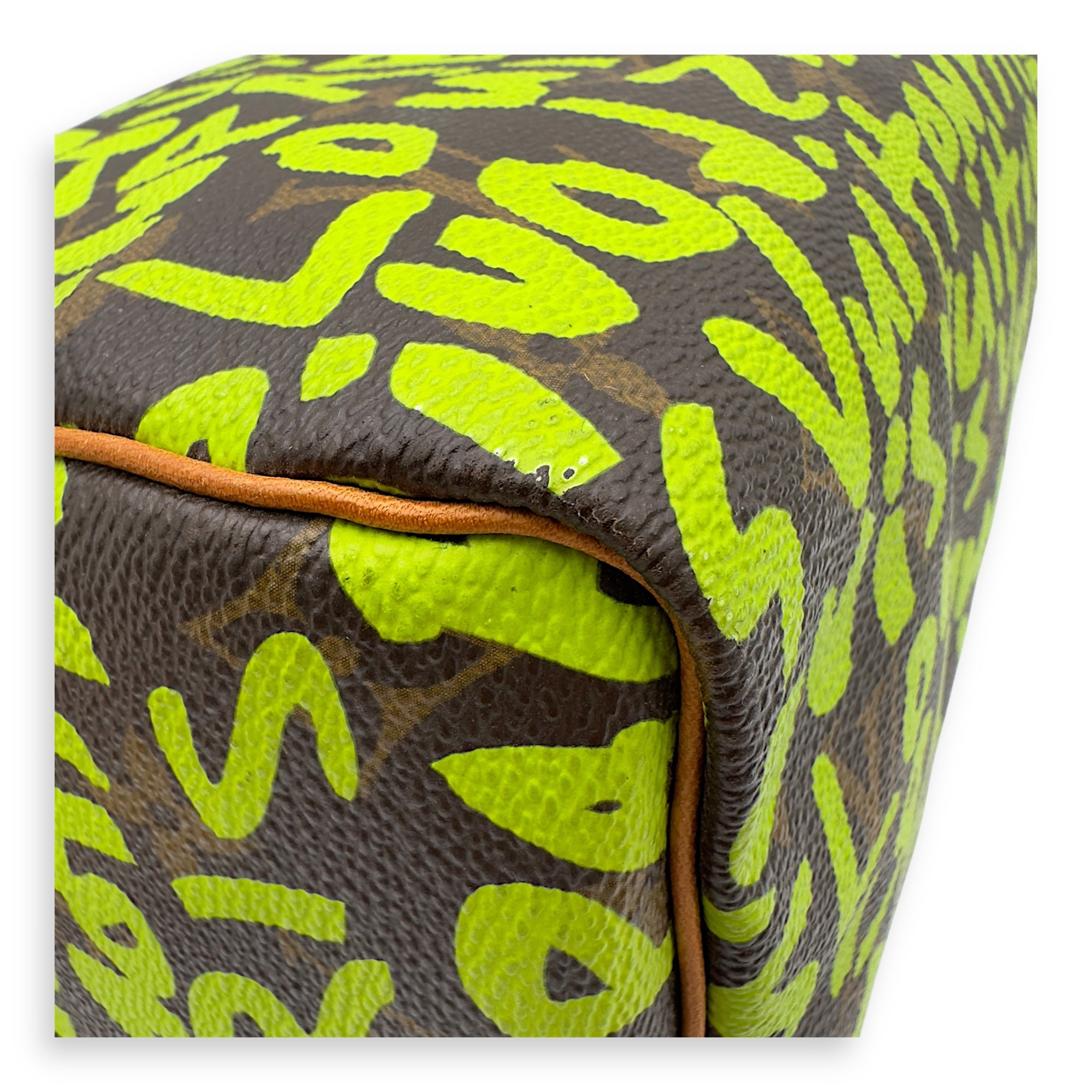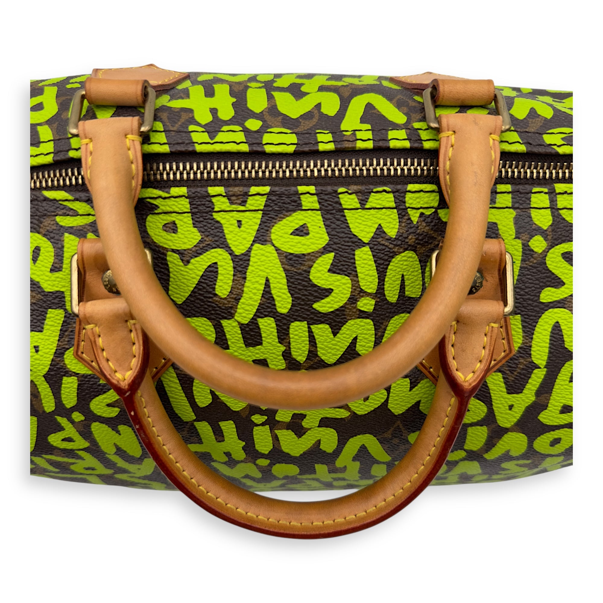 Stephen Sprouse Speedy 30 Green Top Handle Bag in Monogram Coated Canvas, Gold hardware