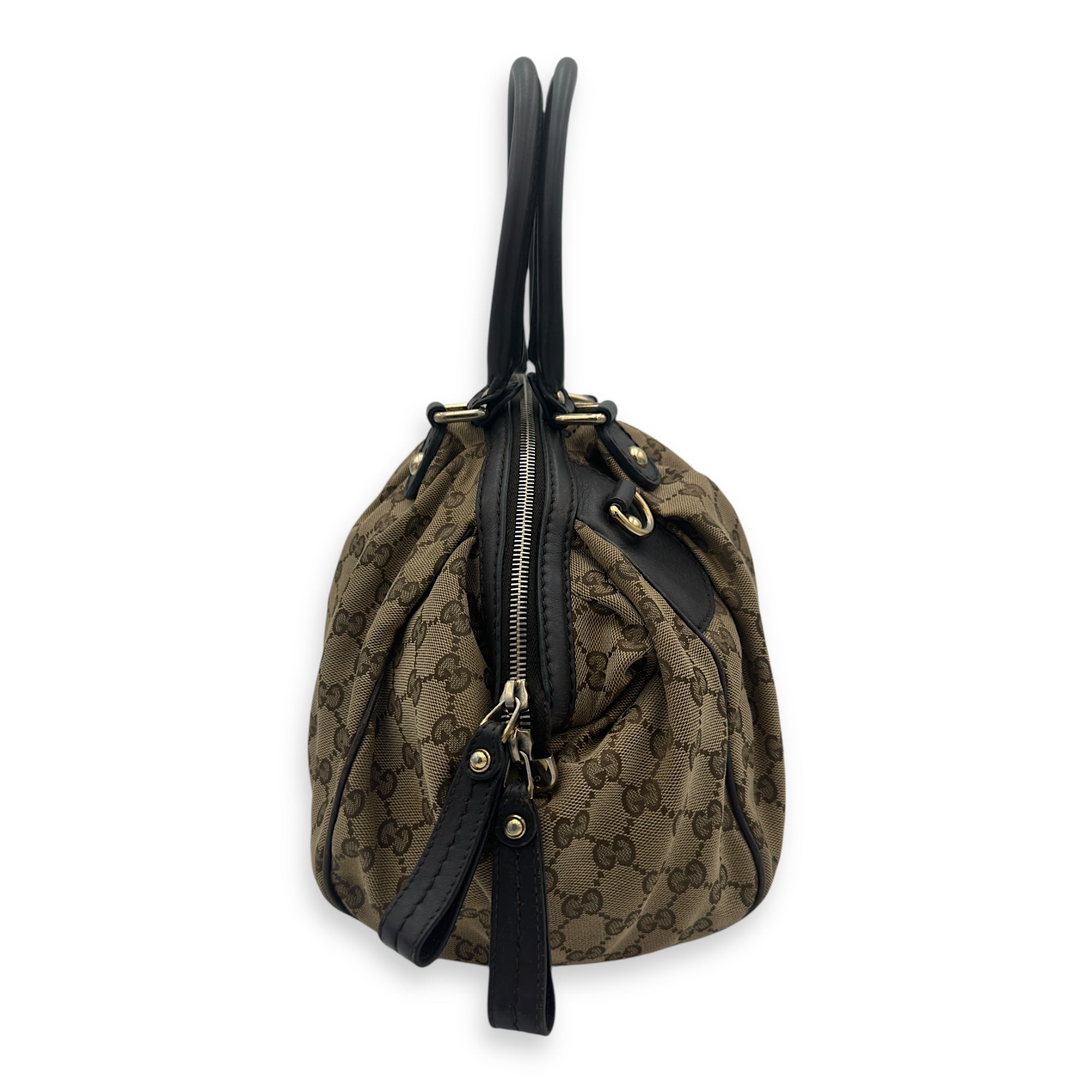 Bags Gucci Sukey Top Handle Bag Brown in Canvas, Gold hardware Good Condition Brown Top Handle Bag Women Lady Girl