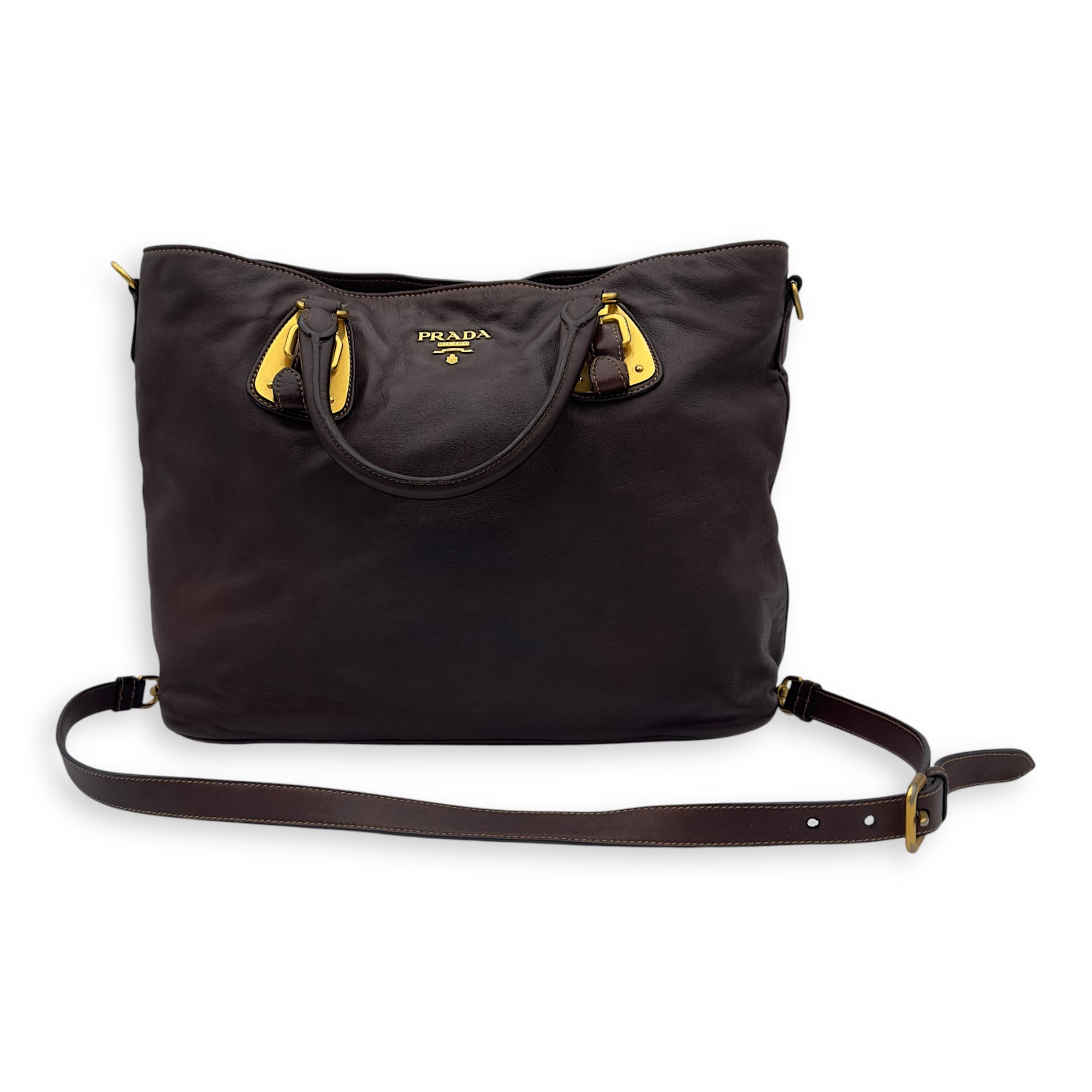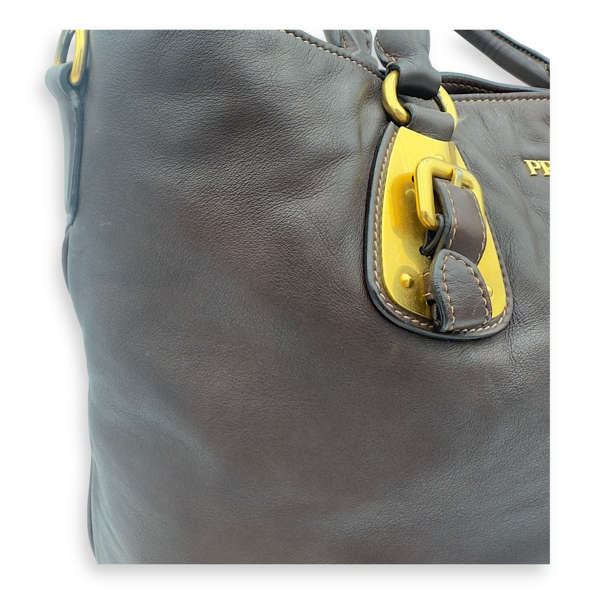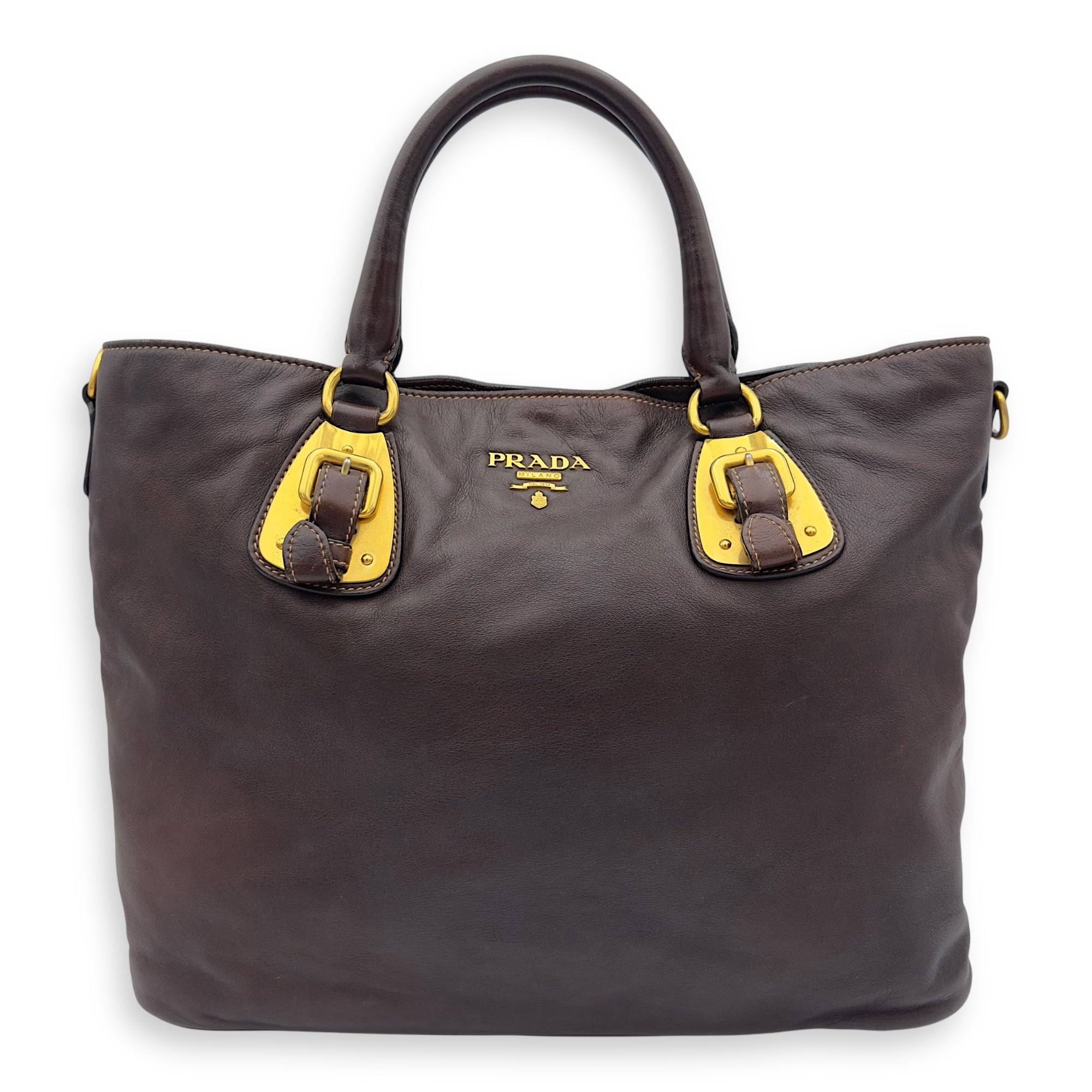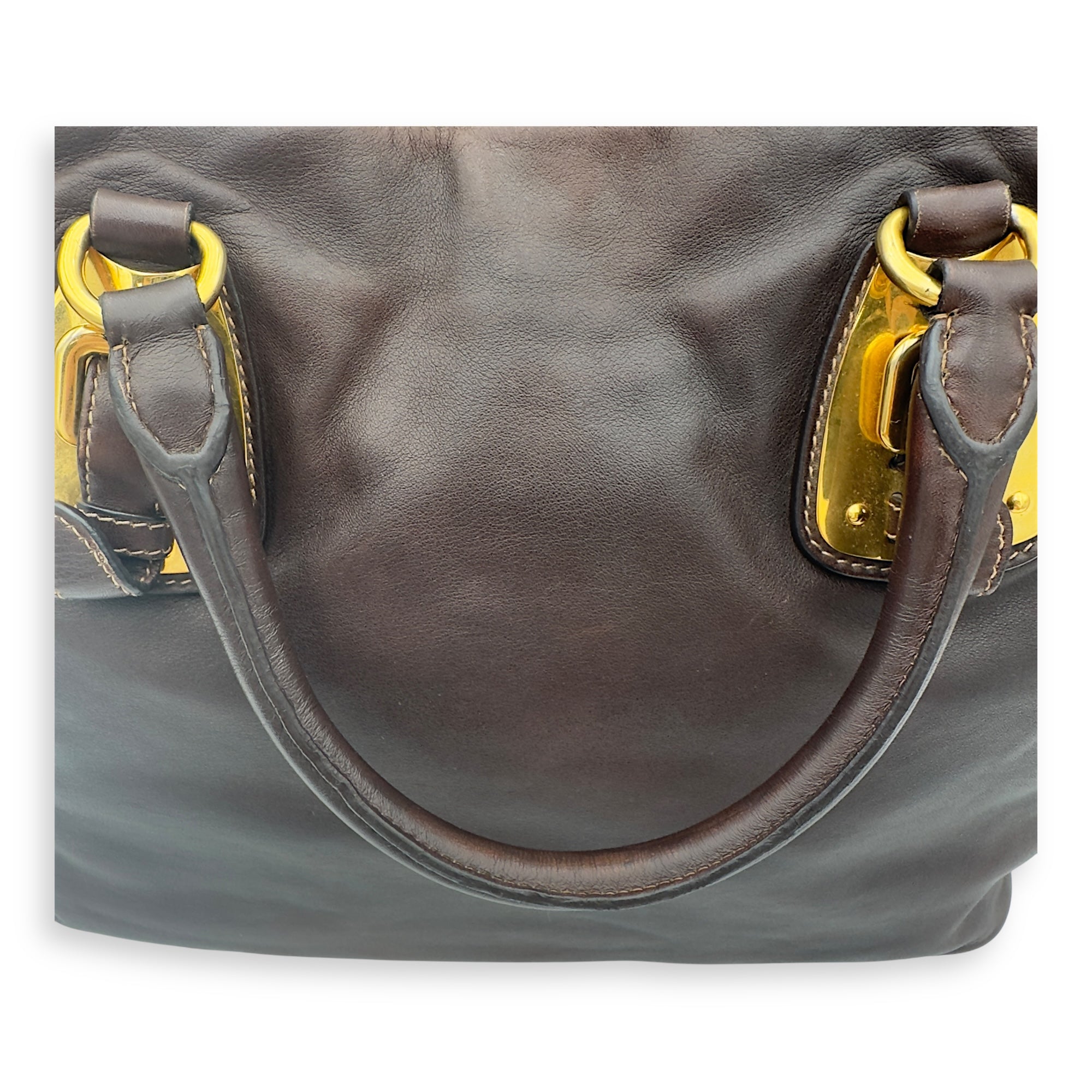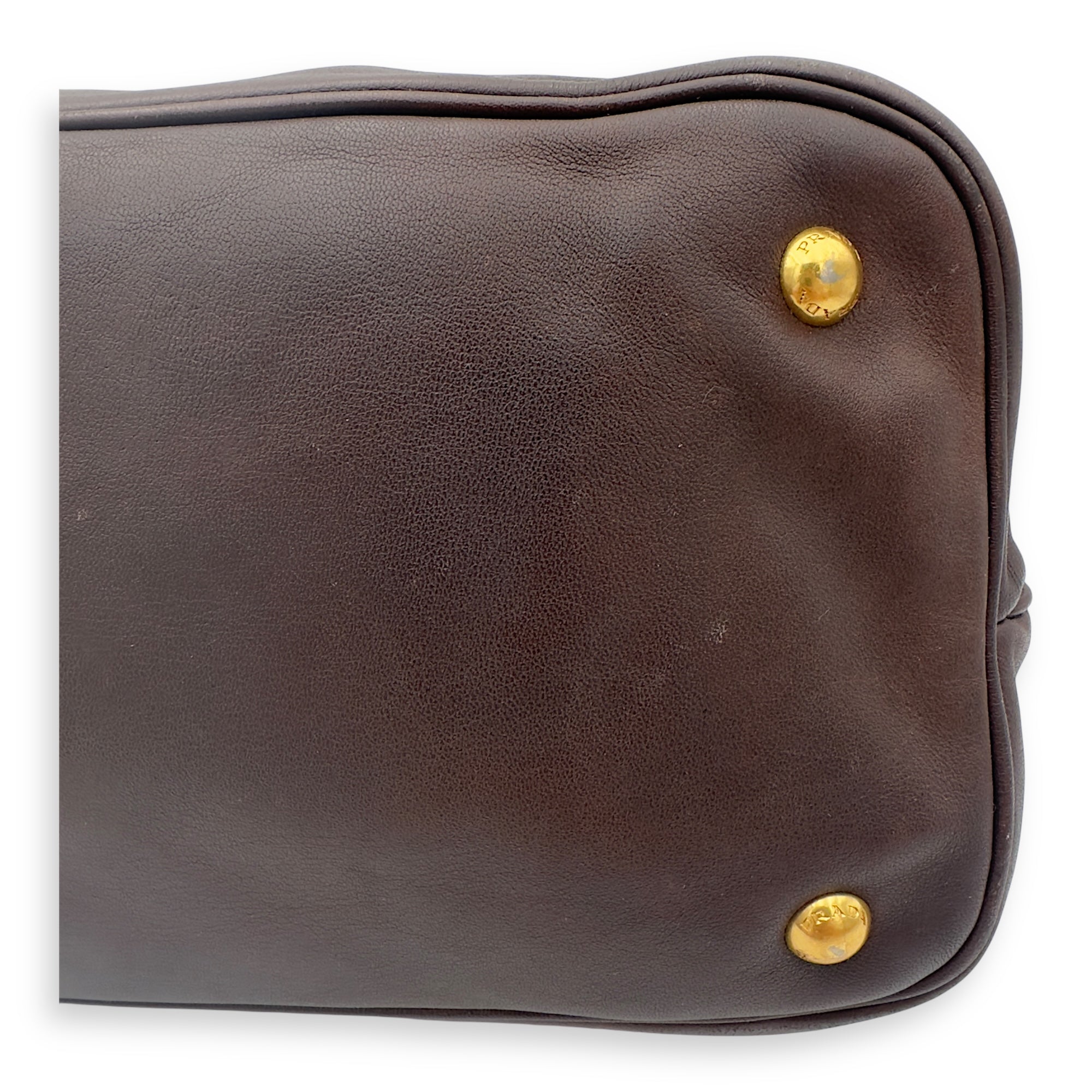 Bags Prada Logo Brown Top Handle Bag in Calfskin, Gold hardware Good Condition Brown Top Handle Bag Women Lady Girl