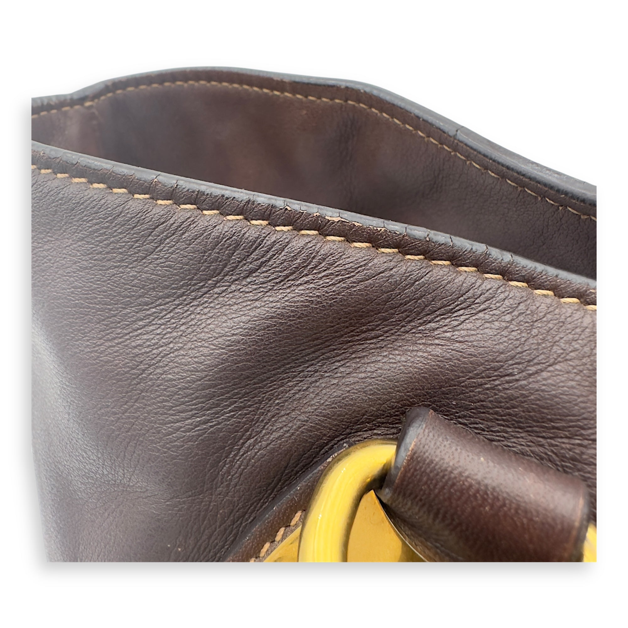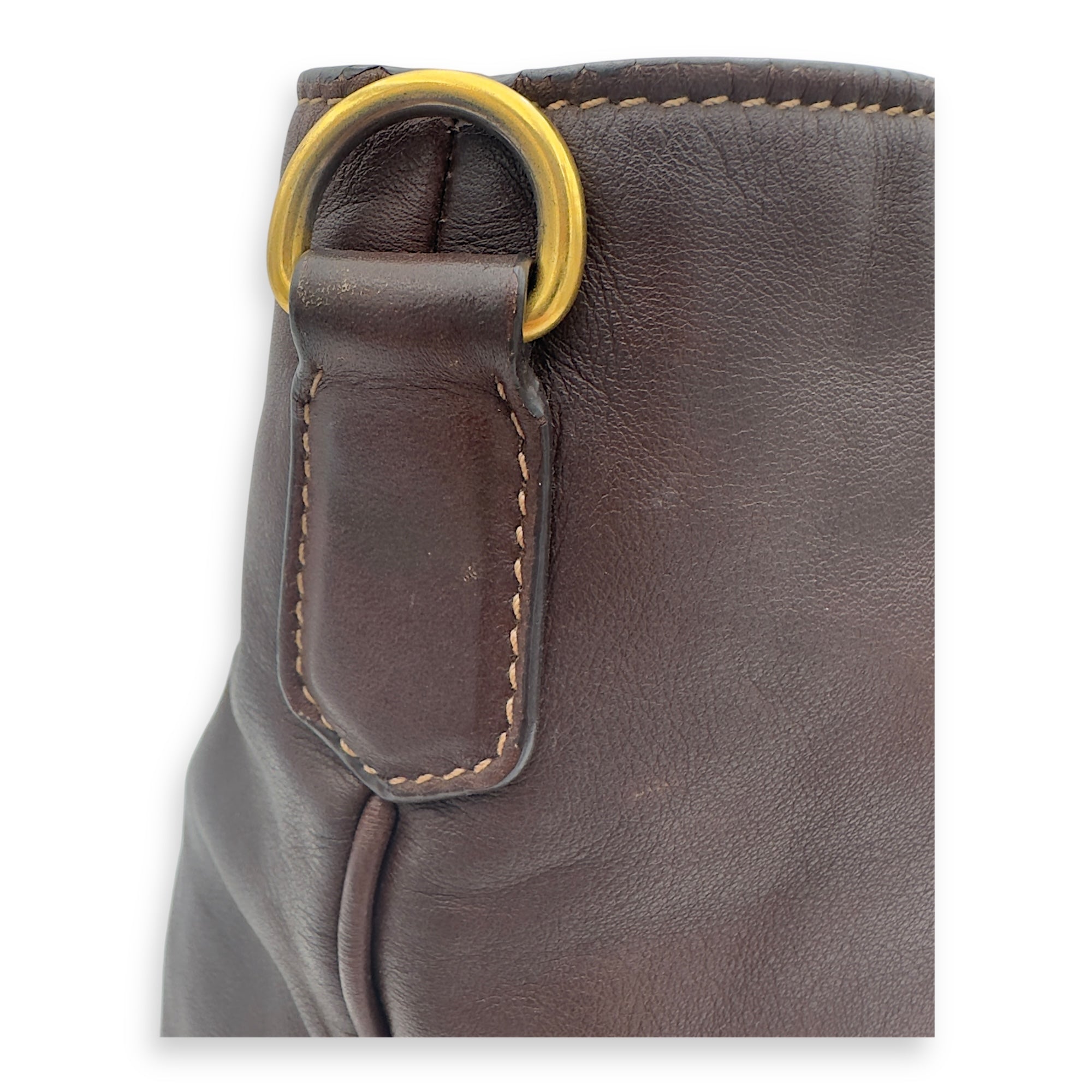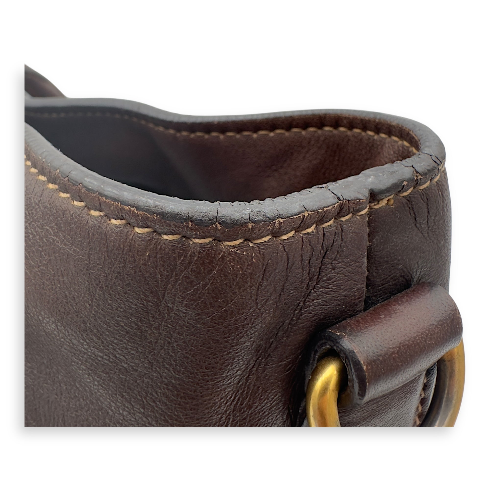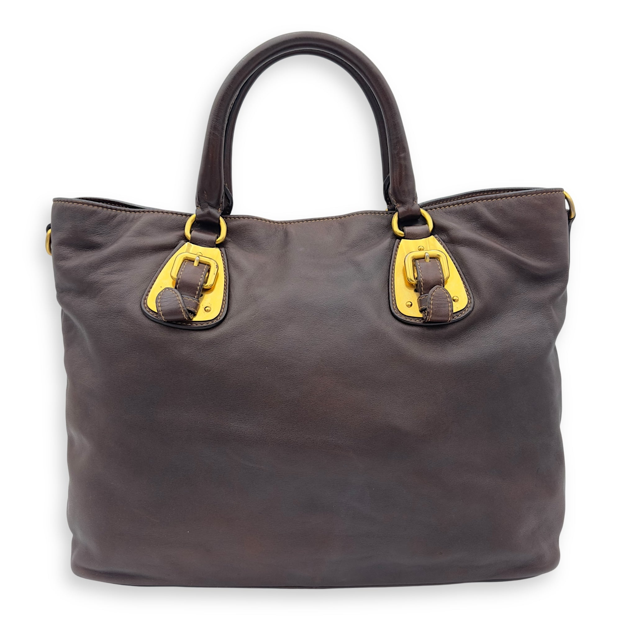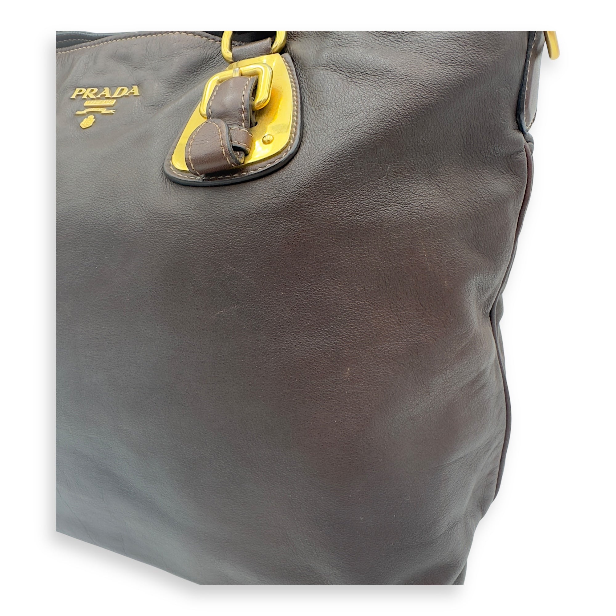 Bags Prada Logo Brown Top Handle Bag in Calfskin, Gold hardware Good Condition Brown Top Handle Bag Women Lady Girl