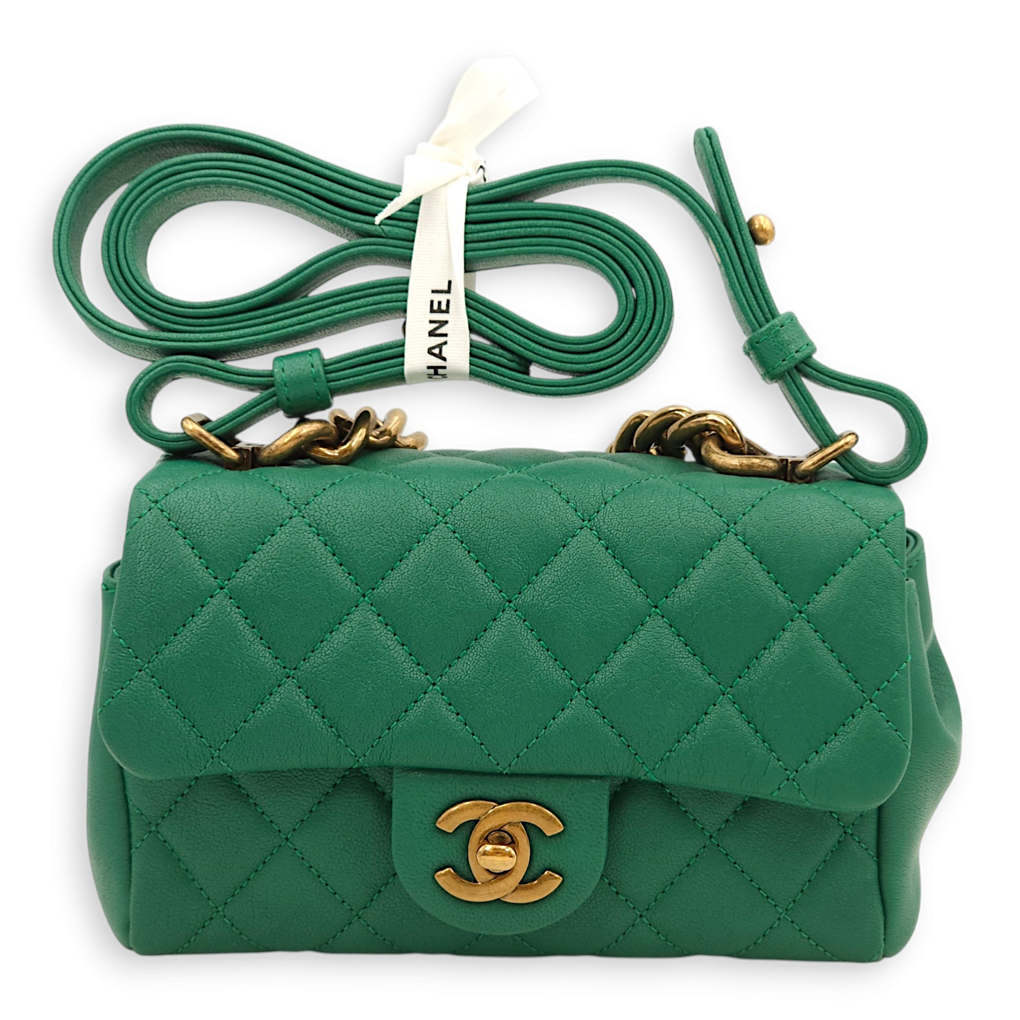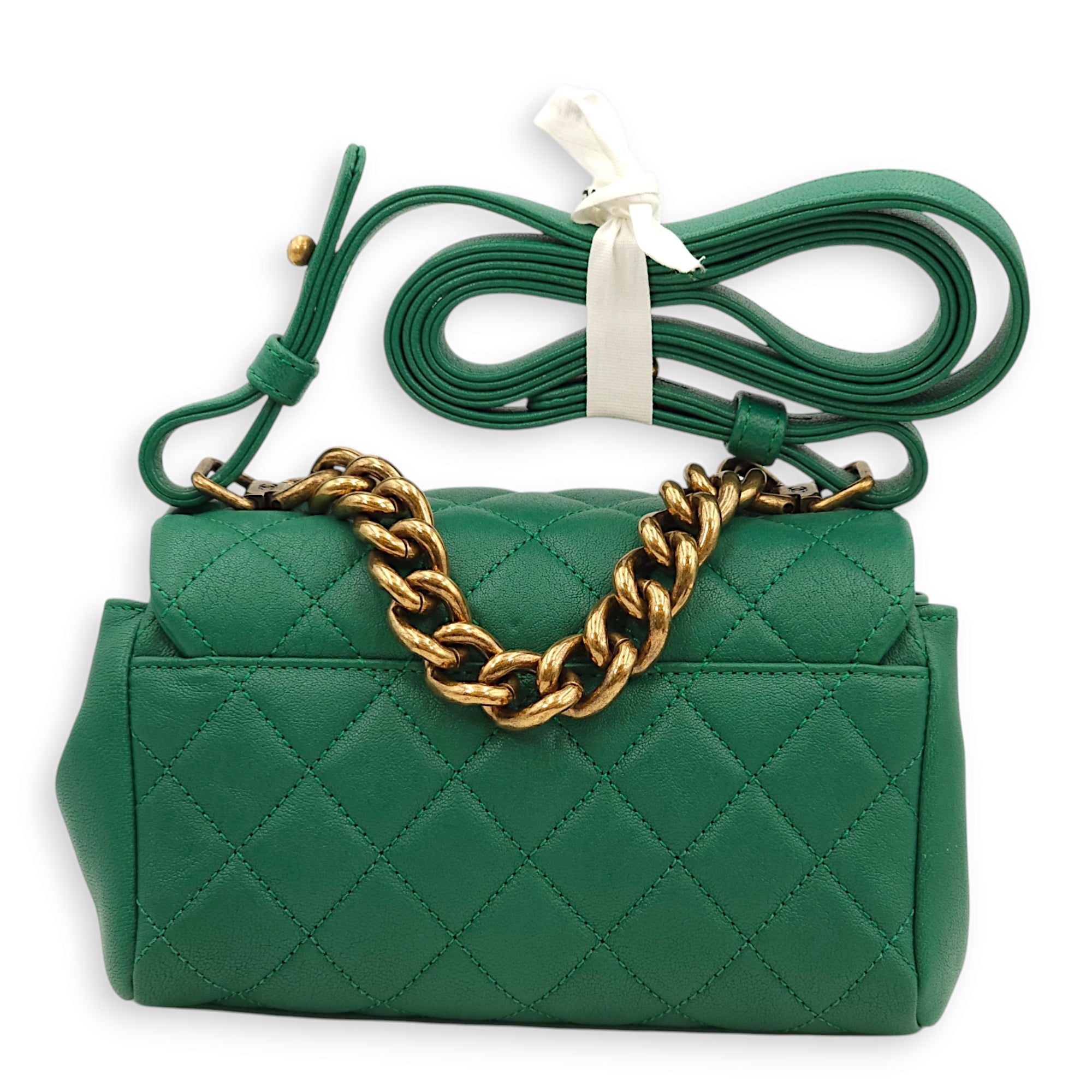 Chanel Trapezio Flap Green Crossbody Bag in Chevre Leather, Gold hardware Bags Crossbody Bag Green Good Condition