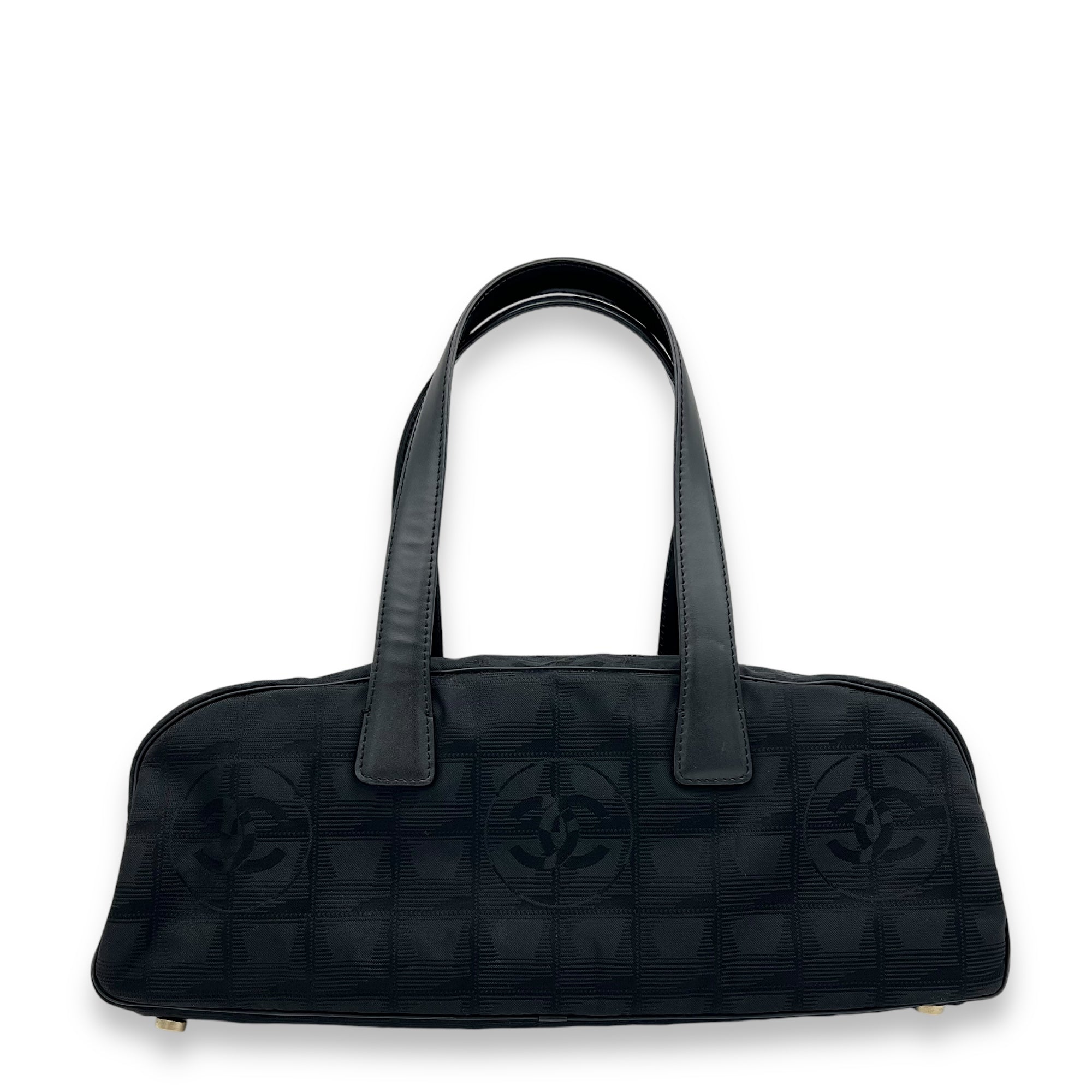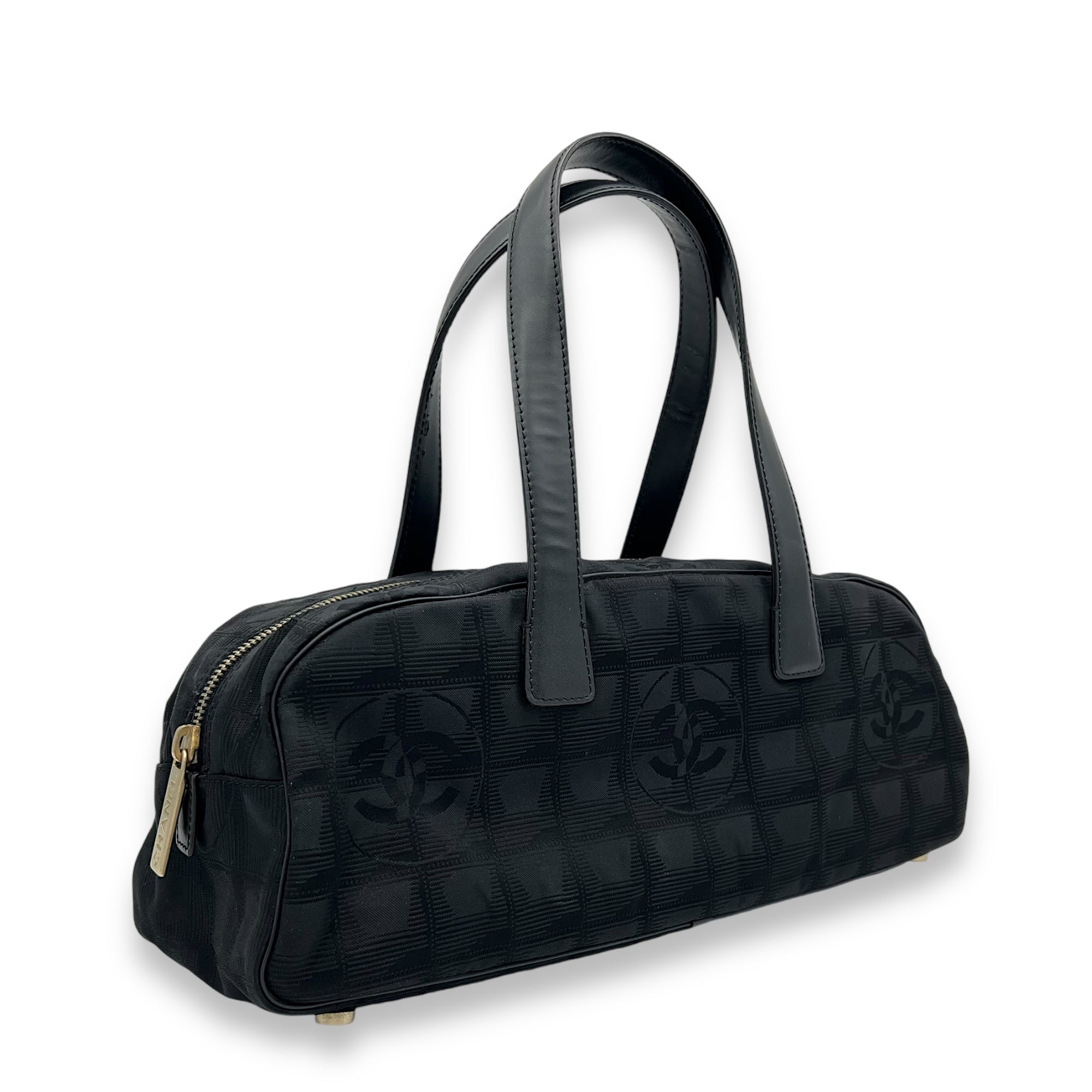 Bags Chanel Travel Line Boston Black Top Handle Bag in Canvas, Gold hardware Good Condition Black Top Handle Bag Women Lady Girl