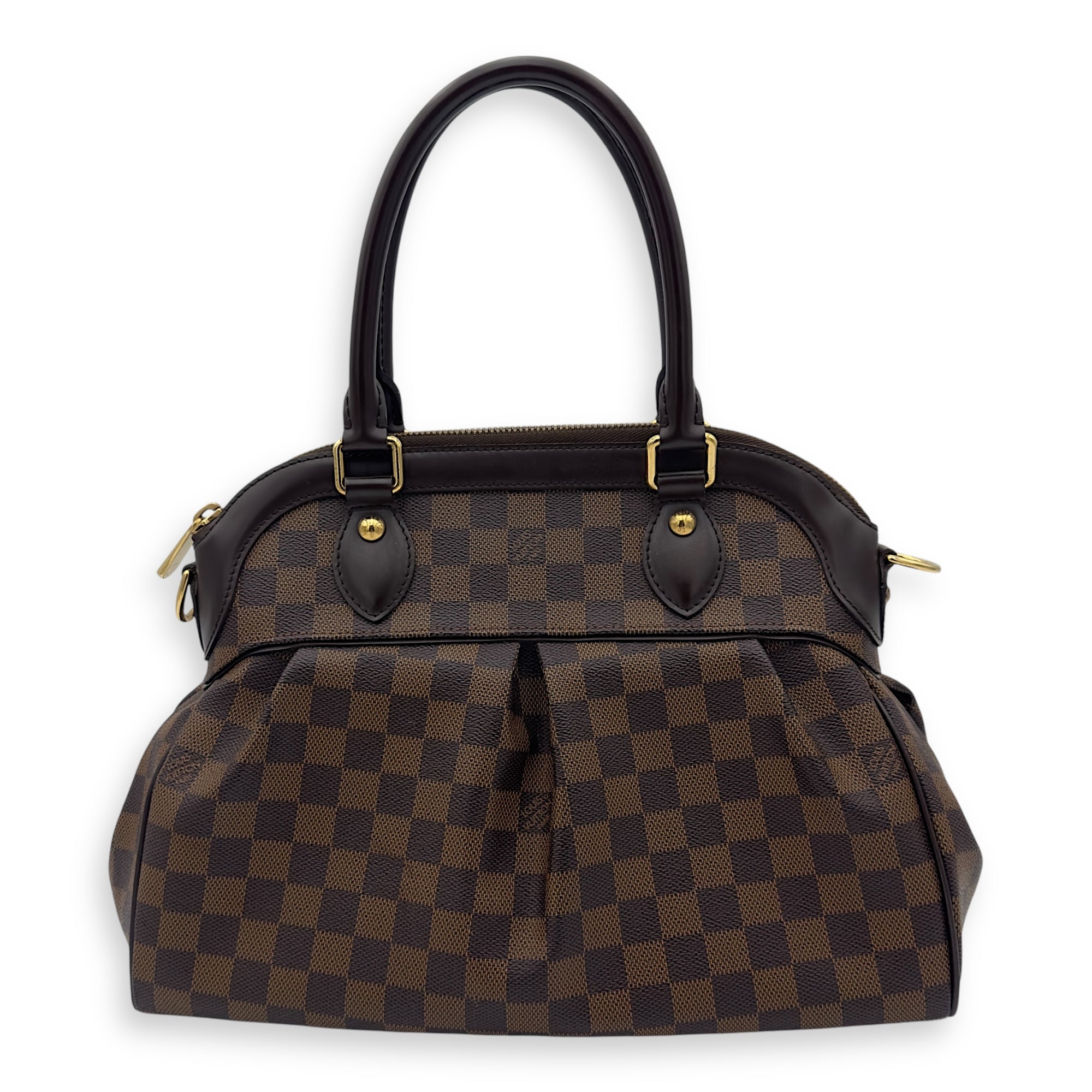 Bags Louis Vuitton Trevi PM Damier ebene Top Handle Bag in Coated Canvas, Gold hardware Good Condition Damier ebene Brown Top Handle Bag Women Lady Girl