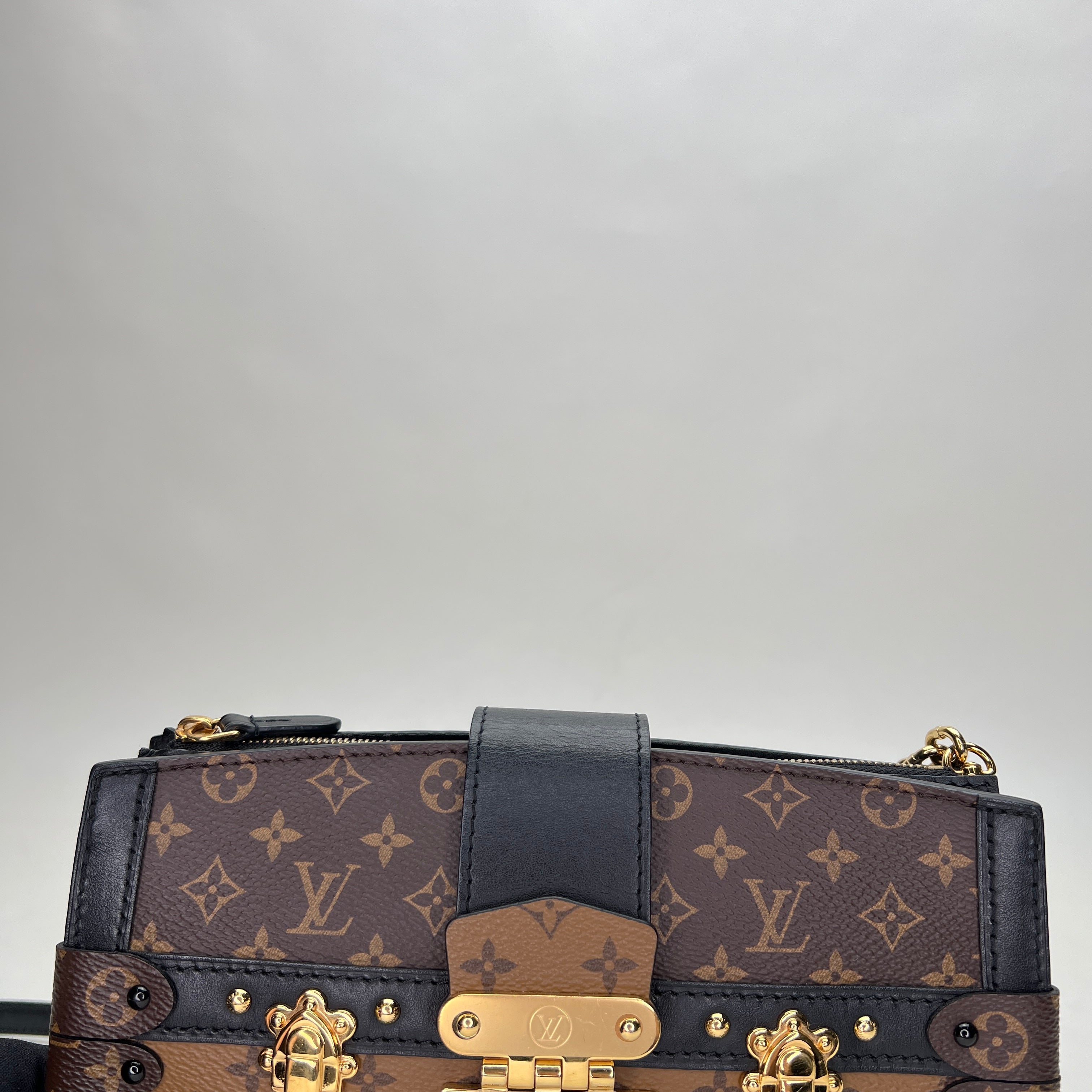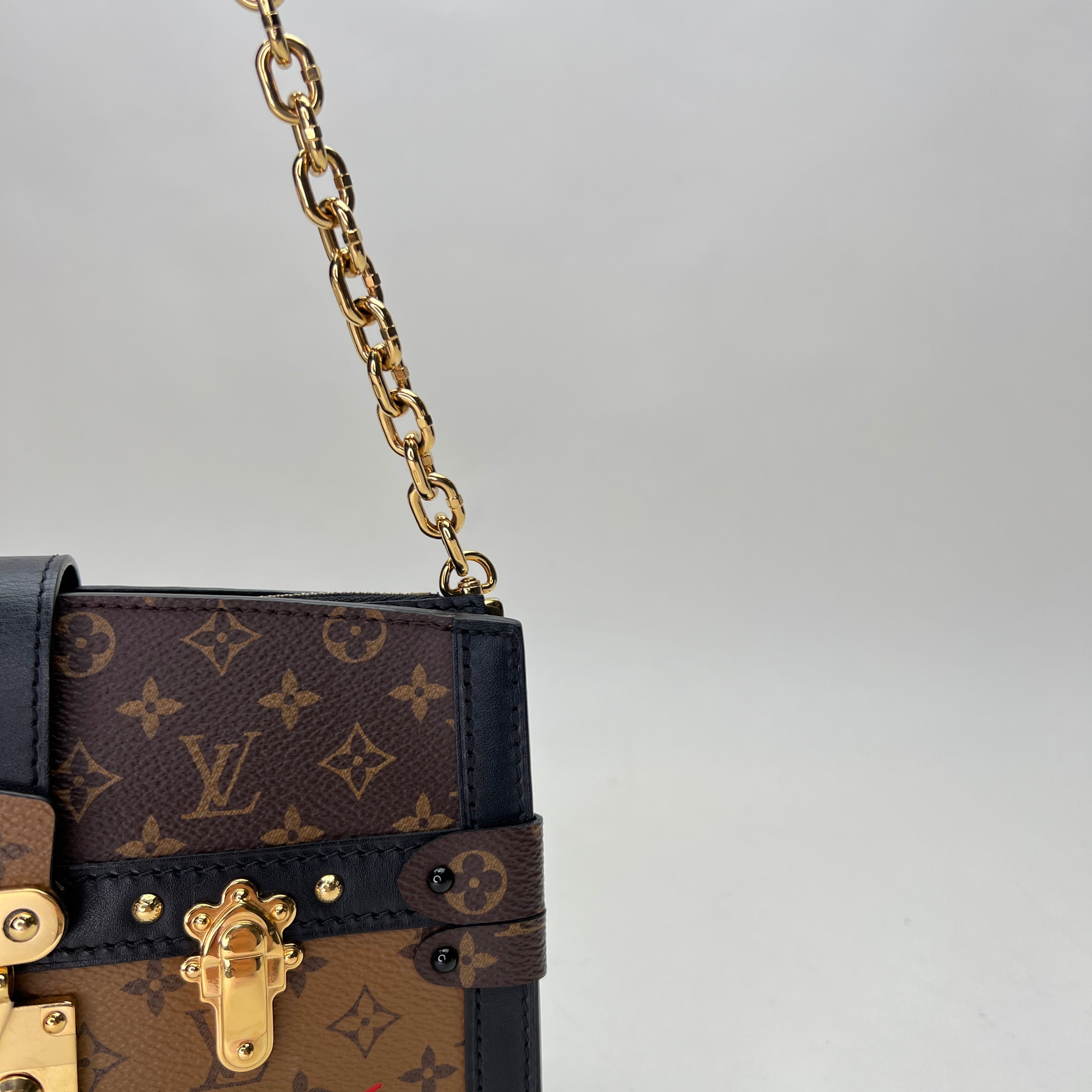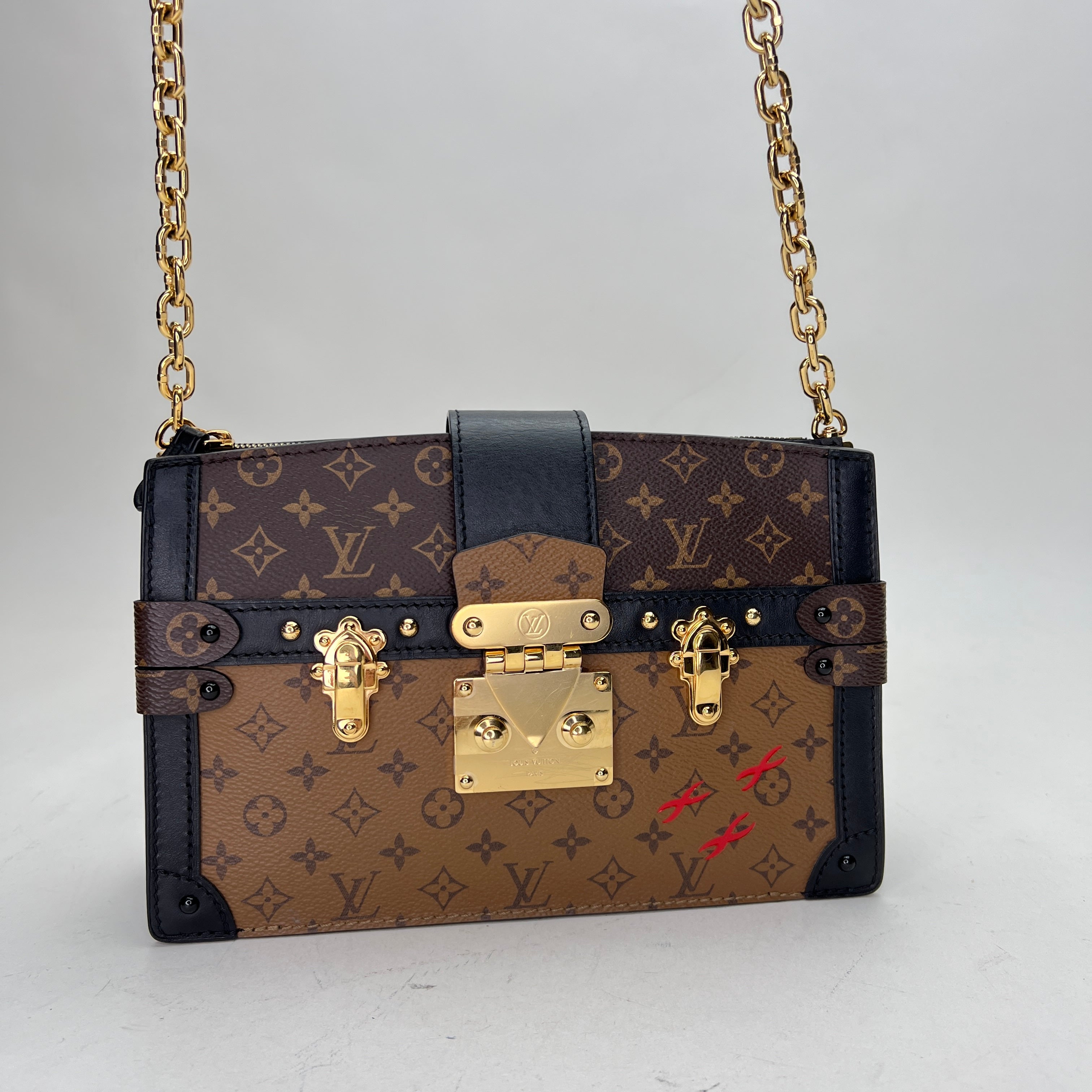 Louis Vuitton Trunk Reverse Brown Clutch in Monogram Coated Canvas, Gold hardware Small Leather Goods Clutch Brown Good Condition MEN UNISEX