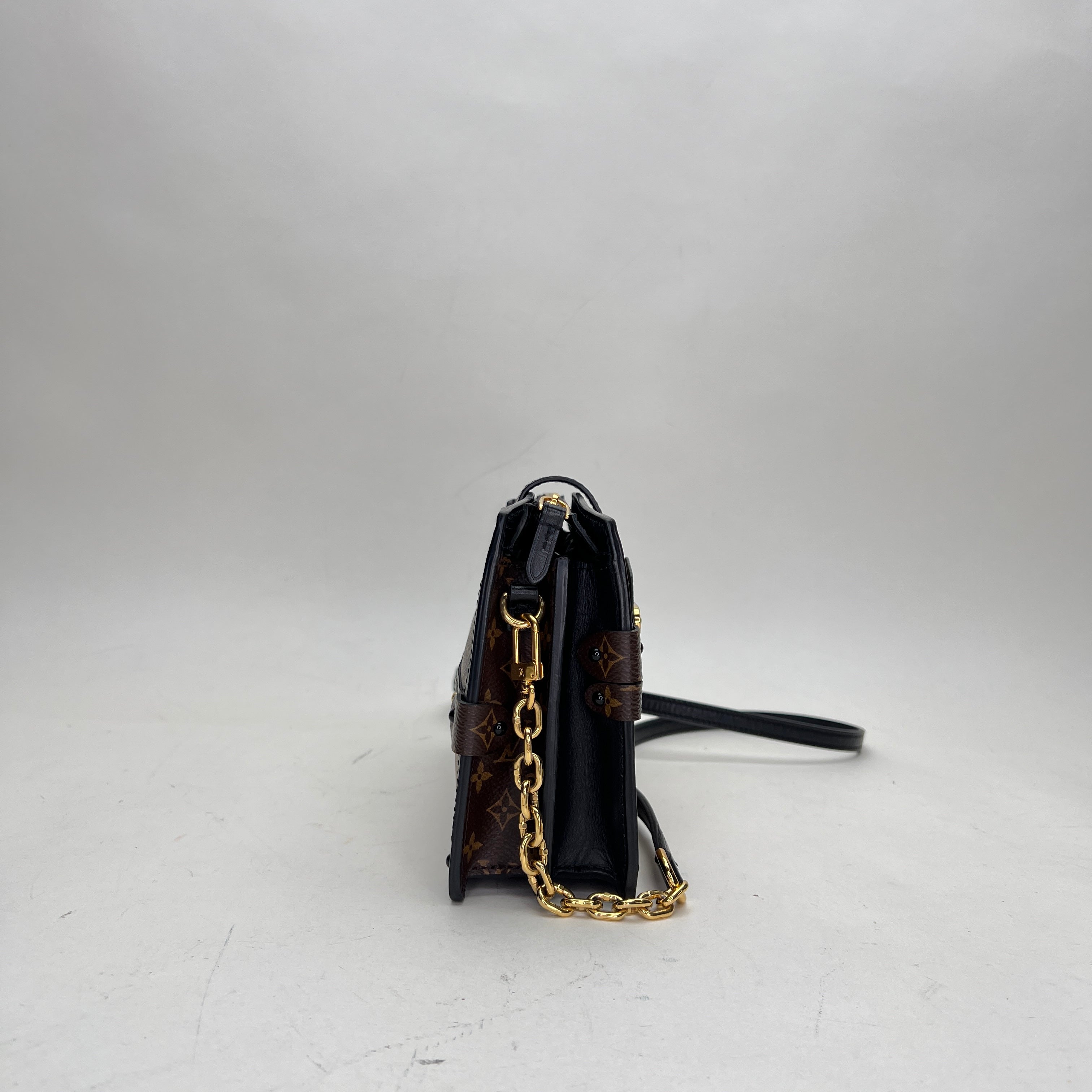 Trunk Reverse Brown Clutch in Monogram Coated Canvas, Gold hardware
