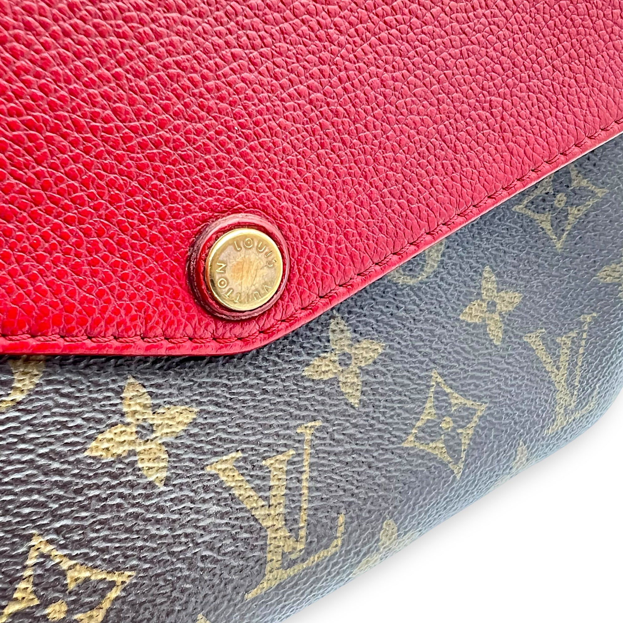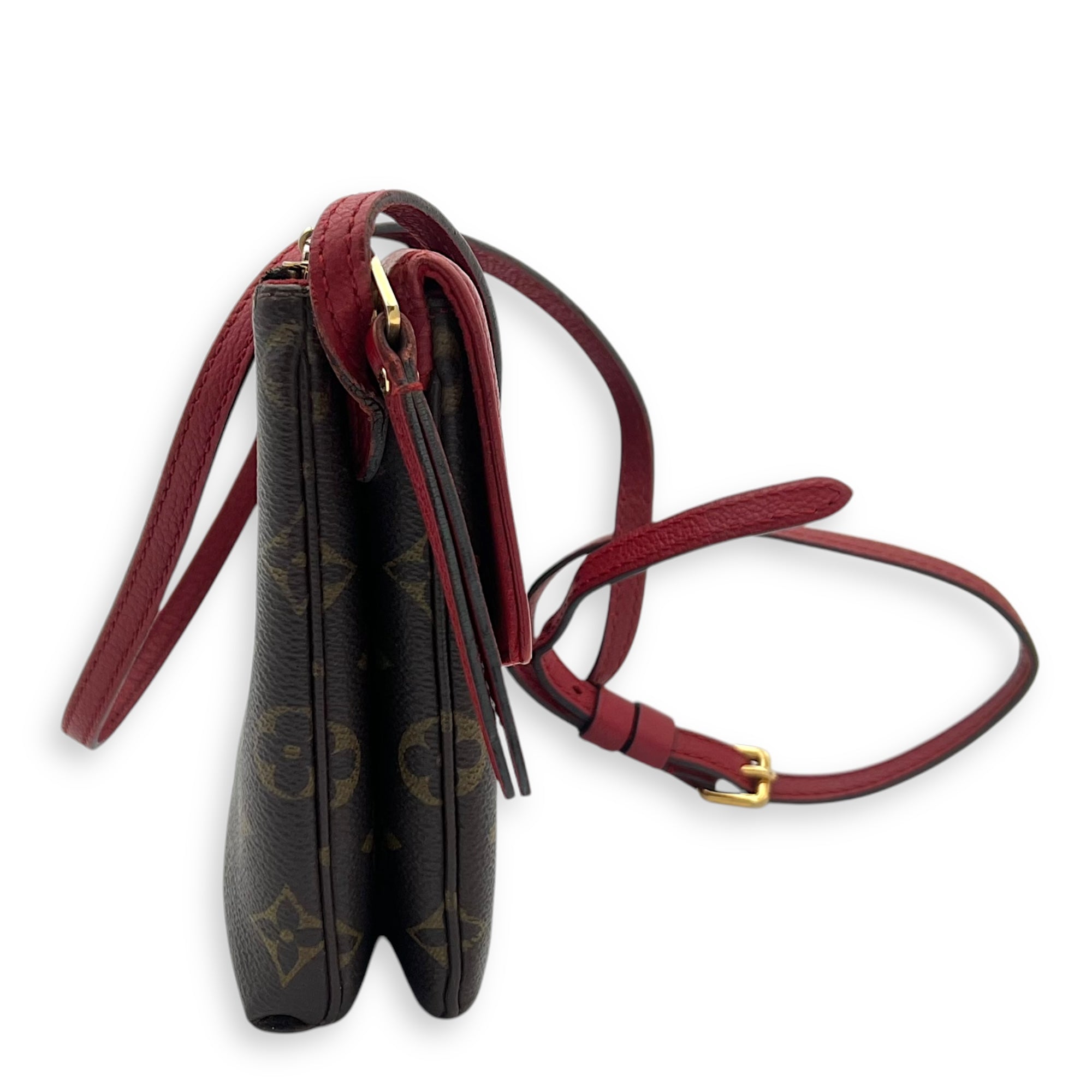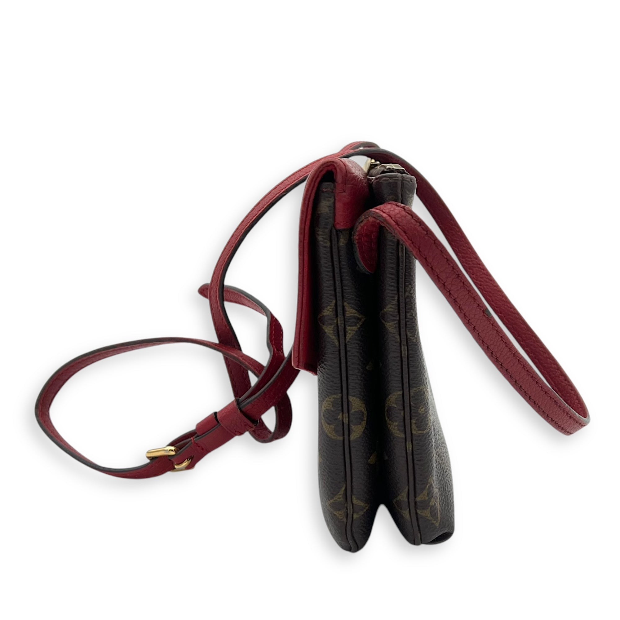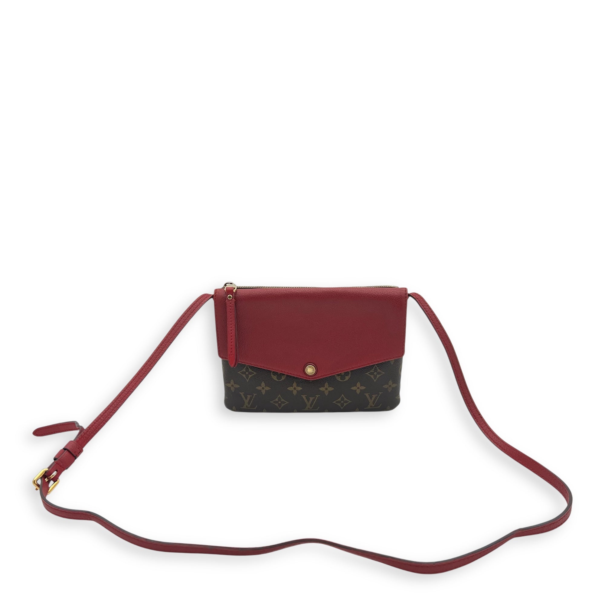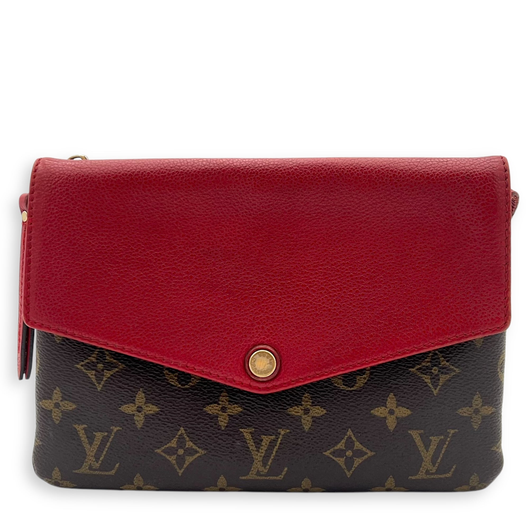 Bags Louis Vuitton Twice Crossbody Bag Small Red in Monogram Coated Canvas, Gold hardware Good Condition Red Brown Crossbody Bag Women Lady Girl