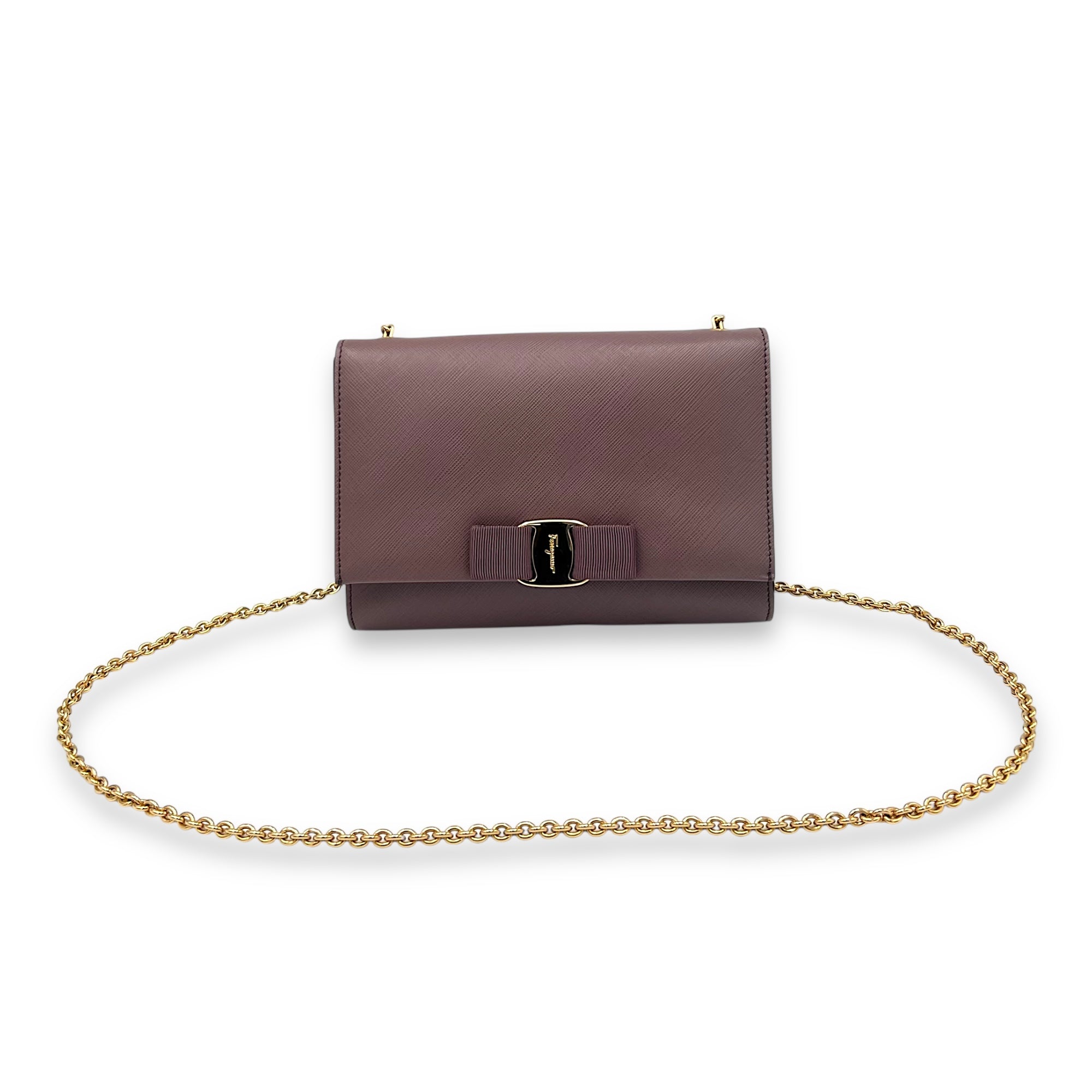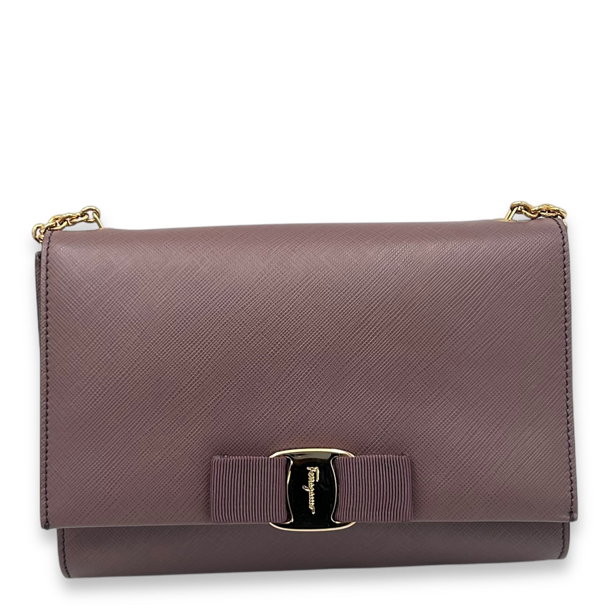 Bags Salvatore Ferragamo Vara Bow Shoulder Bag Purple in Calfskin, Gold hardware Purple Shoulder Bag Women Lady Girl