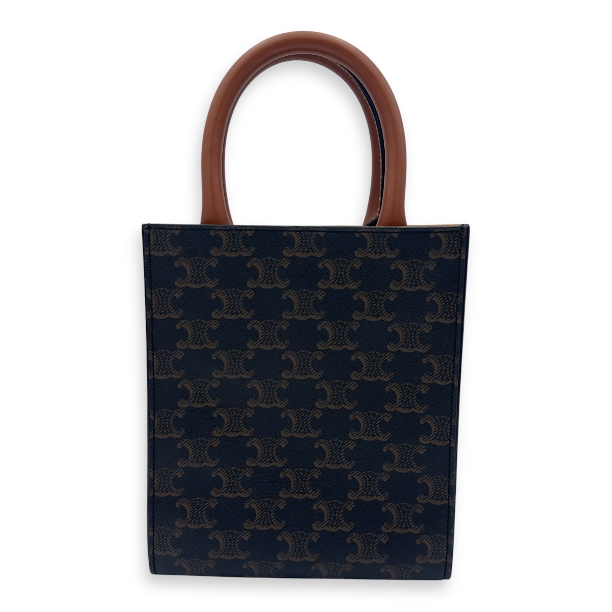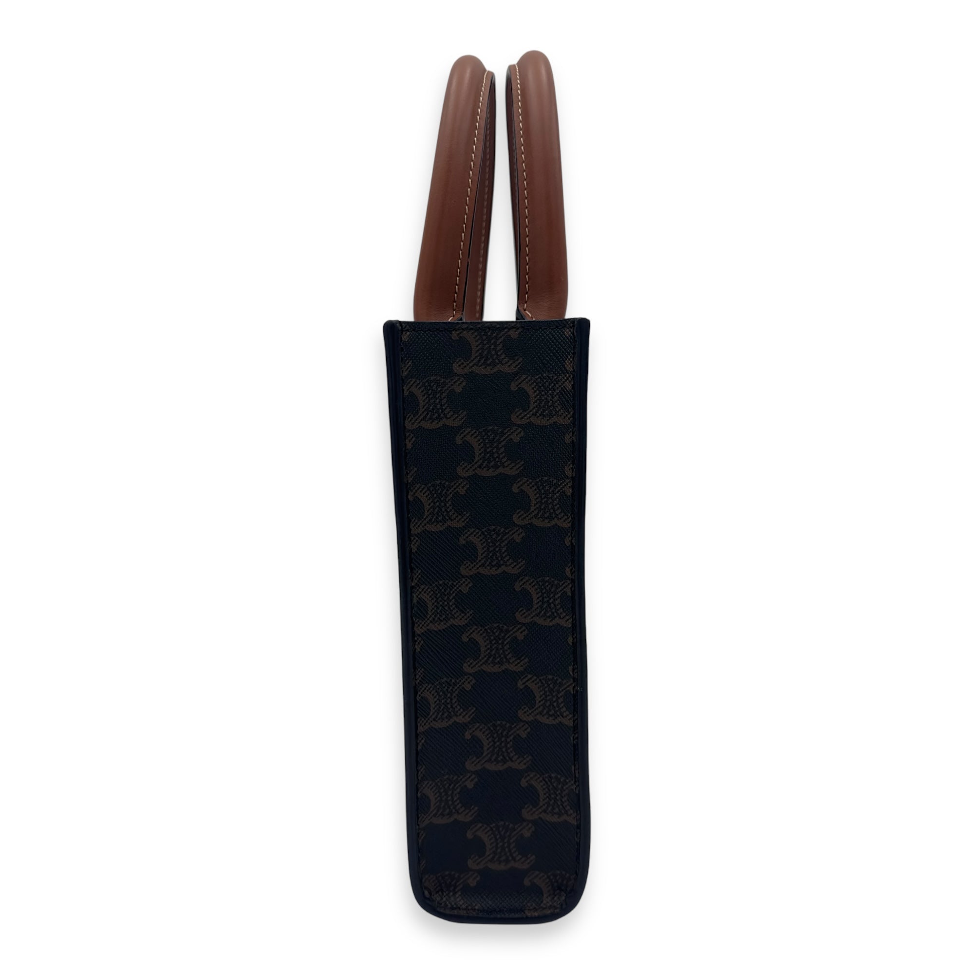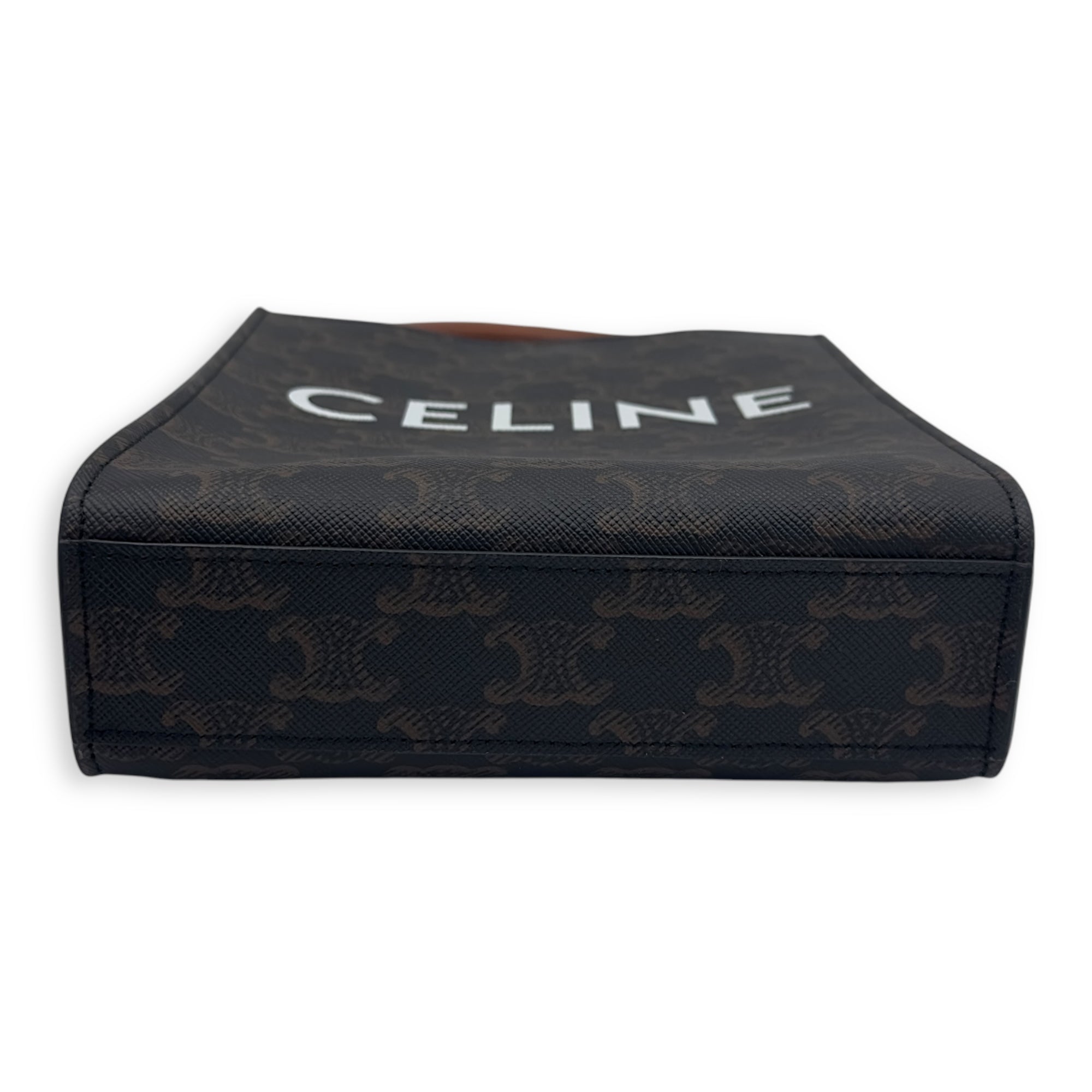 Bags Celine Vertical Cabas Mini Shoulder bag in Coated canvas, Gold Hardware Good Condition Brown Shoulder Bag Women Lady Girl