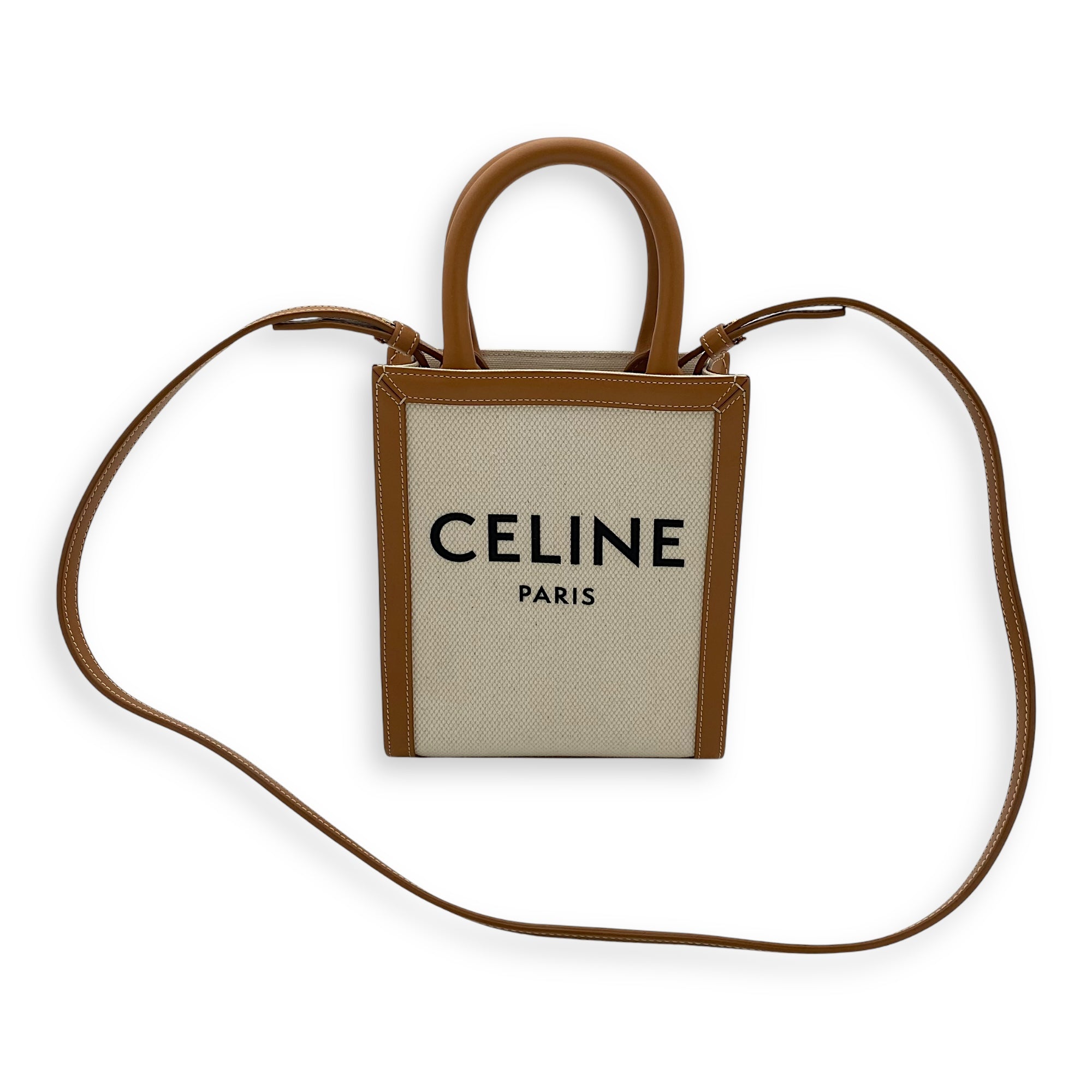 Bags Celine Vertical Mini Brown Top Handle Bag in Canvas, Gold hardware Very Good Condition Brown Top Handle Bag Women Lady Girl