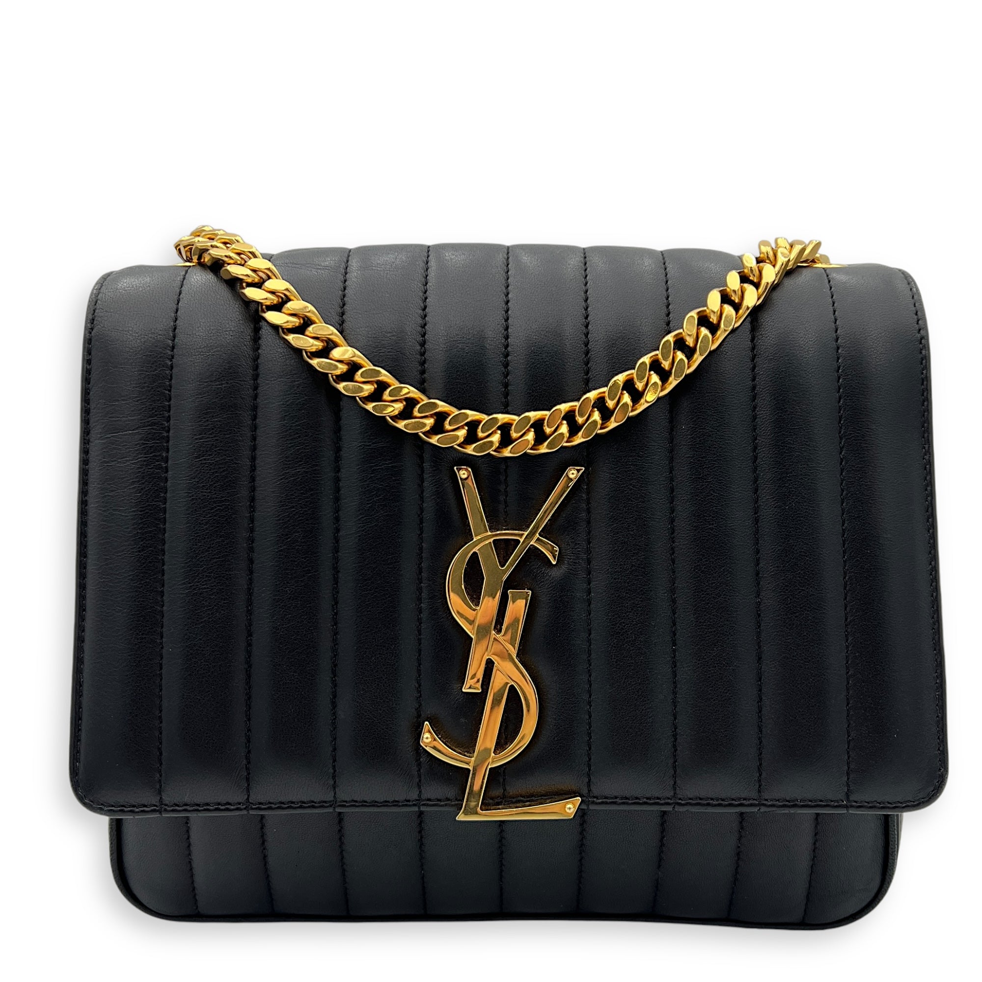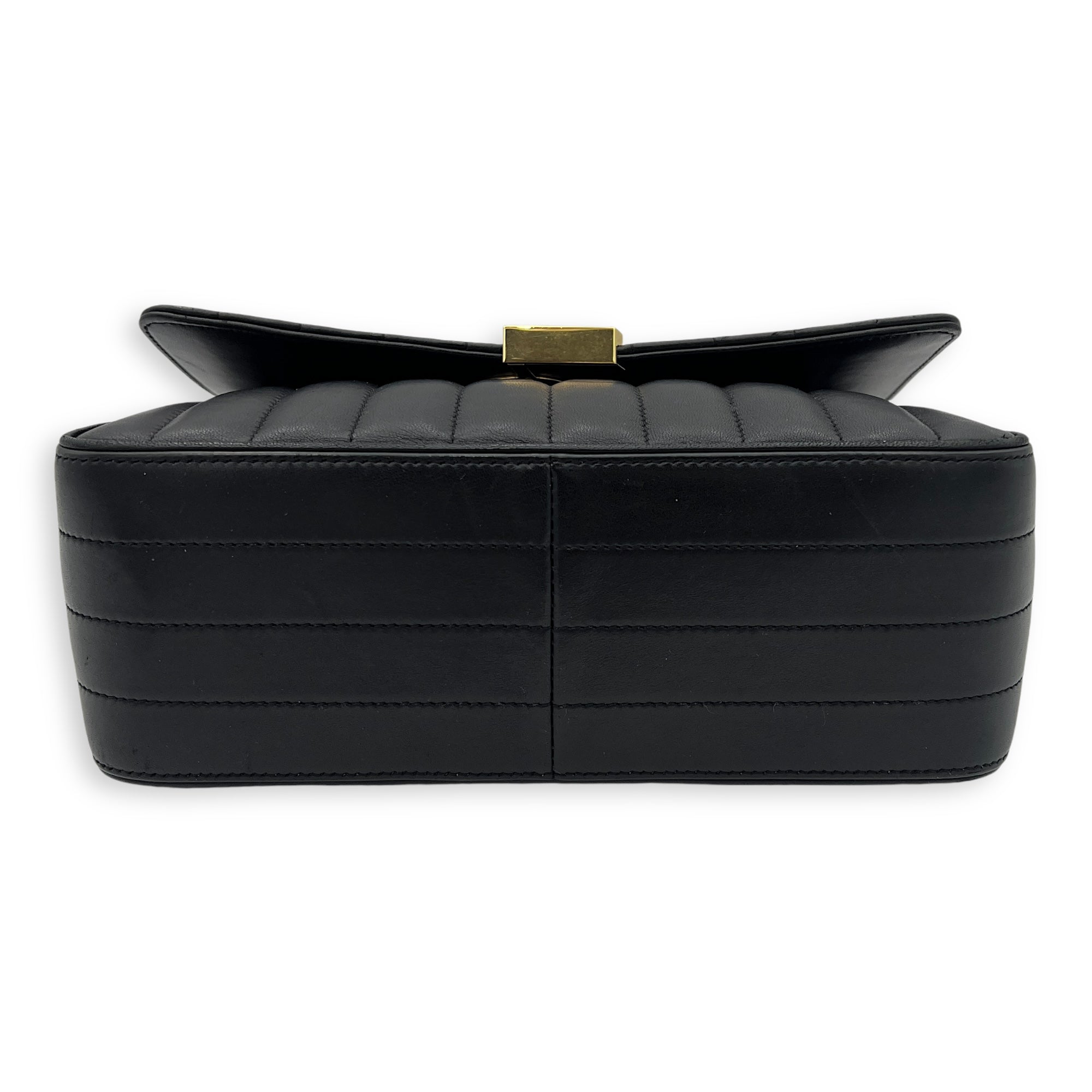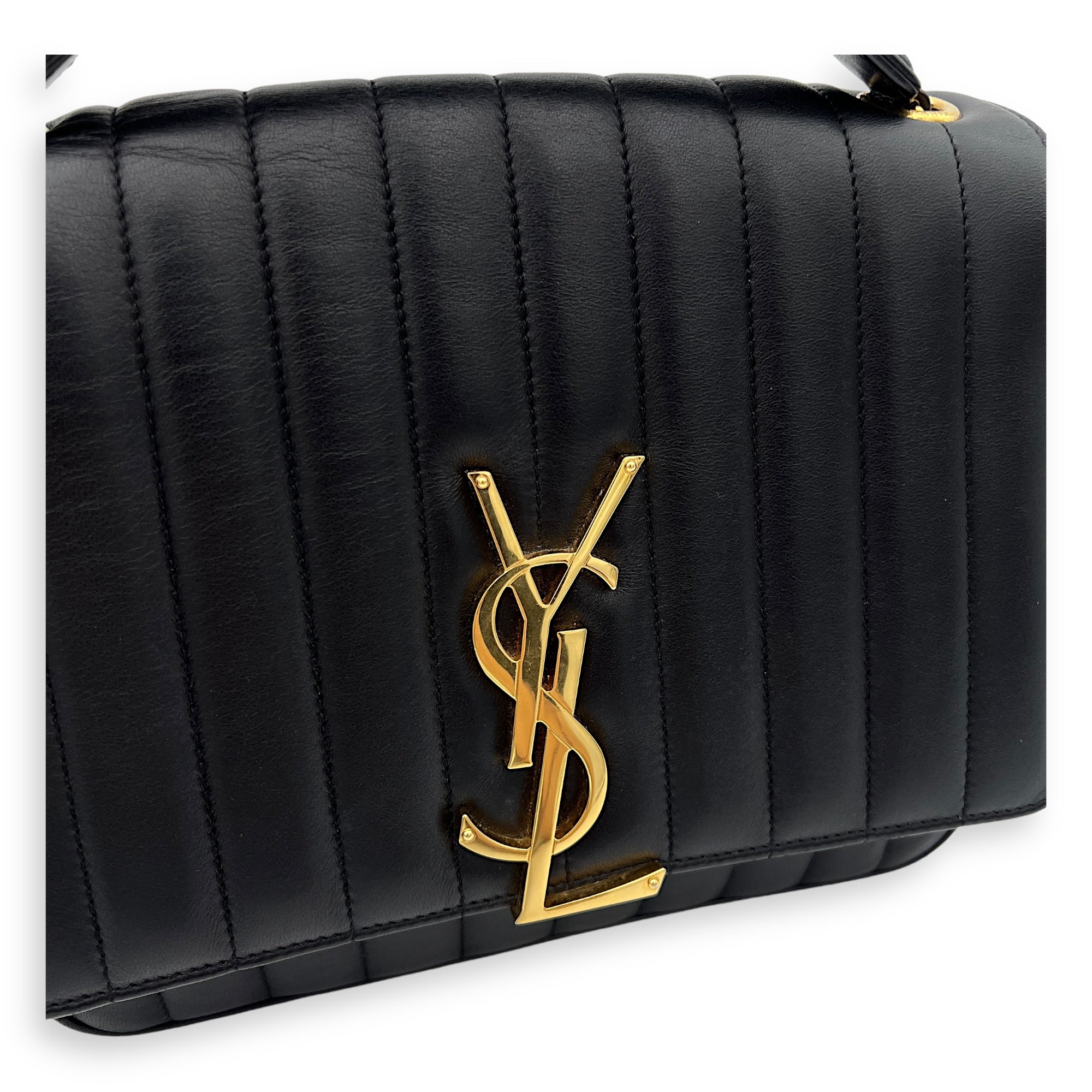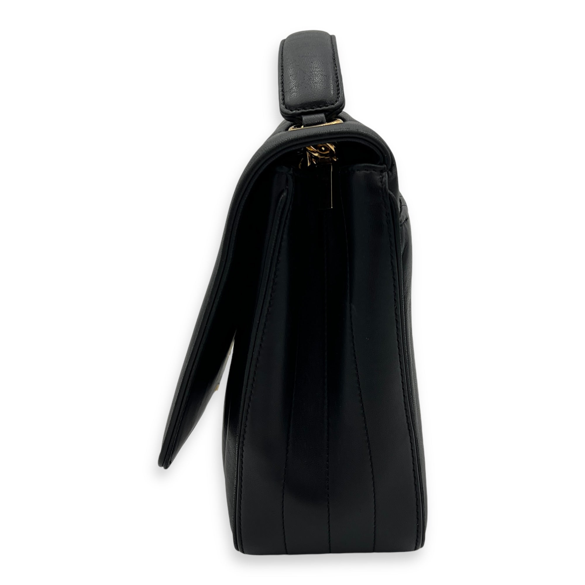 Bags Saint Laurent Vicky Shoulder Bag Black in Calfskin, Gold hardware Good Condition Black Shoulder Bag Women Lady Girl