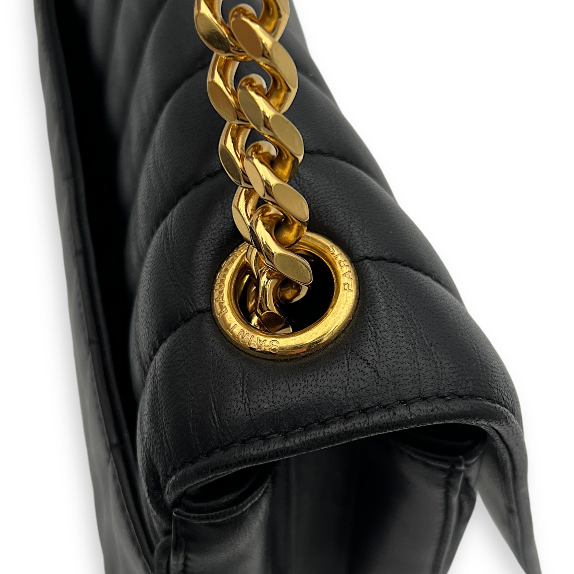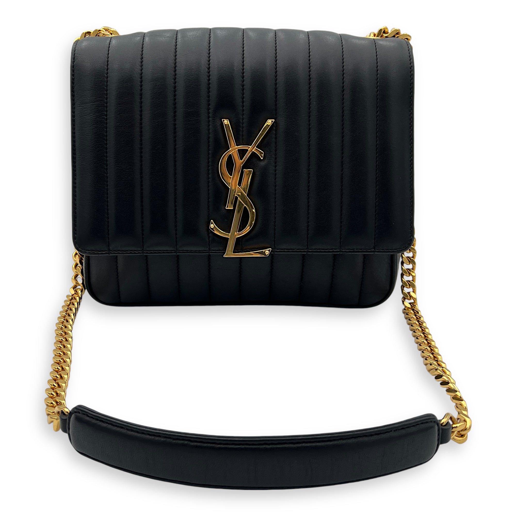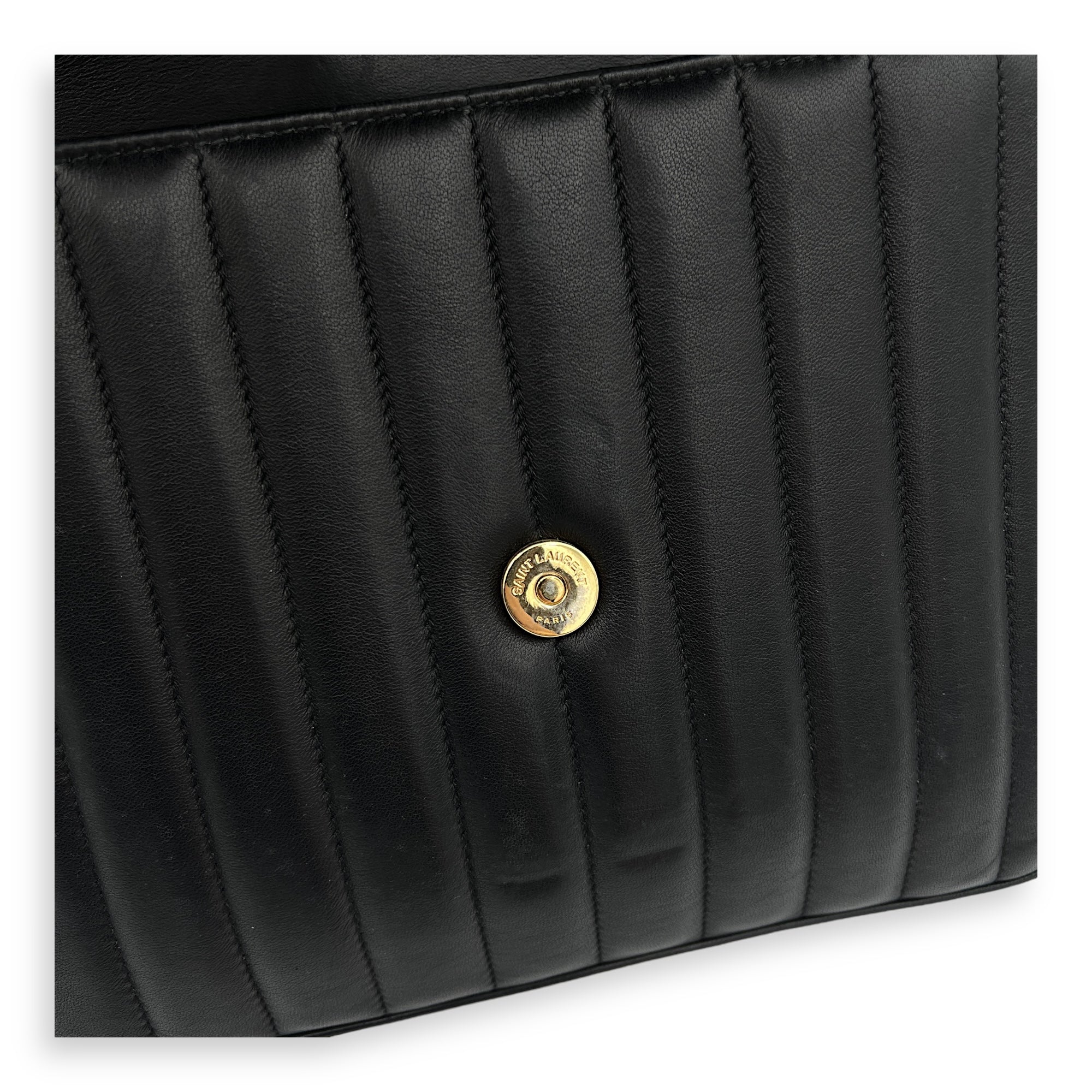 Bags Saint Laurent Vicky Shoulder Bag Black in Calfskin, Gold hardware Good Condition Black Shoulder Bag Women Lady Girl