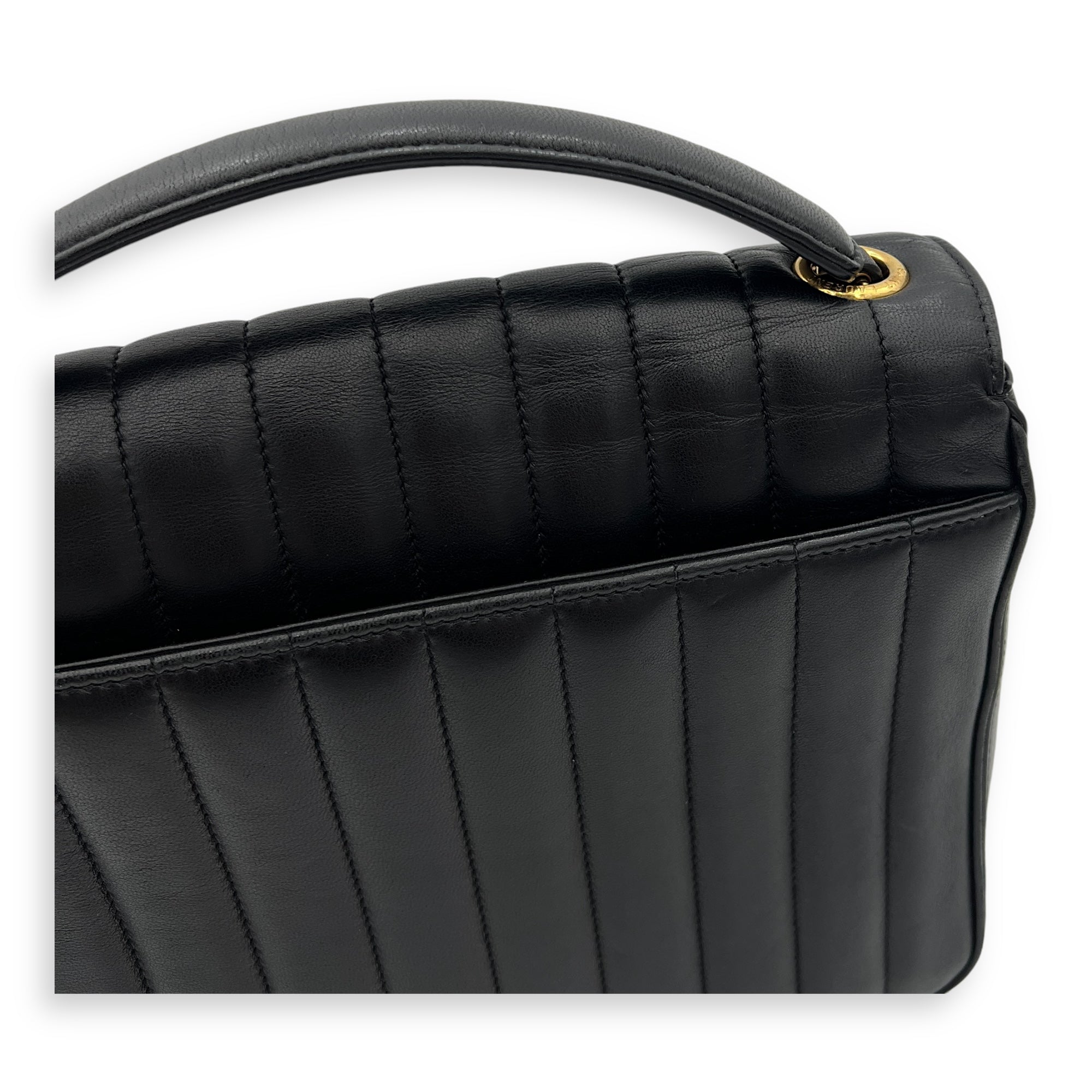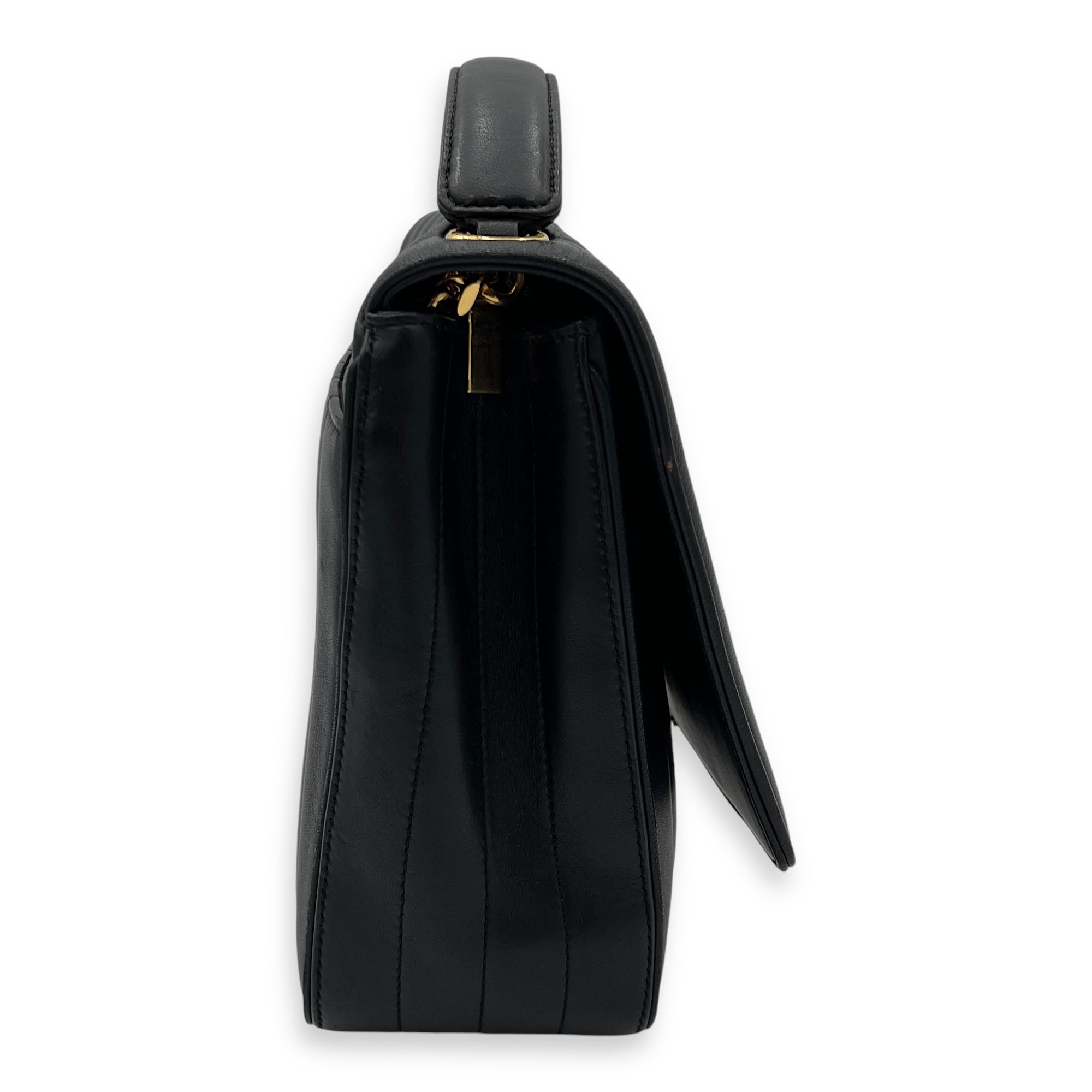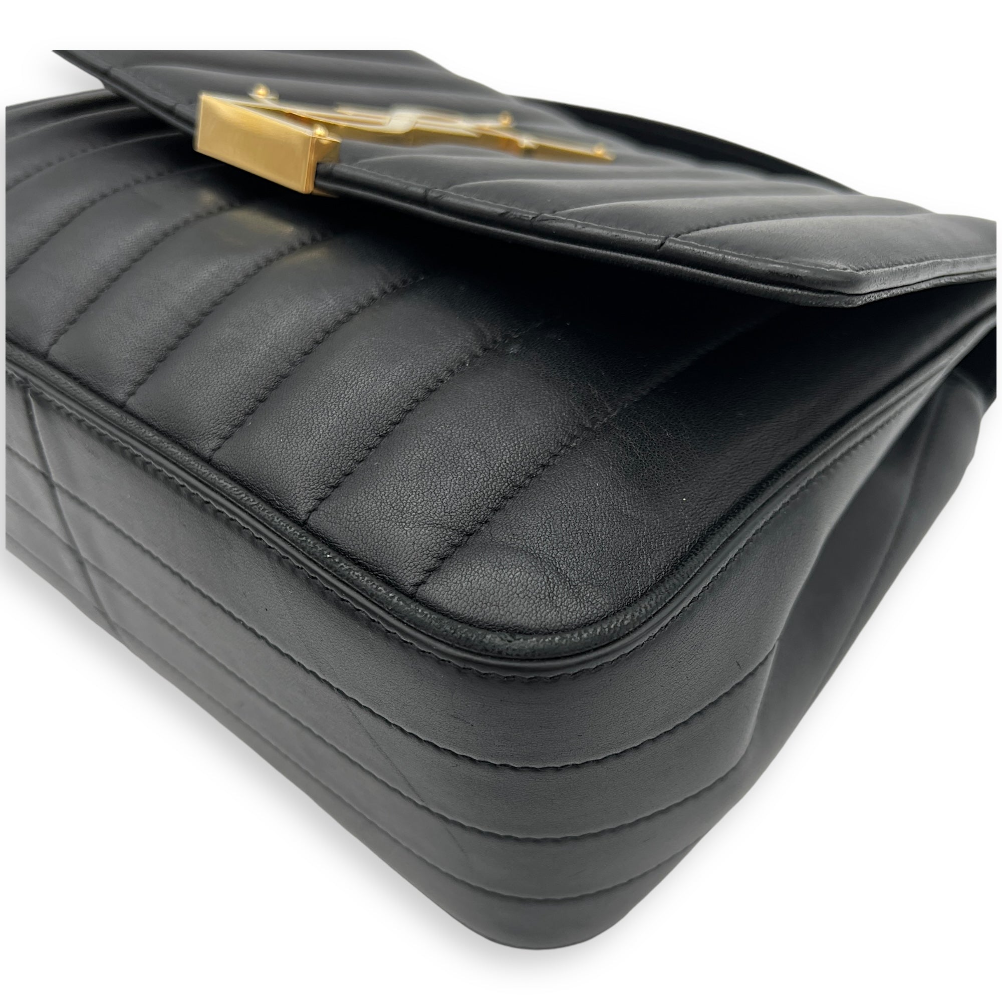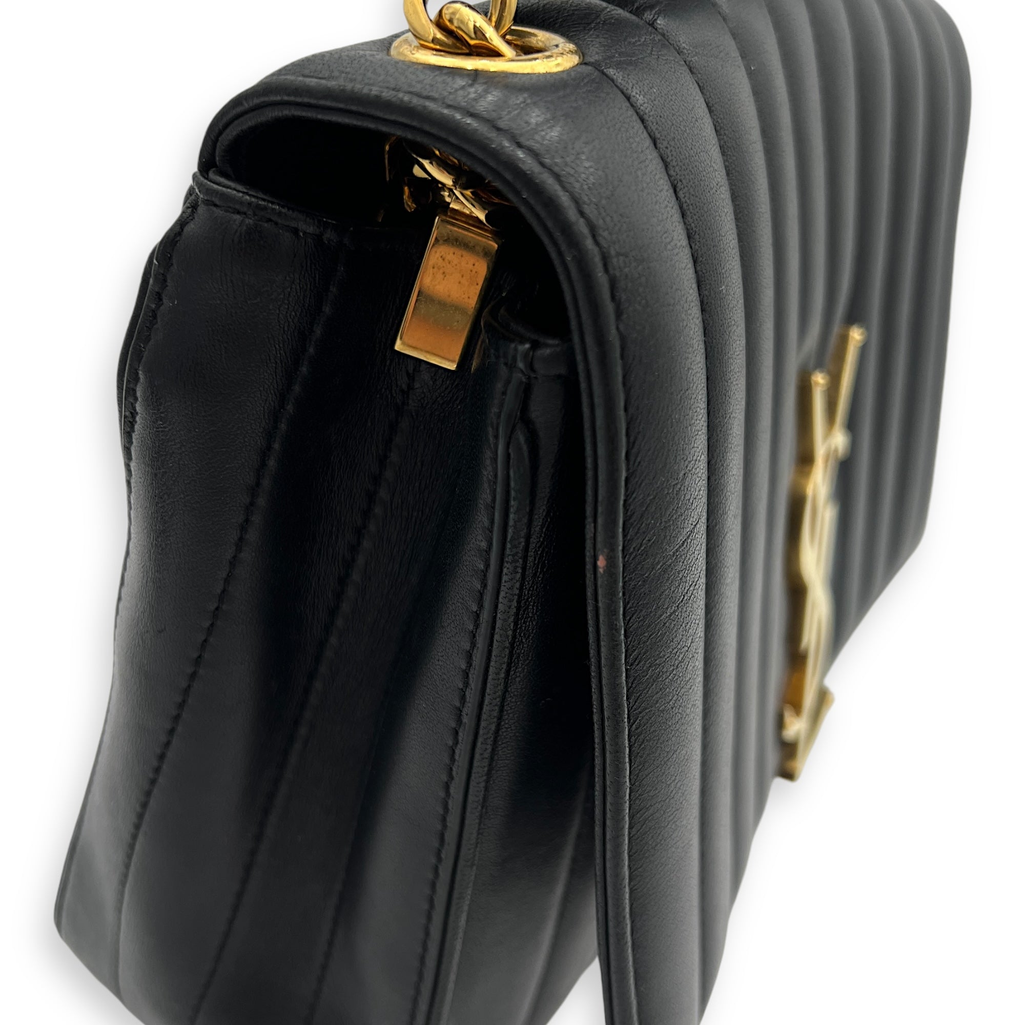 Bags Saint Laurent Vicky Shoulder Bag Black in Calfskin, Gold hardware Good Condition Black Shoulder Bag Women Lady Girl