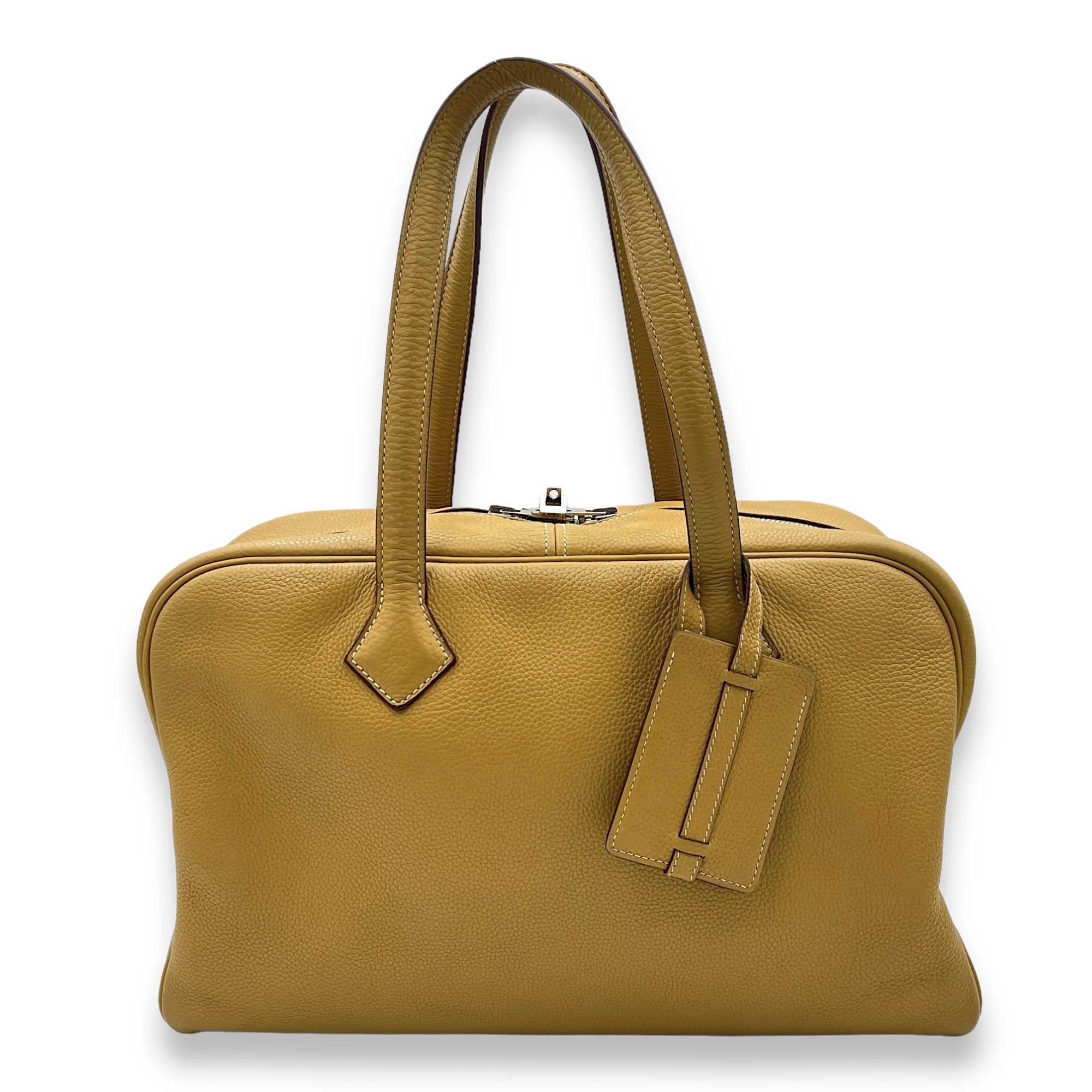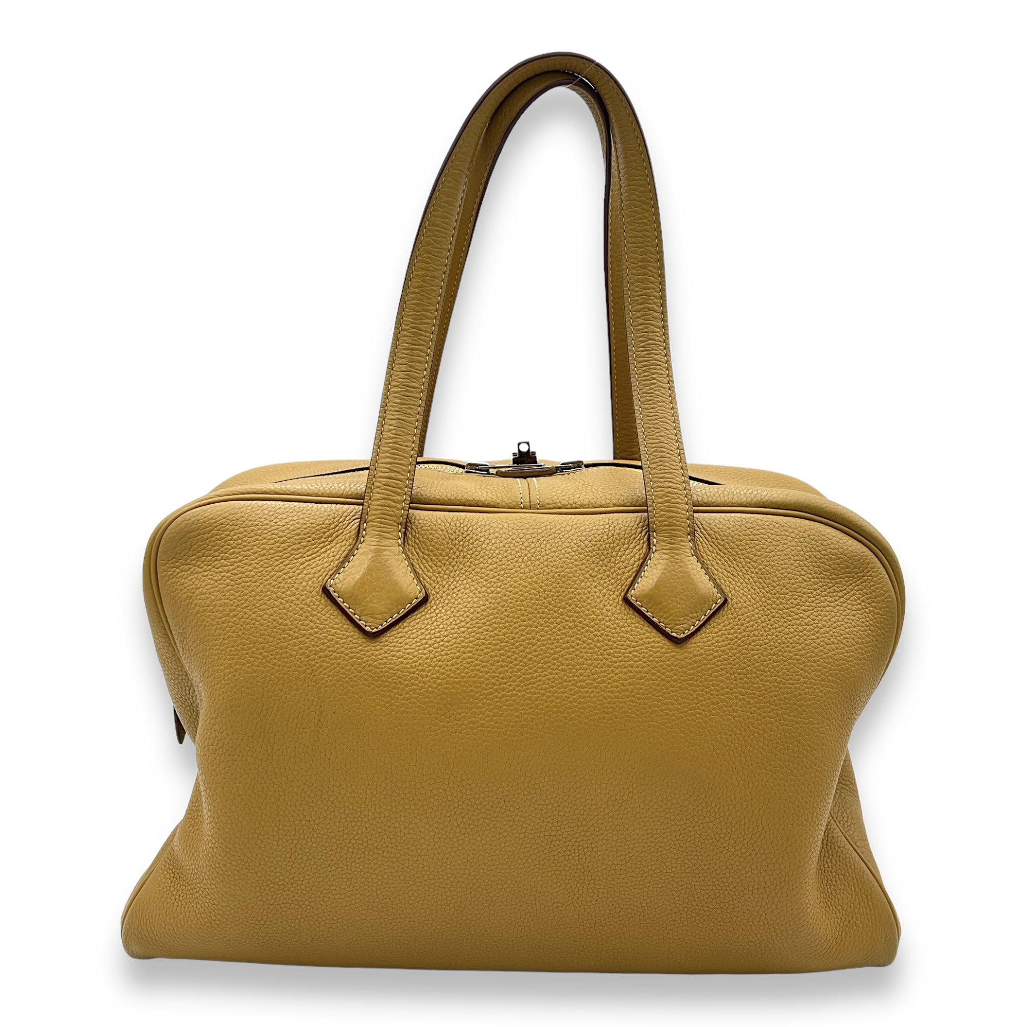 Herm?s Victoria II 35 Curry in Clemence, Palladium hardware Bags Top Handle Bag Yellow Good Condition MEN UNISEX