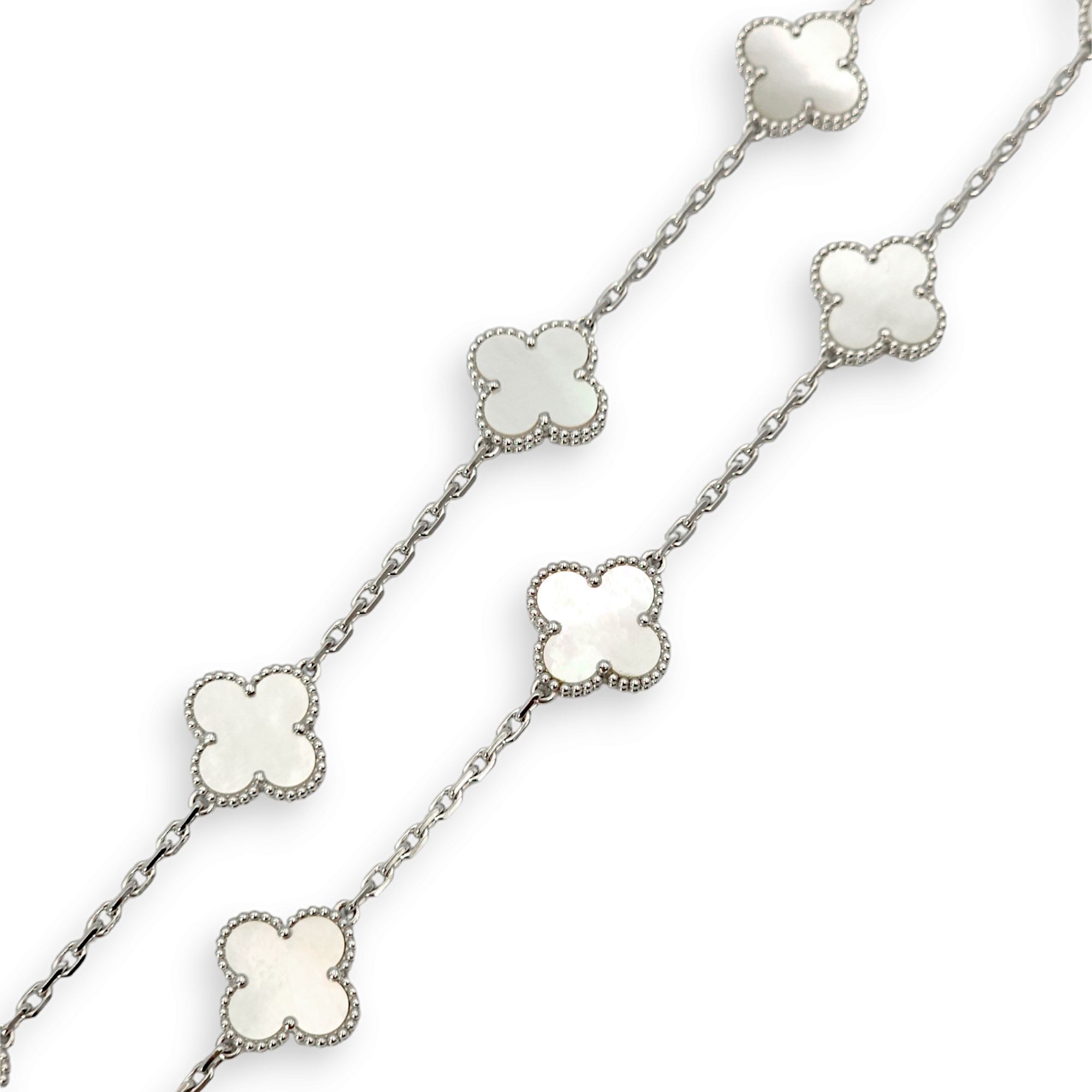 Vintage Alhambra 20 Motifs Mother of Pearl Necklace in White Gold