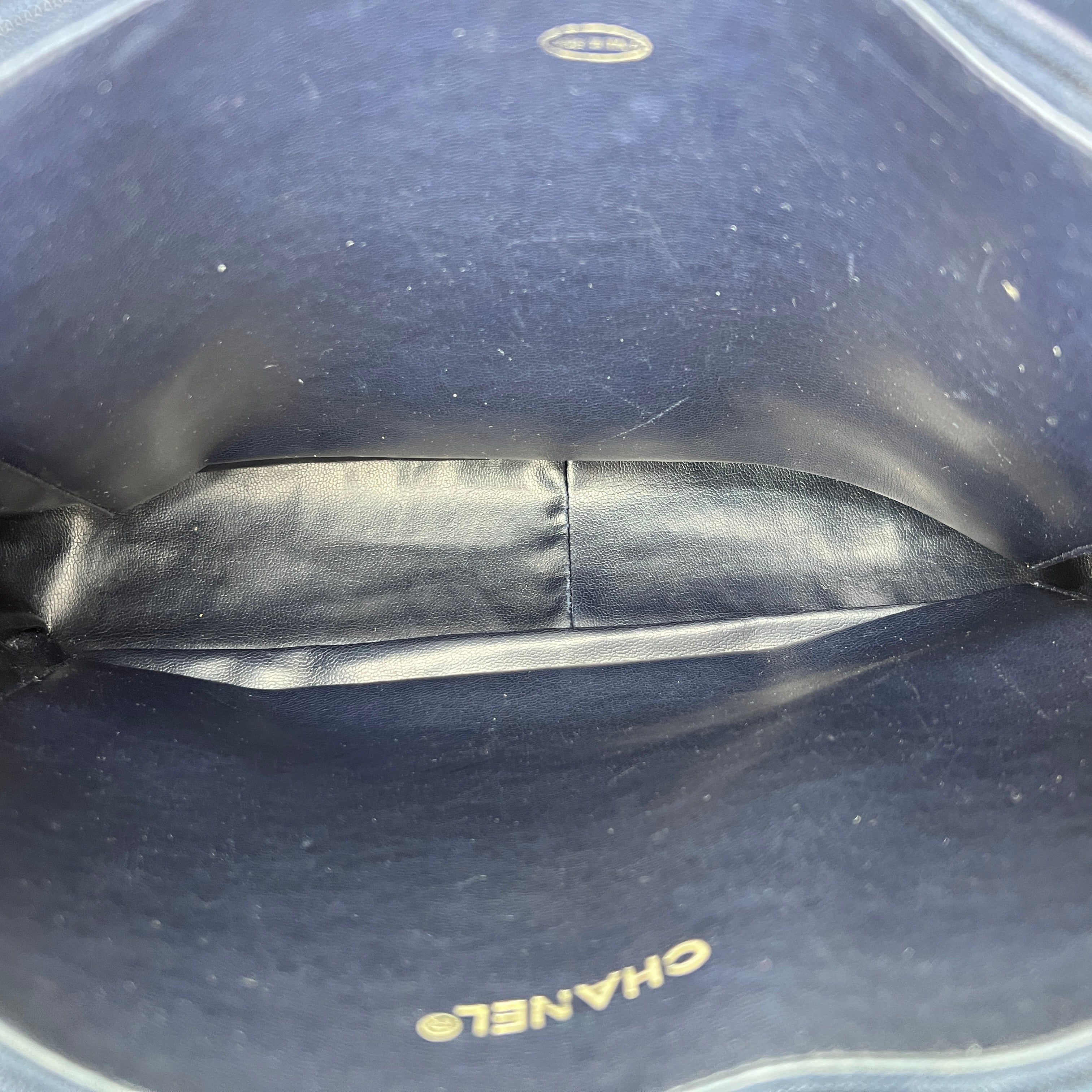 Chanel Vintage Quilted Chain Navy Tote Bag in Lambskin, Gold hardware Bags Tote Bag Blue Good Condition MEN UNISEX
