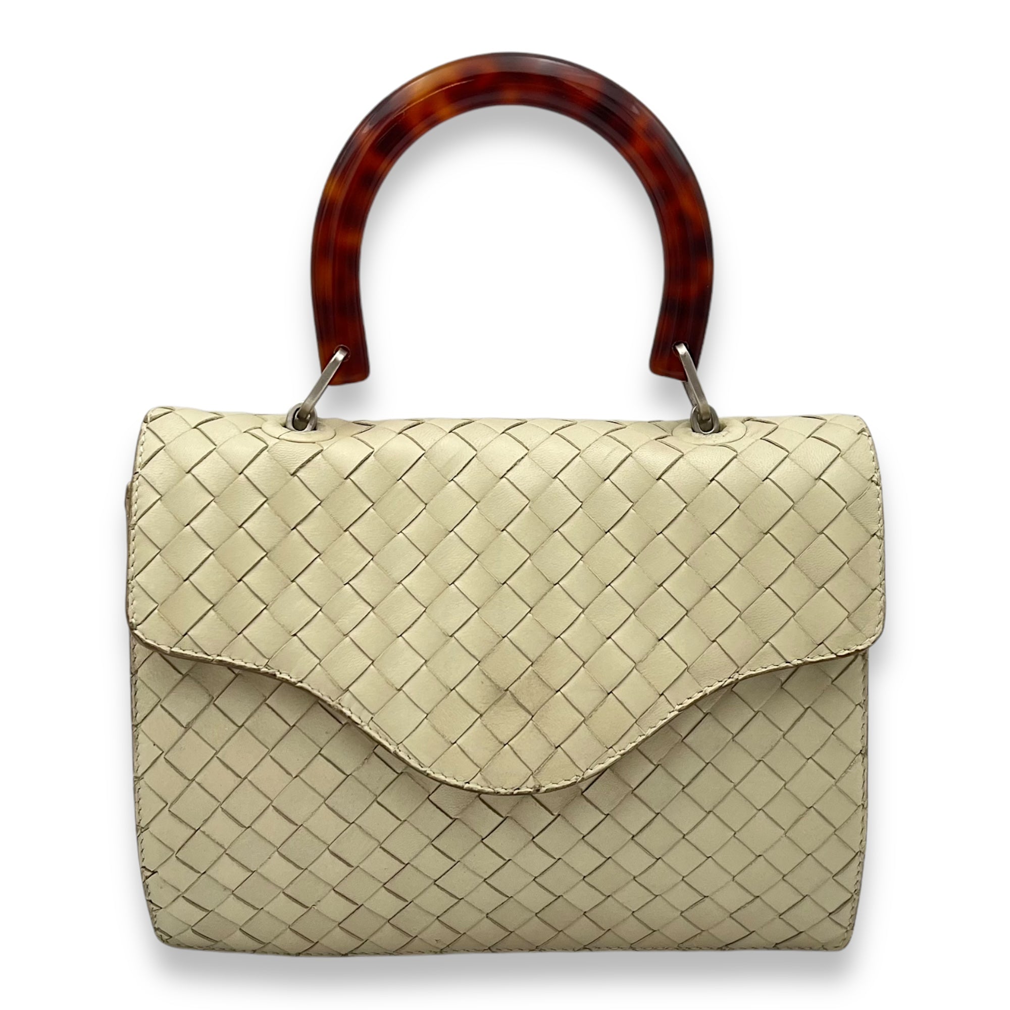 Vintage Beige Top Handle Bag in Intreciatto, Silver hardware