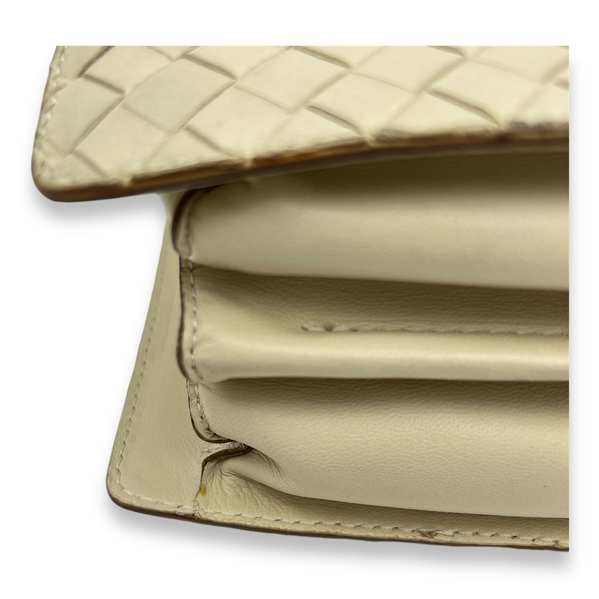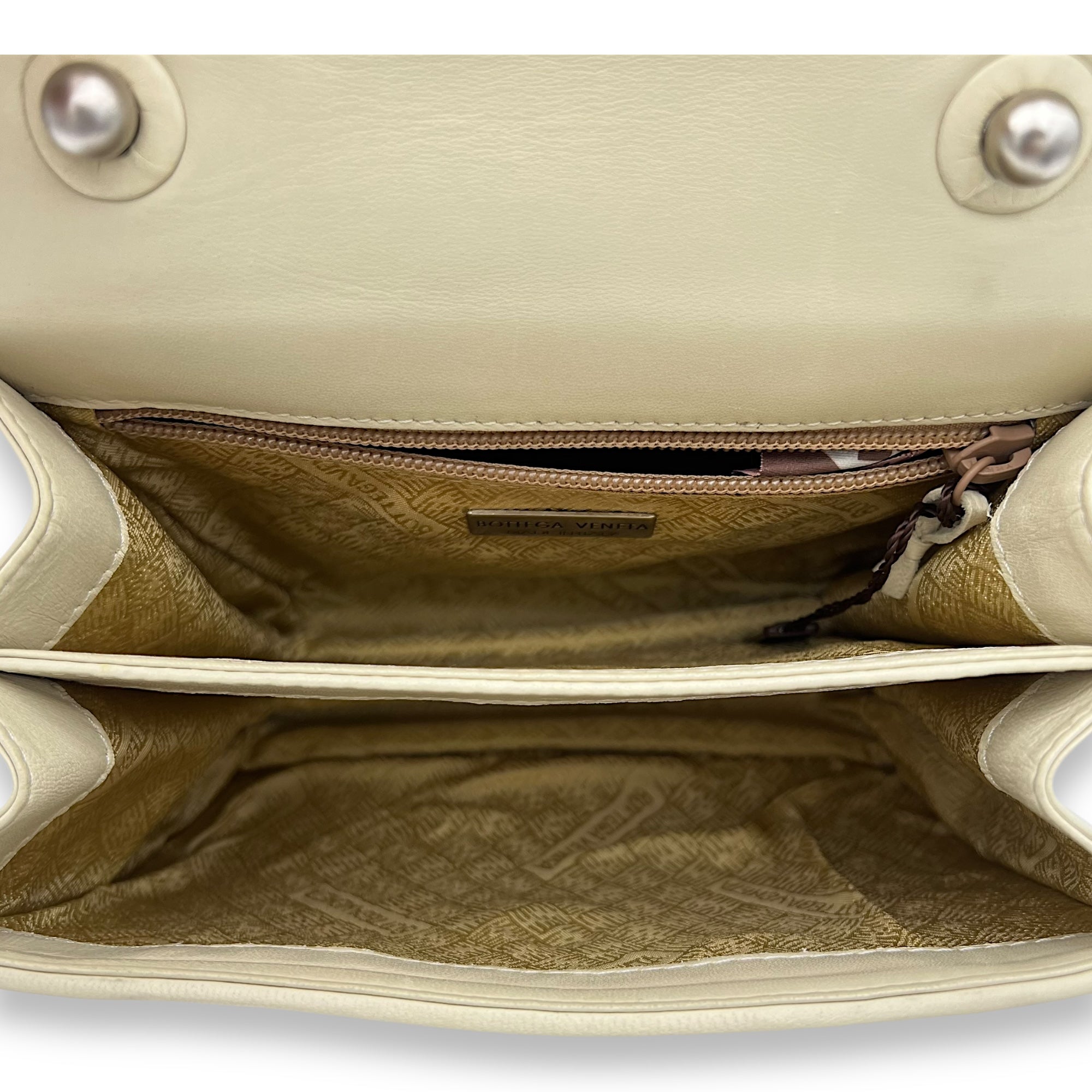 Bags Bottega Veneta Vintage Beige Top Handle Bag in Intreciatto, Silver hardware Good Condition Beige Top Handle Bag Women Lady Girl