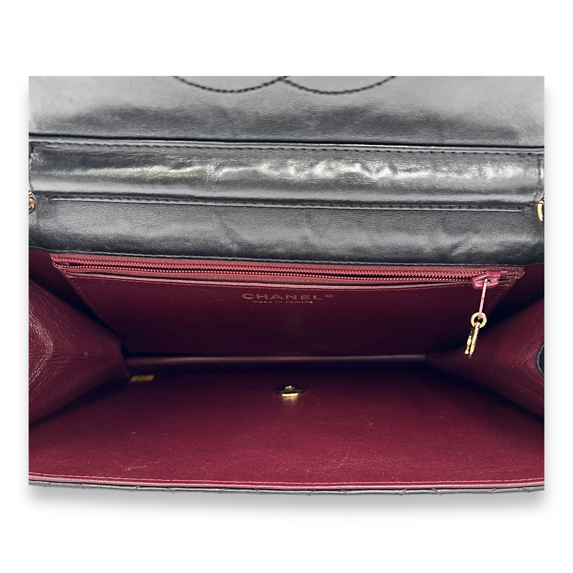 Bags Chanel Vintage Top Handle Bag Medium Black in Lambskin, Gold hardware Fair Condition Black Top Handle Bag Women Lady Girl