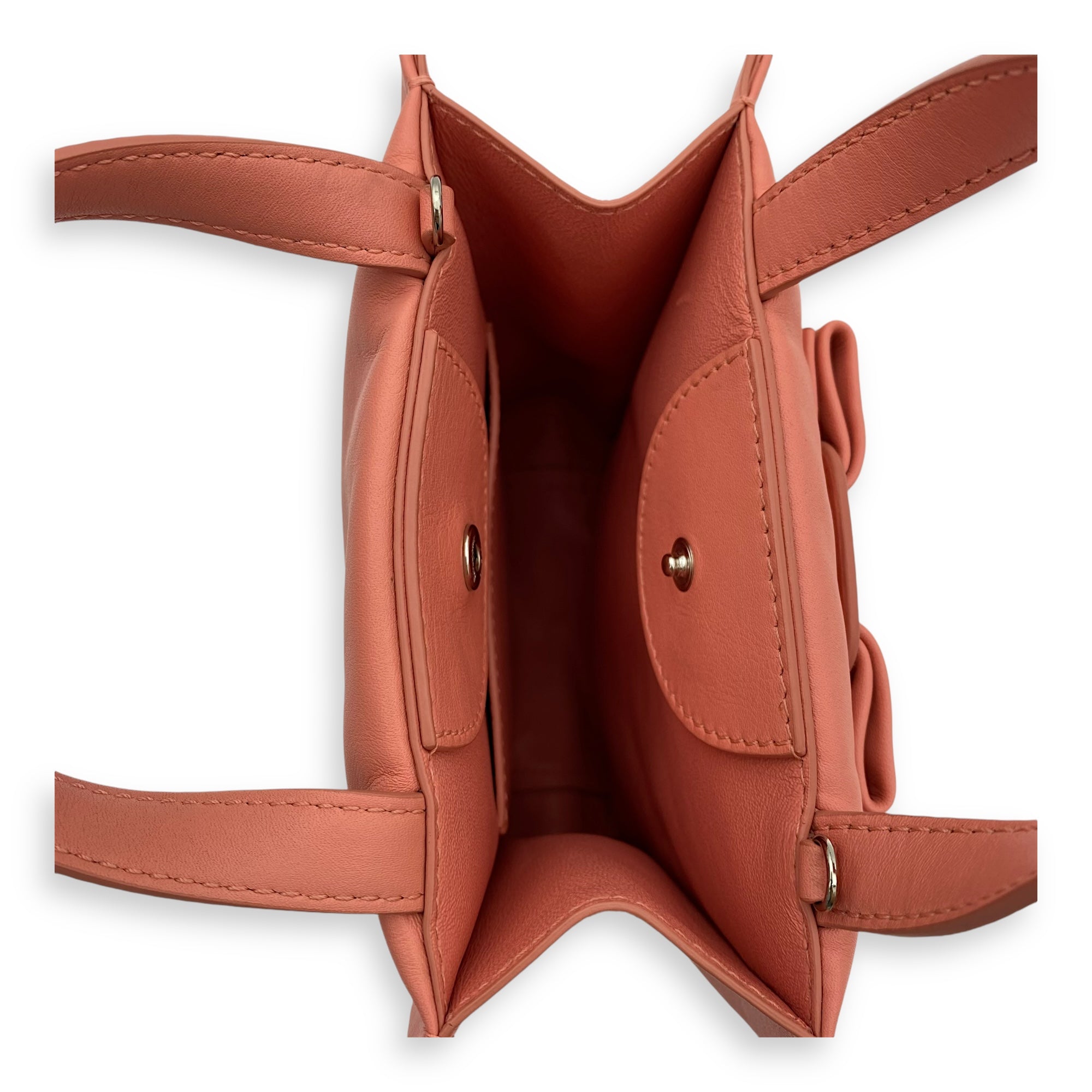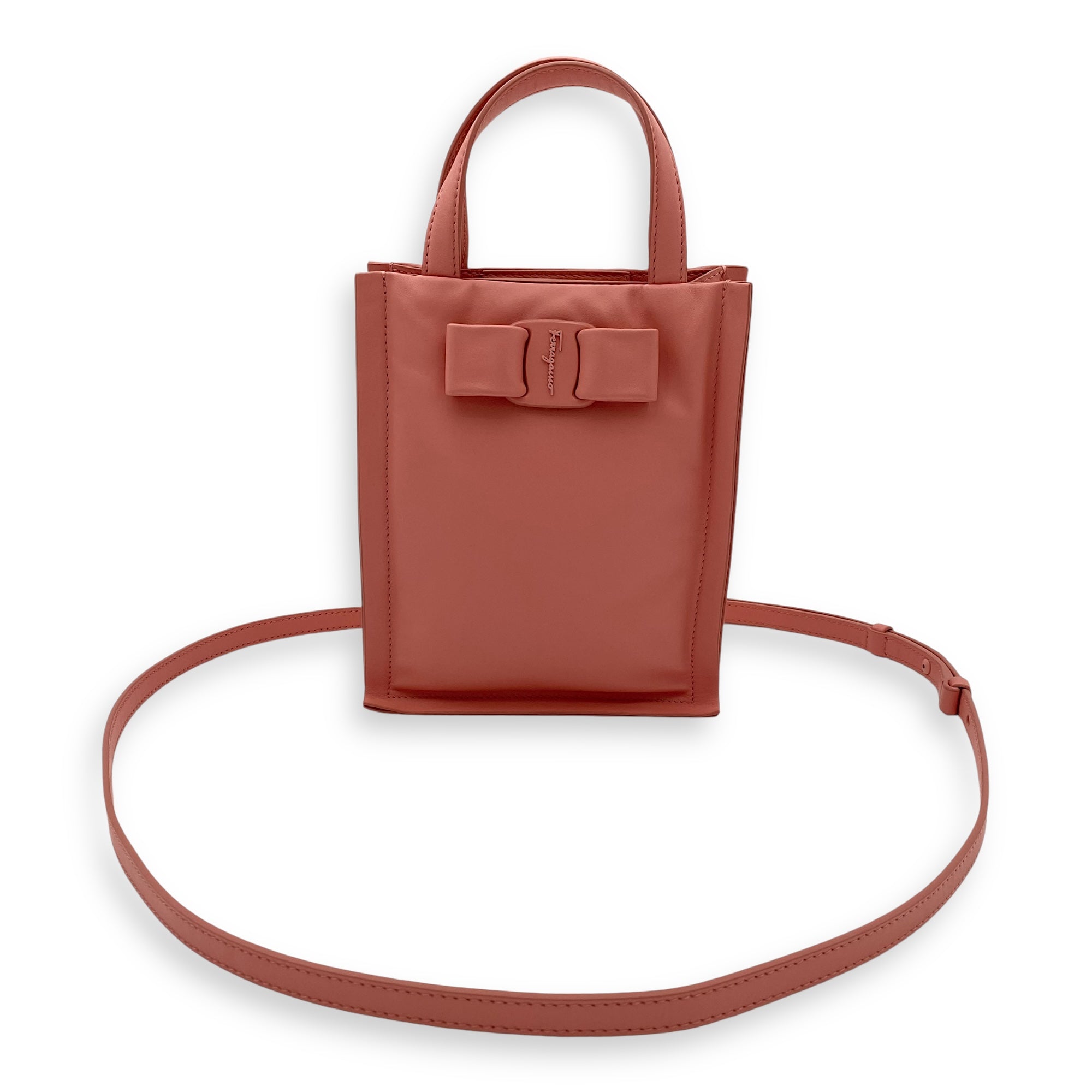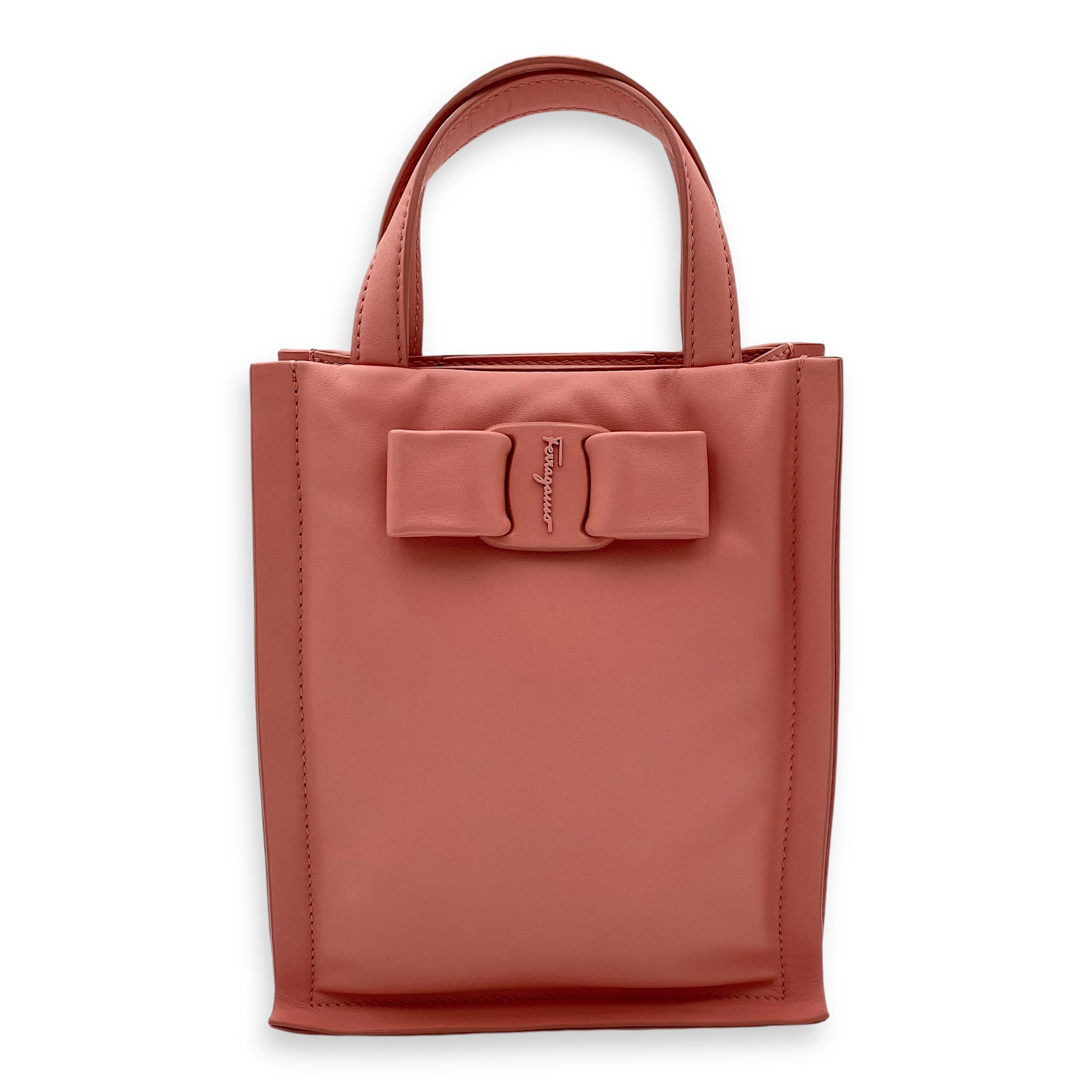 Bags Salvatore Ferragamo Viva Bow Top Handle Bag Mini Coral in Calfskin, Lacquered Metal hardware Like New Coral Pink Top Handle Bag Women Lady Girl